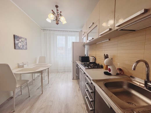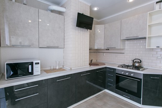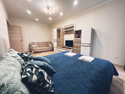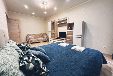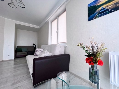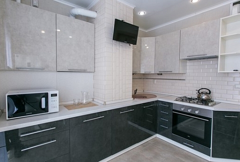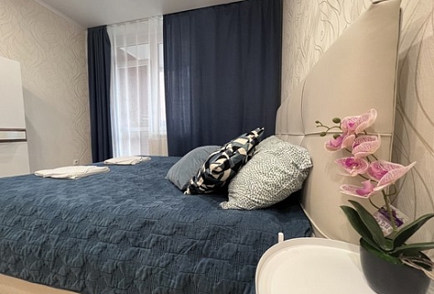 Апартаменты расположились в 12-этажном жилом доме с лифтом. В комнатах выполнен современный ремонт. К услугам гостей телевизор, Wi-Fi, мебель для отдыха и хранения личных вещей. С лоджии открывается красивый вид на город. Санузел с душевой кабиной, полотенцами и туалетными принадлежностями. Для самостоятельного приготовления еды есть кухонная зона, оборудованная холодильником, плитой, микроволновой печью, электрическим чайником и необходимым набором посуды. Для личного транспорта отдыхающих предусмотрена парковка возле дома.