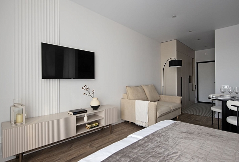 Уютная, удобная кровать с качественным постельным бельём становится идеальным местом для отдыха и восстановления сил после насыщенного дня. Компактная мини-кухня оборудована всем необходимым для того, чтобы легко приготовить утренний кофе или лёгкий ужин. Пространство организовано так, чтобы каждая деталь работала на ощущение свободы и покоя, несмотря на компактный формат.Для заселения предусмотрена удобная бесконтактная процедура: после связи с администрацией гостю направляется ссылка для верификации в специальном сервисе, что позволяет избежать необходимости внесения денежного депозита. Команда студии всегда готова помочь и ответить на вопросы в течение дня, с раннего утра и до позднего вечера. «Дюна» — это больше, чем просто место для ночлега; это тихая, стильная гавань в эпицентре городской жизни, где можно почувствовать себя как дома, имея при этом под рукой все возможности для исследования города и отдыха у воды.
