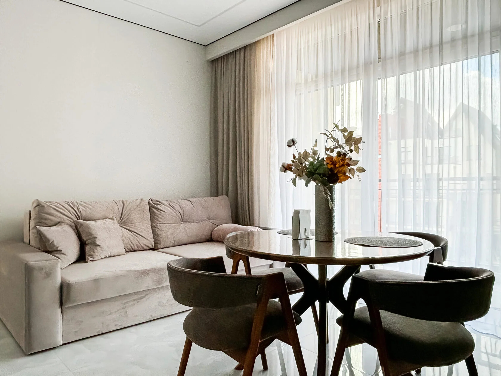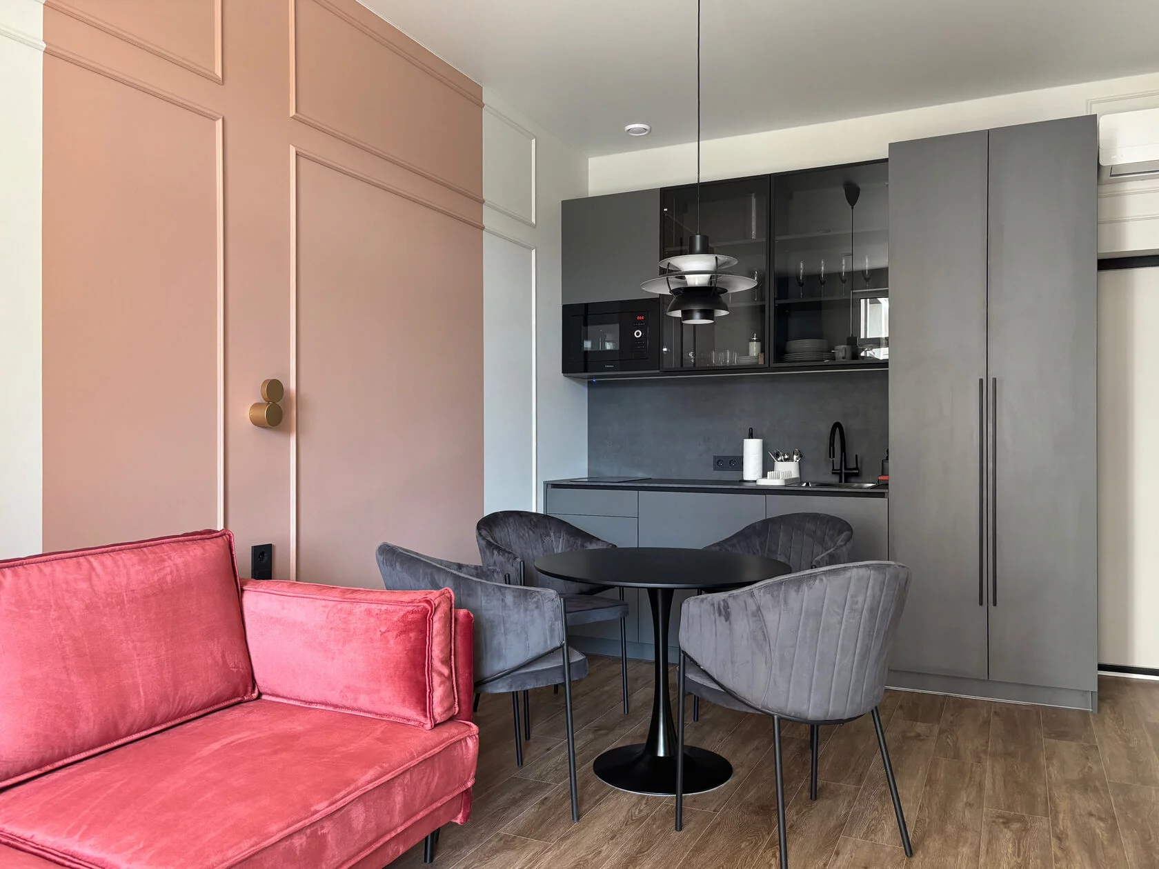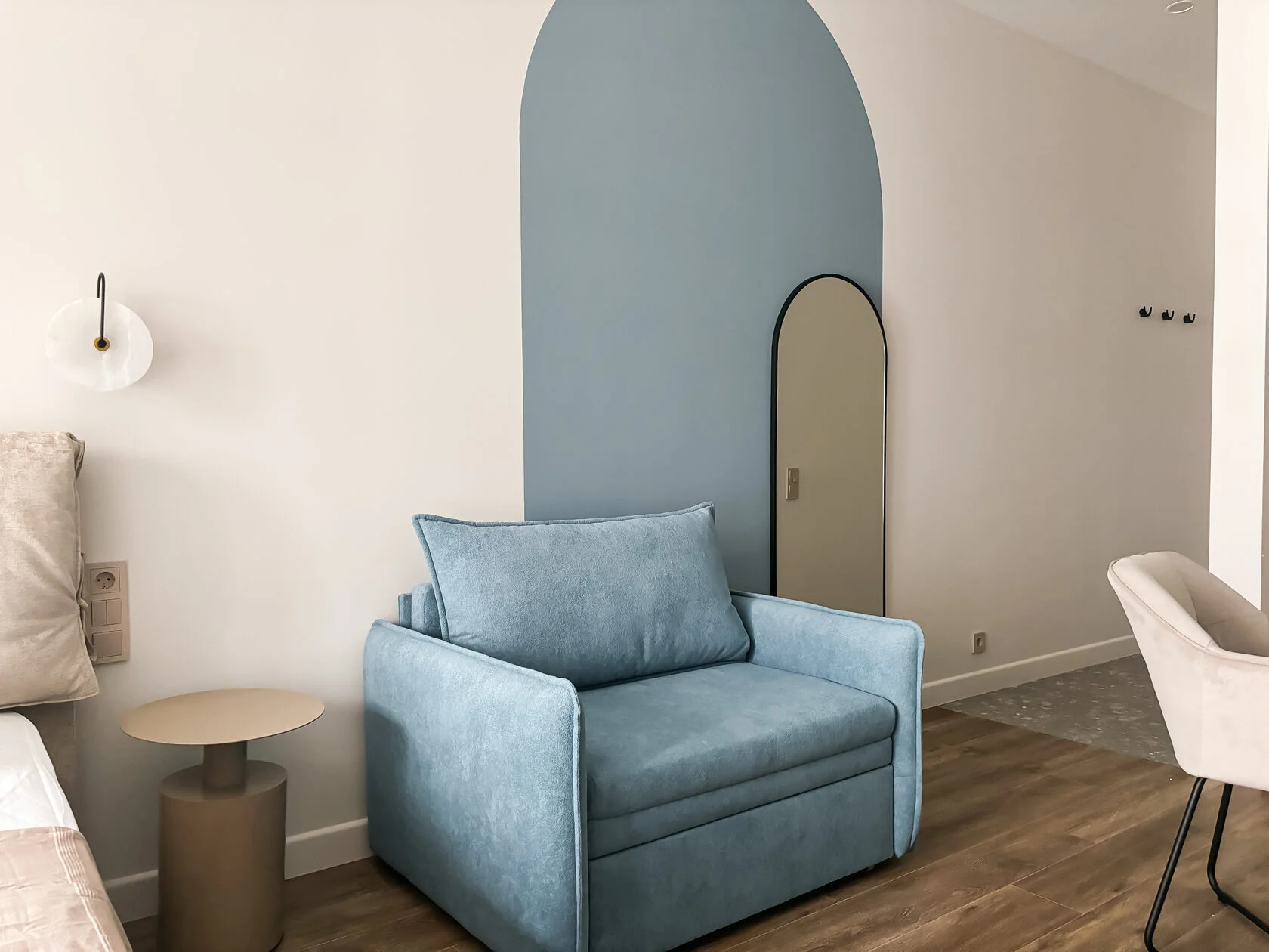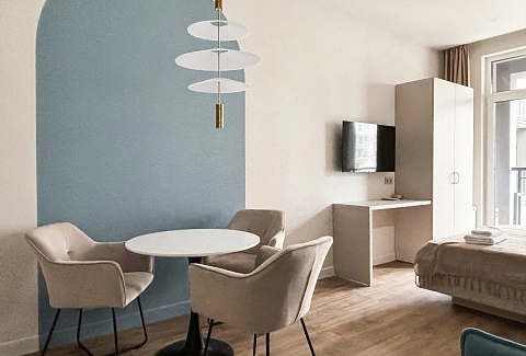 Апартаменты Pavlov Европа А площадью 38 кв.м, вместимость до 4-х гостей.Стильные апартаменты идеально подходят для туристов и деловых путешественников, предлагая всё необходимое для комфортного проживания. В спальне есть удобная двуспальная кровать, а в кухне-гостиной - раскладной диван, обеспечивающий дополнительные спальные места и удобный отдых.Апартаменты оборудованы современной душевой кабиной, стиральной машиной, микроволновкой, плитой и фильтром для воды. Просторный балкон предоставляет возможность насладиться свежим воздухом и красивыми видами.