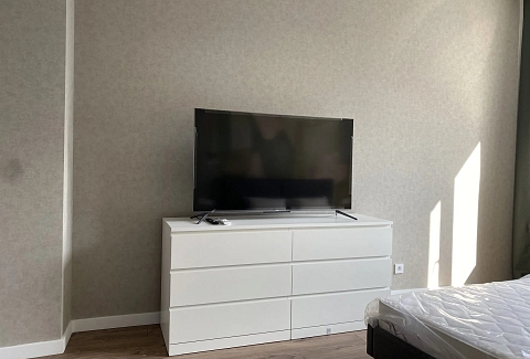 В номере: диван раскладной, зеркало, комод, кровать двуспальная, прикроватные тумбочки, стол, стулья, шкаф, гладильная доска, кондиционер, микроволновая печь, набор посуды, плита электрическая, посудомоечная машина, телевизор ЖК, холодильник, чайный набор посуды, электрочайник