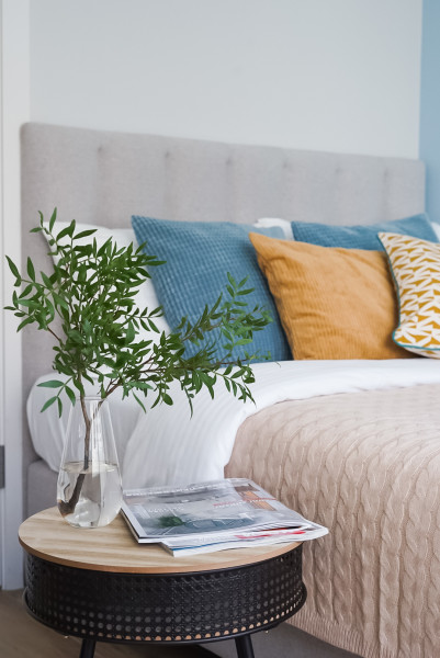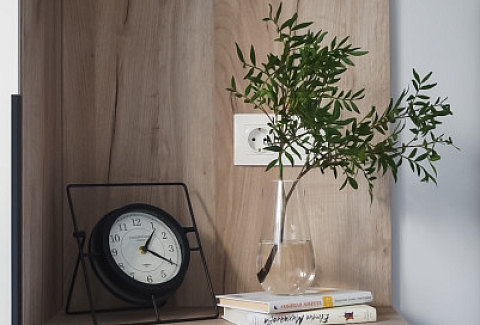 В номере: вешалка, диван, зеркало, кресло, кровать двуспальная, кухонная мебель, прикроватные столики, стол, стулья, шкаф, вентилятор, гладильная доска, кофемашина, микроволновая печь, набор посуды, плита электрическая, стиральная машина, телевизор ЖК, утюг, холодильник, электрочайник
