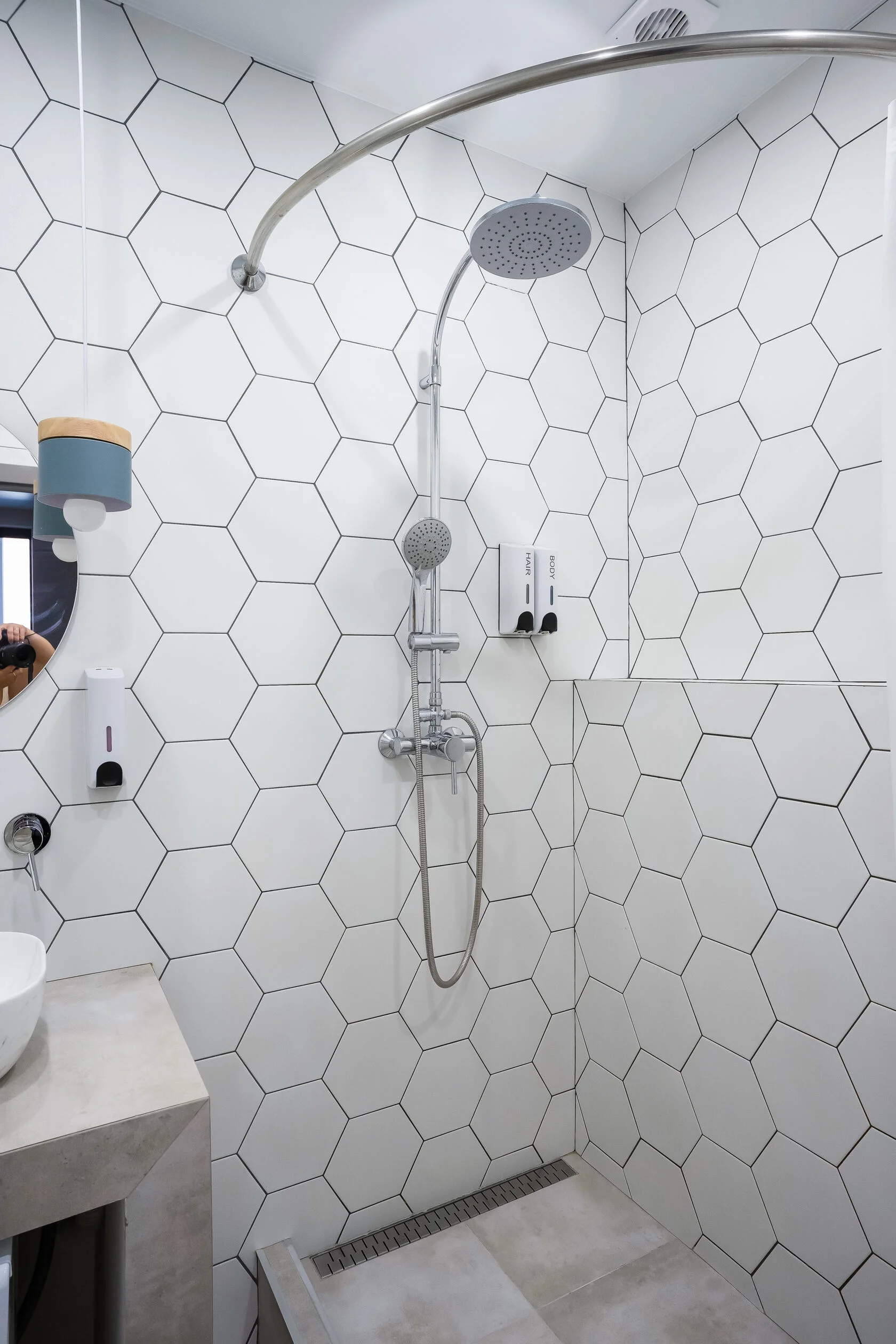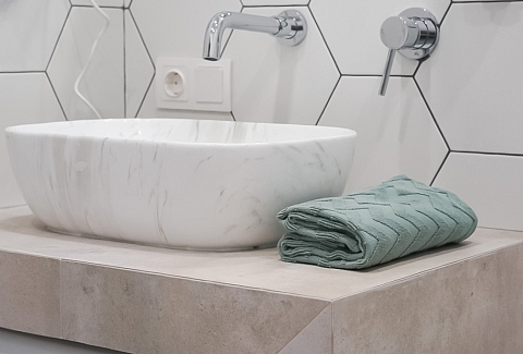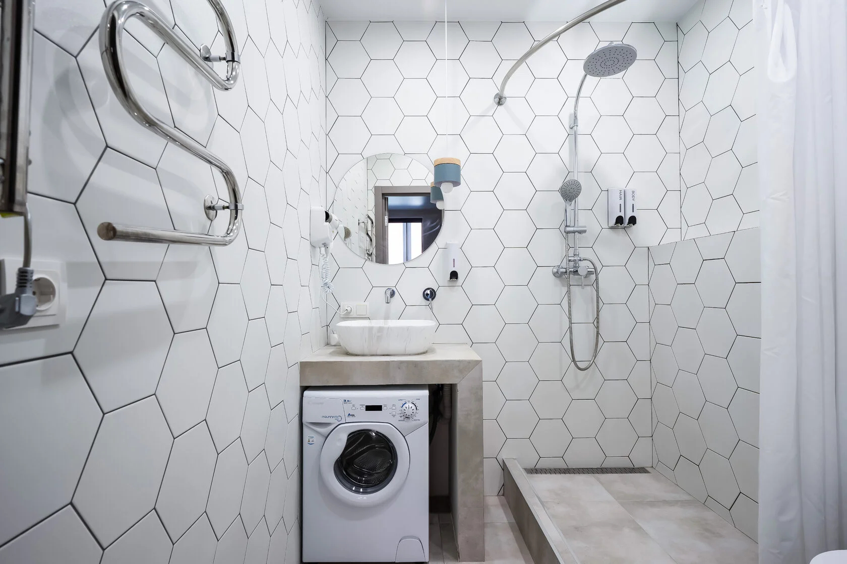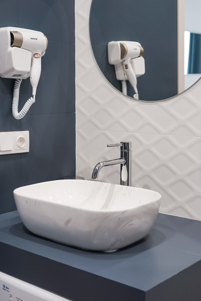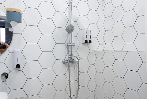 Санузел: с душем, тапочки, туалетные принадлежности, фен