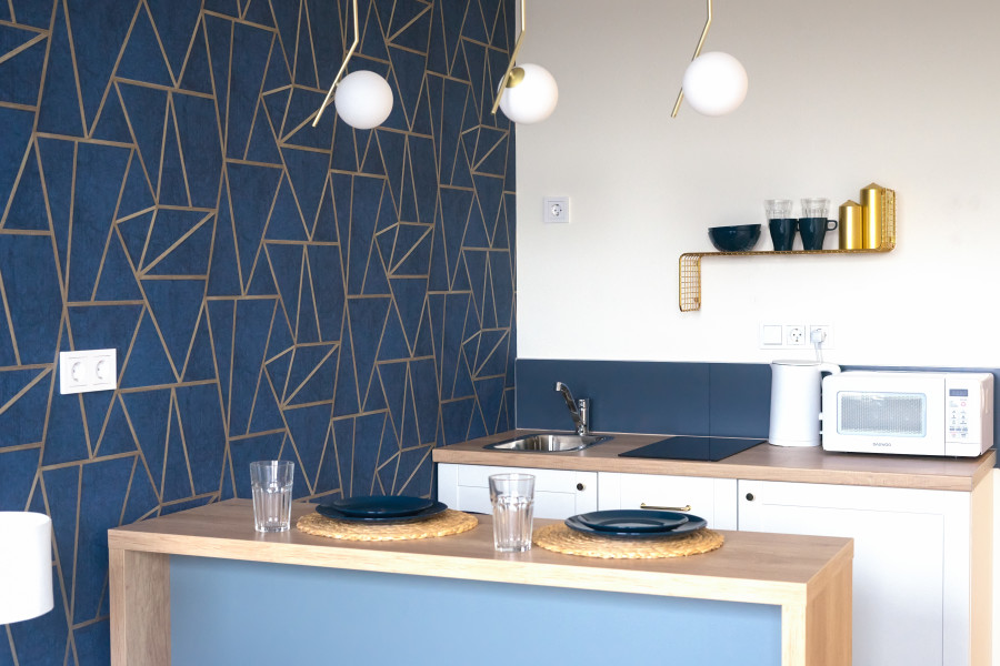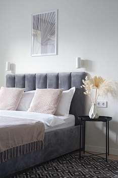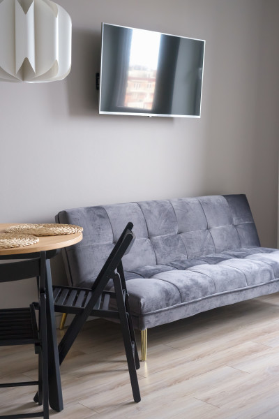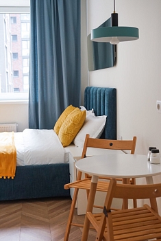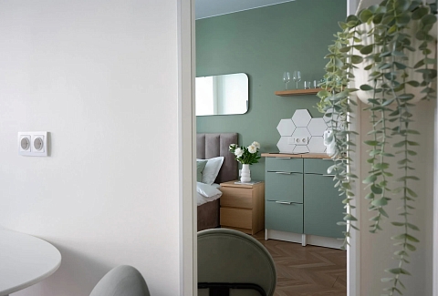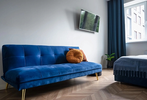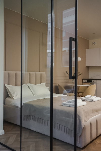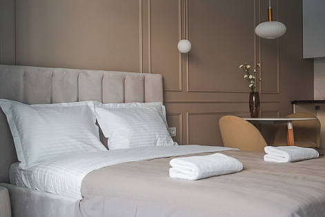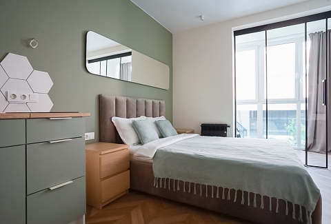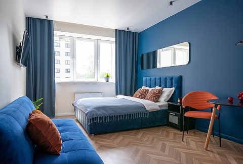 Расстояние до аэропорта составляет 21 километр. Добраться до железнодорожного вокзала можно за 3 минуты пешком.Апартаменты расположились в 9-этажном здании с лифтом. Интерьер комнат выполнен в современном стиле. Установлены удобные кровати и раскладывающиеся диваны. Также к услугам гостей телевизор с жидкокристаллическим экраном, утюг и гладильная доска, вентилятор, кофемашина, стиральная машина. Санузел оснащен современной сантехникой, гостям предоставляются тапочки, мягкие полотенца и халаты, туалетные принадлежности. Есть фен, чтобы высушить волосы.В апартаментах работает высокоскоростной интернет. На кухне предусмотрена небольшая обеденная зона. Для самостоятельного приготовления и хранения еды установлены: плита, электрический чайник, микроволновая печь, холодильник. Возле дома есть парковка, на которой можно оставить автомобиль. Для детей оборудована игровая площадка.