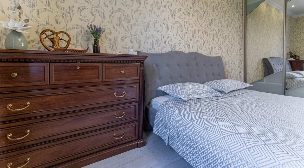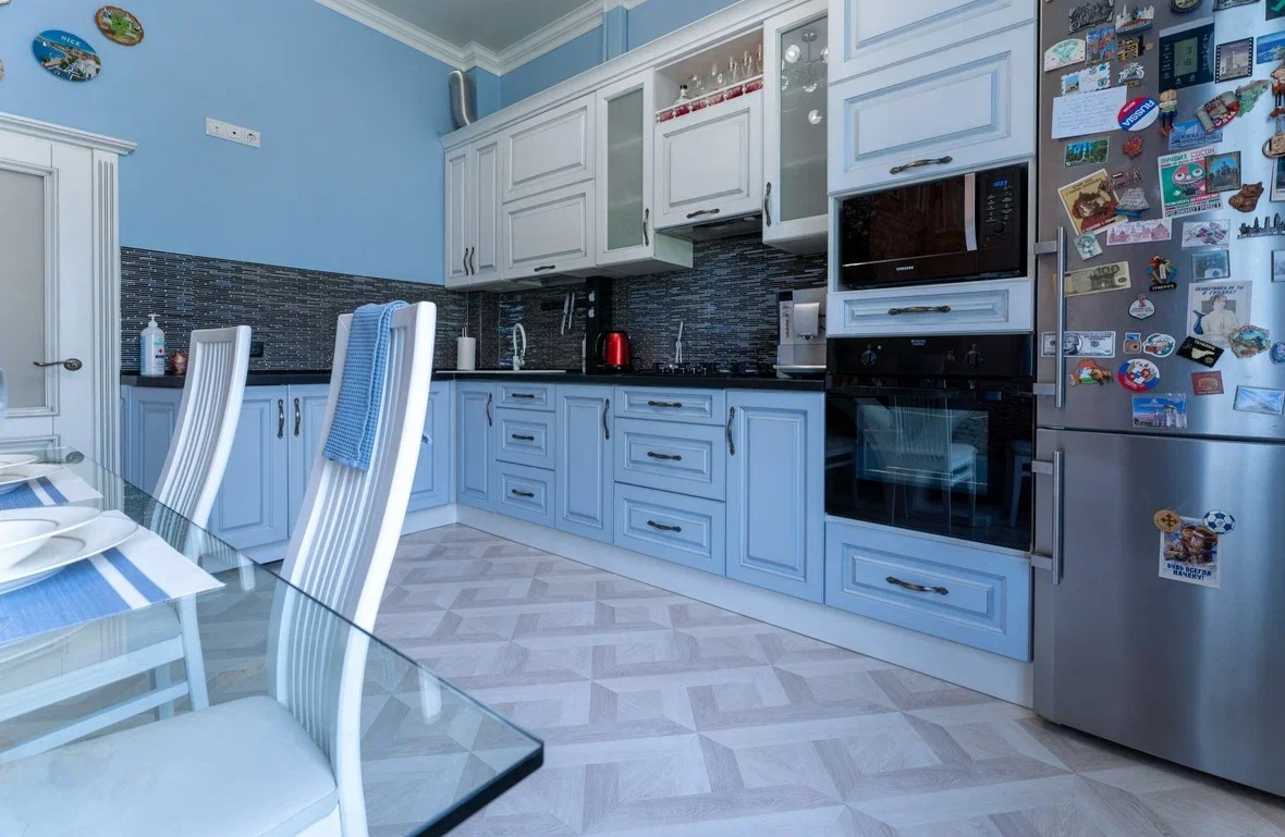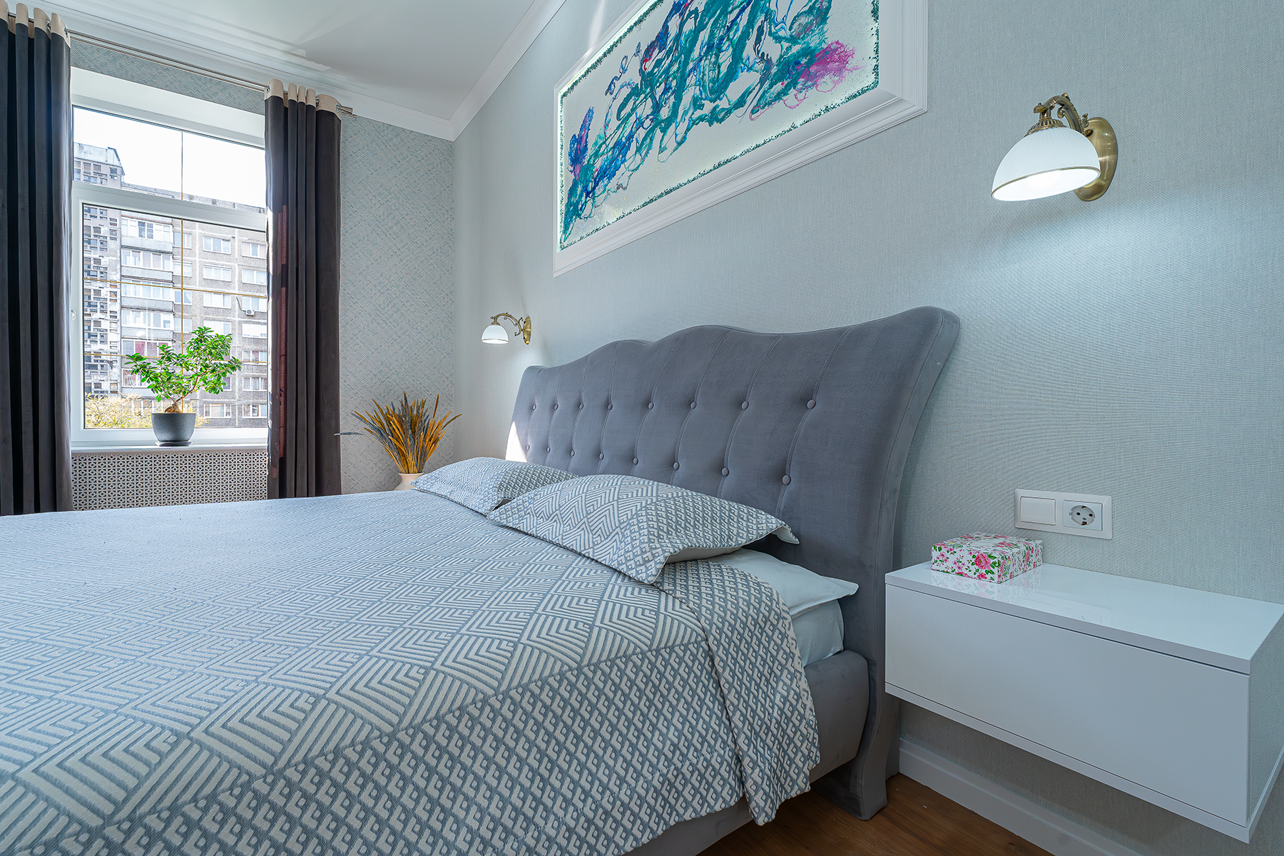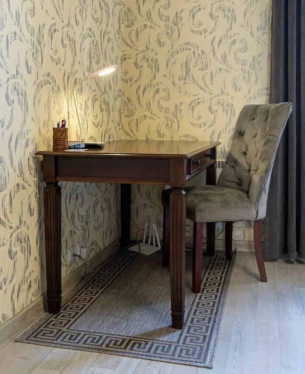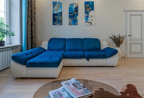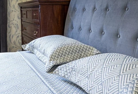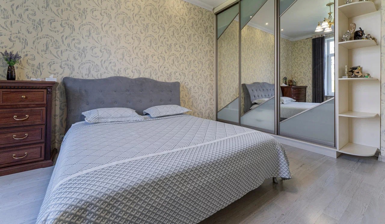 В номере: вешалка, зеркало, кровать двуспальная, прикроватные тумбочки, стол, стулья, шкаф, гладильная доска, кофемашина, микроволновая печь, музыкальный центр, набор посуды, плита электрическая, посудомоечная машина, стиральная машина, телевизор, утюг, холодильник, чайный набор посуды, электрочайник