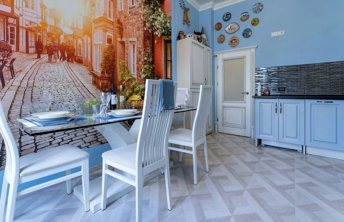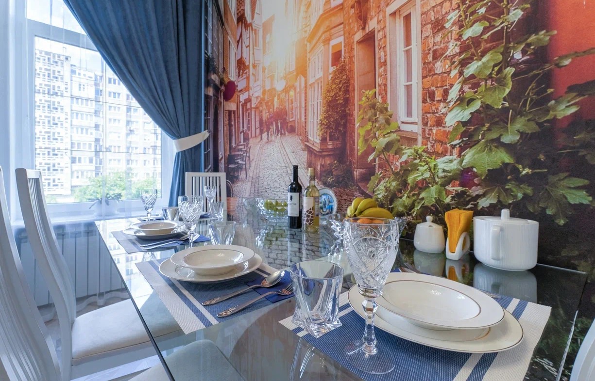 Апартаменты расположены в центральной части Калининграда рядом с городским прудом и набережной. До исторического центра и главных достопримечательностей — острова Канта, кафедрального собора, Рыбной деревни, руин Кёнигсбергской крепости можно доехать за 5—7 минут или прогуляться пешком. В 3 километрах находится железнодорожный вокзал, а до международного аэропорта Храброво дорога займет около получаса.