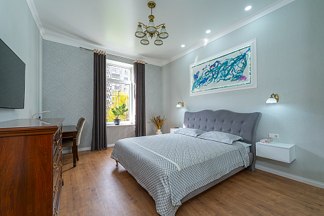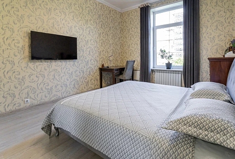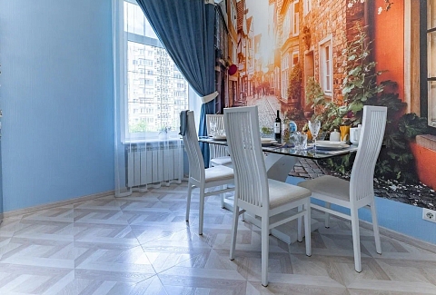 Апартаменты находятся в трехэтажном здании, разместившимся недалеко от пересечения главных магистралей района — улицы 9-го Апреля с улицей Фрунзе. Гостей ожидает комфортабельная двухкомнатная квартира с интерьером, выдержанном в классическом стиле. В апартаментах есть кухня, оборудованная все необходимой бытовой техникой и посудой, в ванной комнате установлена стиральная машина. В комнатах — телевизор с плоским экраном, удобная двуспальная кровать и большой мягкий диван.