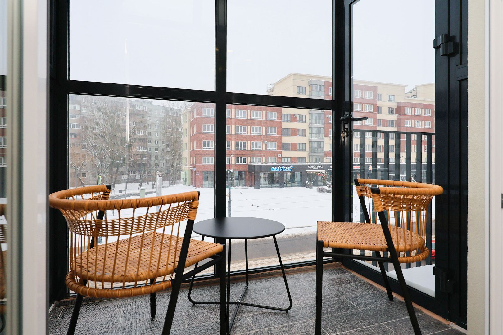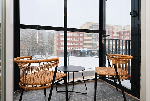Поездом до ж/д вокзала Калининград-Северный, далее на троллейбусе №7 до остановки «Первомайская Улица», далее 550 м до апартаментов.