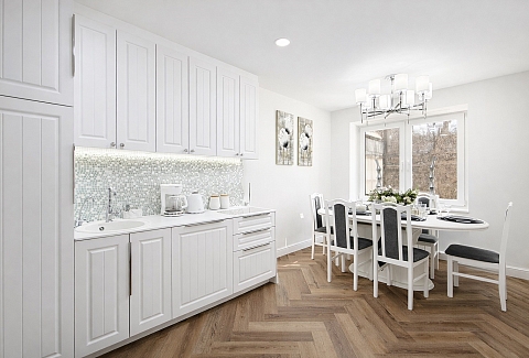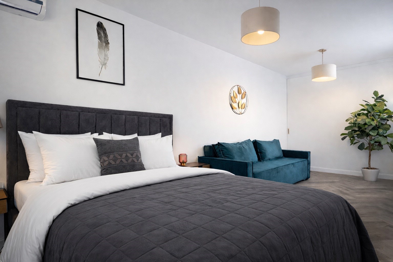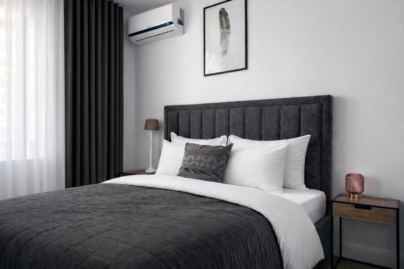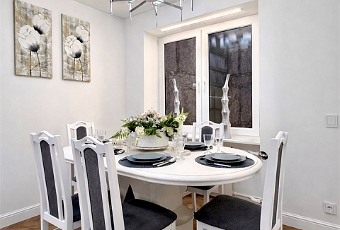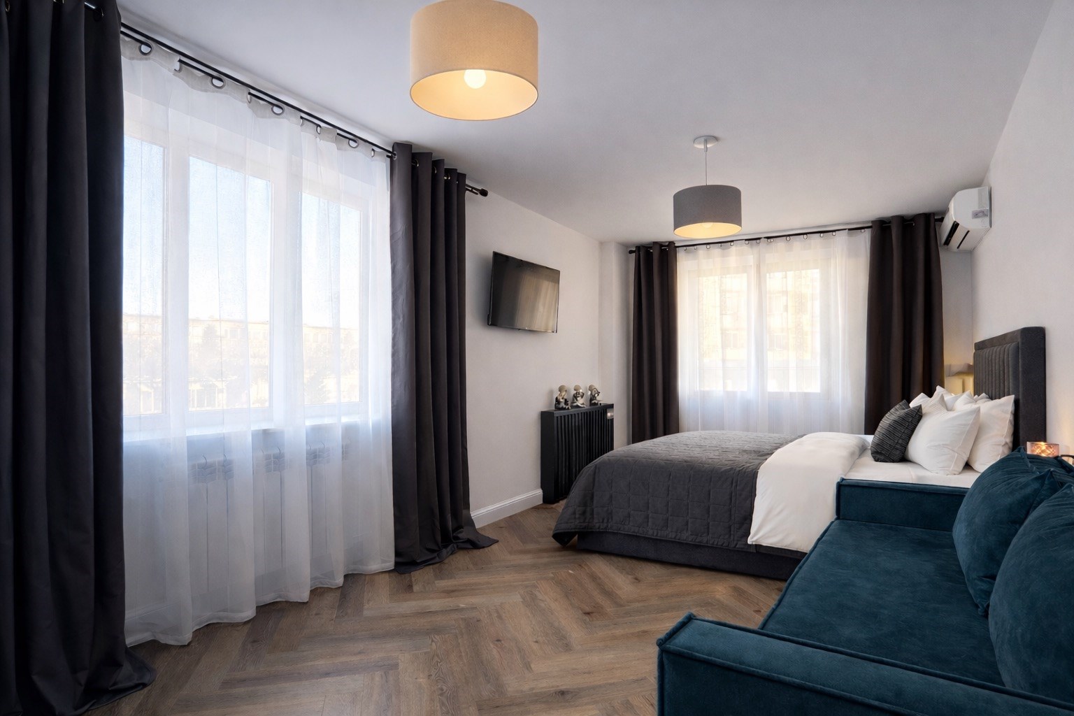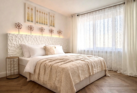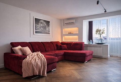 В самом сердце Калининграда, в районе с развитой инфраструктурой, расположены стильные премиум-апартаменты бутик-формата. В шаговой доступности находятся продуктовые магазины, остановки общественного транспорта и социальные объекты, а для гостей, путешествующих на автомобиле, предусмотрена парковка. Просторное трёхкомнатное жильё с дизайнерским интерьером, выполненным в светлых благородных тонах с золотыми акцентами, продуманными текстурами и декором, создаёт атмосферу уюта и приватности, сочетая домашнее тепло с уровнем комфорта отеля.Пространство включает просторную гостиную с декоративным камином, две отдельные спальни с большими кроватями, полноценную кухню с обеденной зоной, современную ванную комнату и дополнительный санузел.