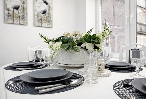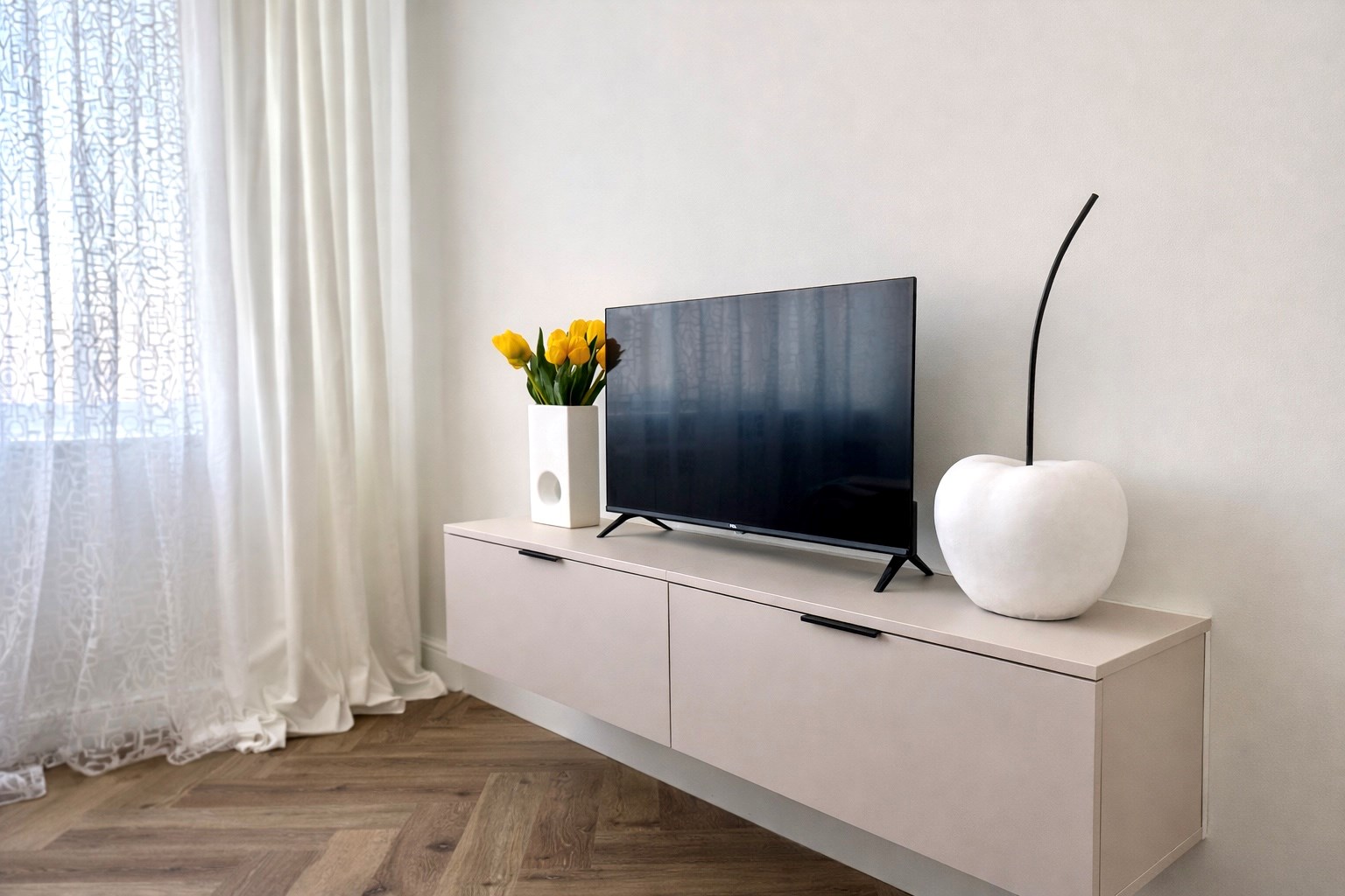 Для комфортного отдыха гостей предусмотрено белоснежное отельное постельное бельё и удобные ортопедические матрасы. В распоряжении гостей три телевизора Smart TV, высокоскоростной Wi-Fi, стиральная и посудомоечная машины, микроволновая печь, фильтр для питьевой воды, чайник и кофеварка, а также вся необходимая посуда. В ванной комнате есть фен, утюг с гладильной доской, а для приятного пребывания подготовлены тапочки и гигиенические средства.Эти апартаменты, рассчитанные на комфортное размещение до восьми человек, станут идеальным выбором для семейного проживания, деловой поездки или отдыха компанией, предлагая продуманное оснащение и эстетику, располагающую к расслаблению.