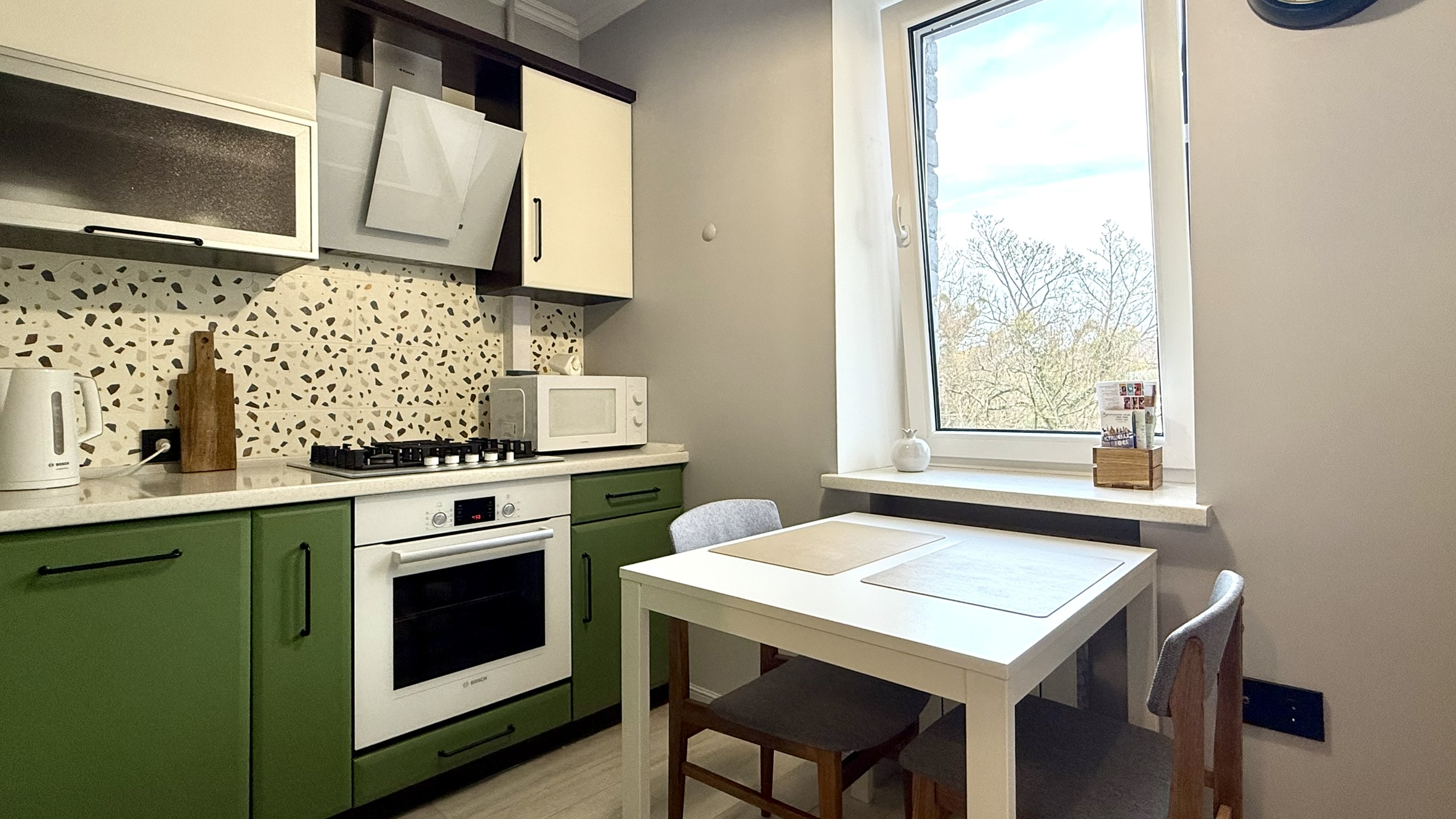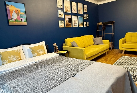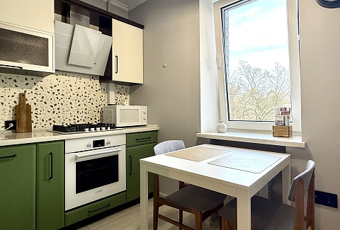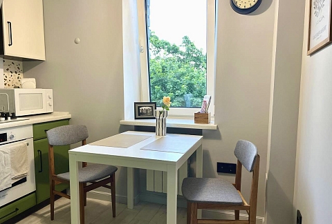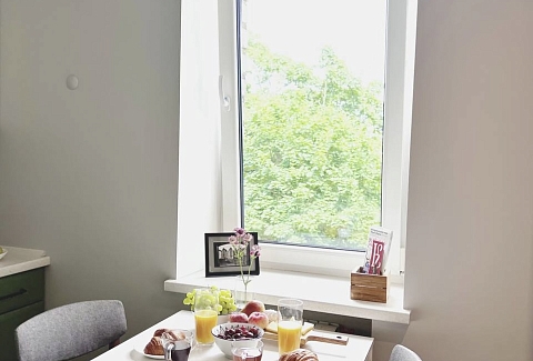 Также недалеко исторический центр, Рыбная деревня, Остров Канта, Кафедральный собор, руины Королевского замка До. железнодорожного вокзала «Северный» – 10 минут езды на авто.Пятиэтажный жилой дом, в котором разместились апартаменты, расположен на Земельной улице. В распоряжении гостей однокомнатный 2-местный номер с ярким интерьером. Апартаменты оснащены кухней с газовой плитой, балконом, санузлом с ванной. Среди прочих удобств – стиральная машина, телевизор-ЖК и высокоскоростной интернет.Для гостей на авто рядом с домом предусмотрена открытая охраняемая парковка.