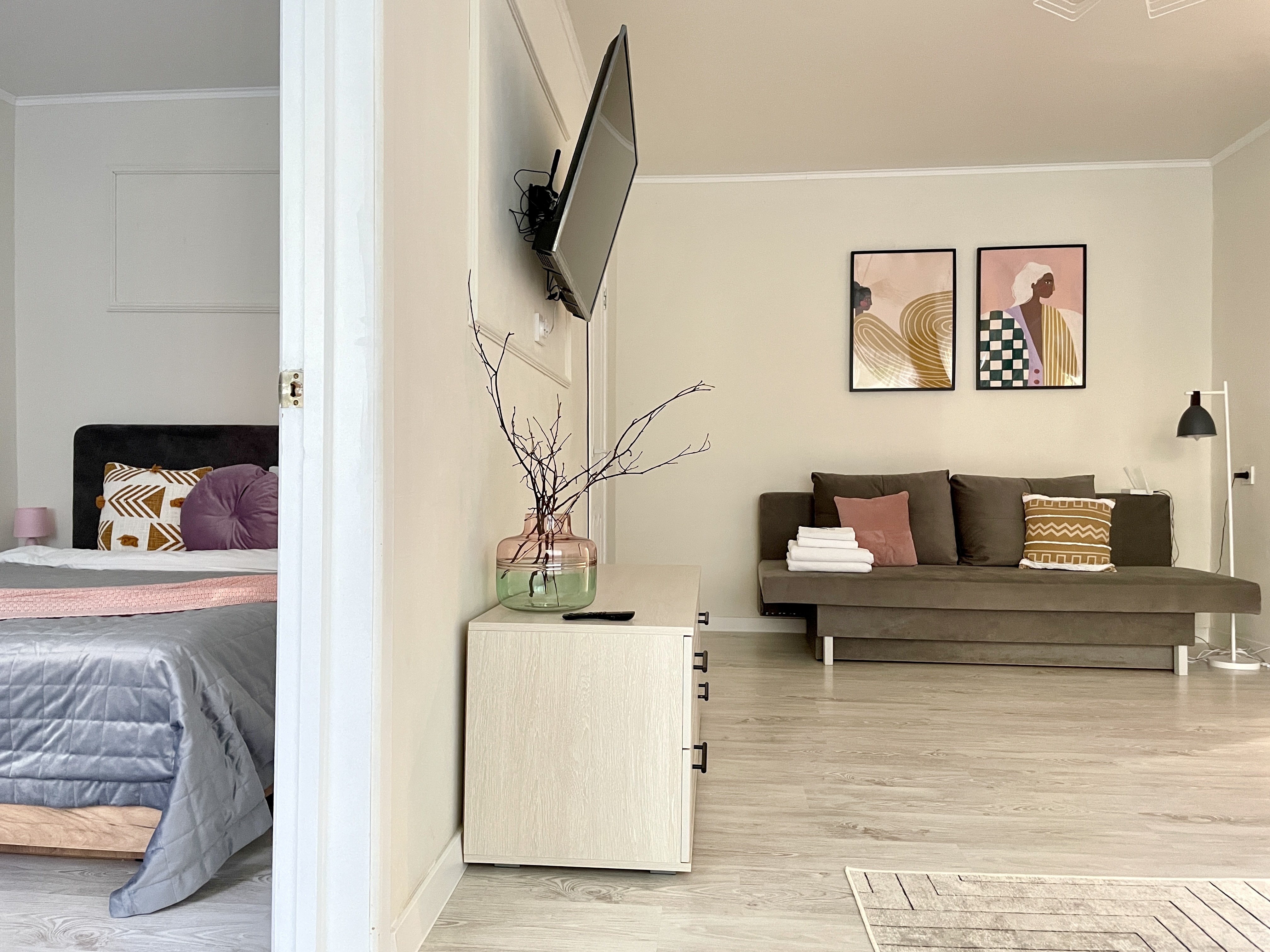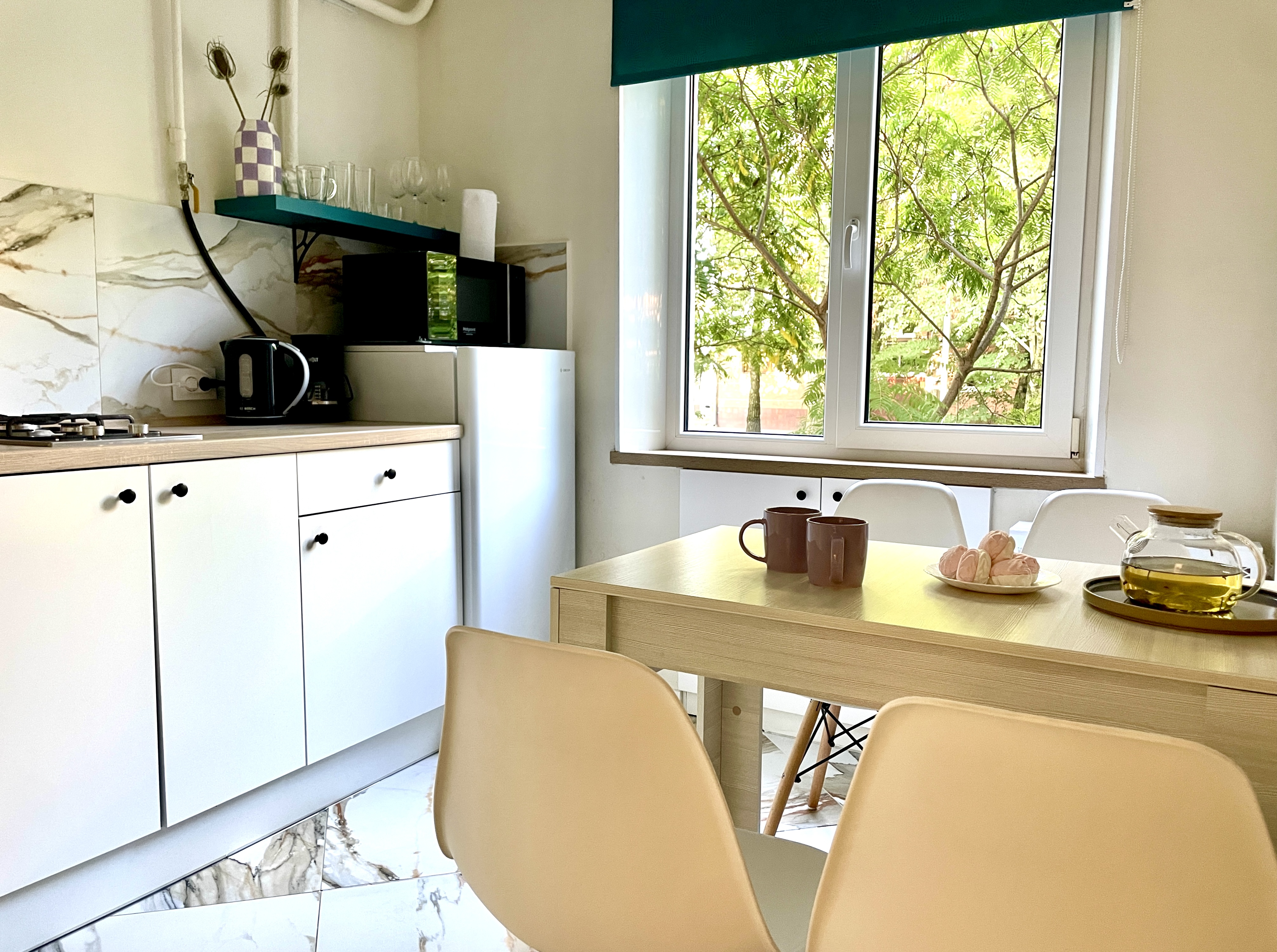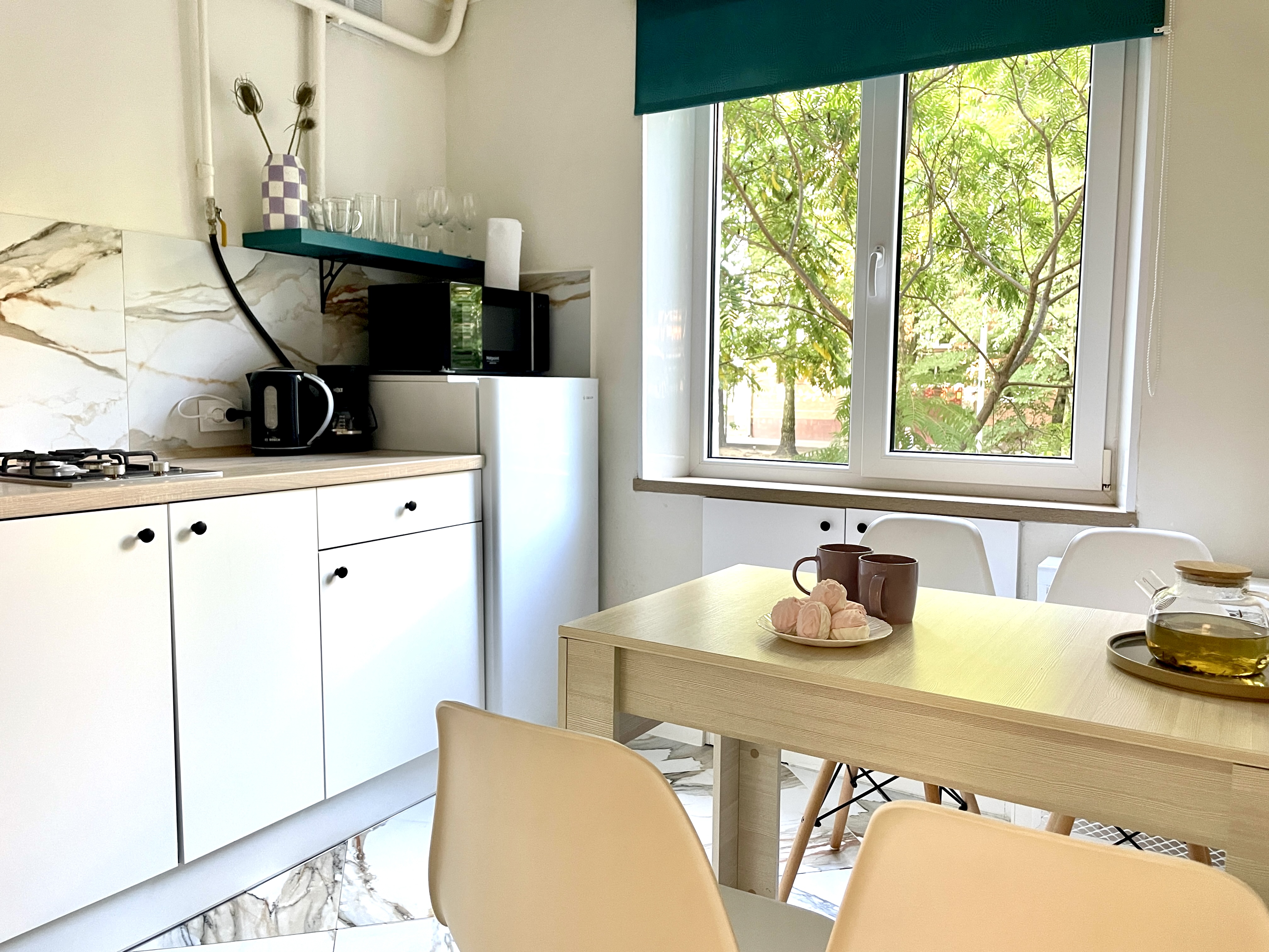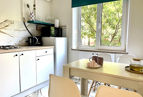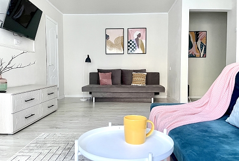 Уютные и комфортабельные апартаменты, снабжены всем необходимым как для короткого, так и для длительного пребывания. Тихий район, В соседнем доме кофейни для вкусного завтрака и продуктовый магазин. Апартаменты полностью укомплектована всей необходимой мебелью и техникой.