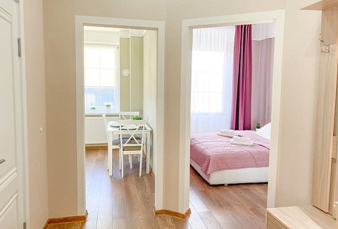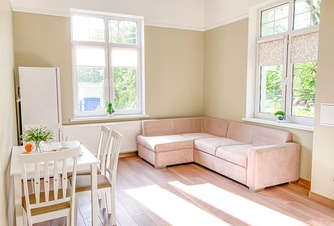 Balt-Apartments Pionersk расположенный в городе курортном городке Пионерский на Балтийском побережье, отлично подойдет для большой семьи или дружной компании, которая ценит простор, комфорт и удобную локацию.Просторные апартаменты разместились в центре города, рядом — кафе, музеи, магазины, а всего в 3 минутах ходьбы — городской променад и спуск к морю. В 500 метров расположен междугороднего железнодорожного вокзала, а дорога до аэропорта Храброво займет менее получаса.Апартаменты, оформленные по индивидуальному дизайну, находятся в трехэтажном доме на центральной улице города — Комсомольской. В распоряжении гостей двух- и четырехместные однокомнатные номера, оснащенные всем необходимым для комфортного отдыха.