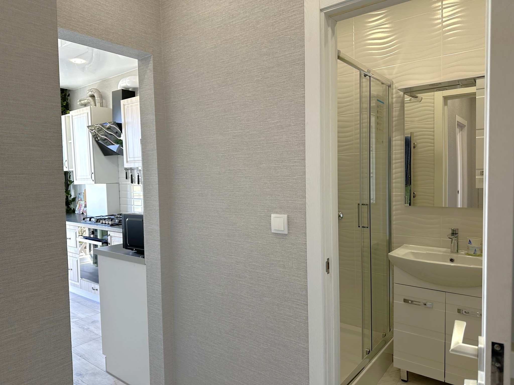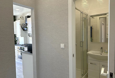 Санузел: с душем, туалетные принадлежности, фен