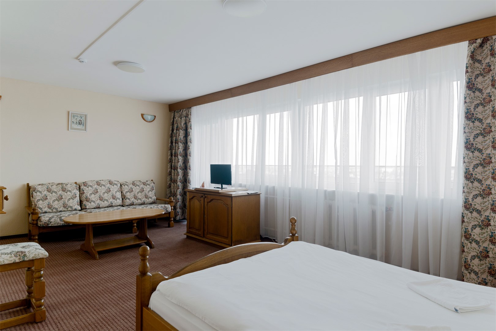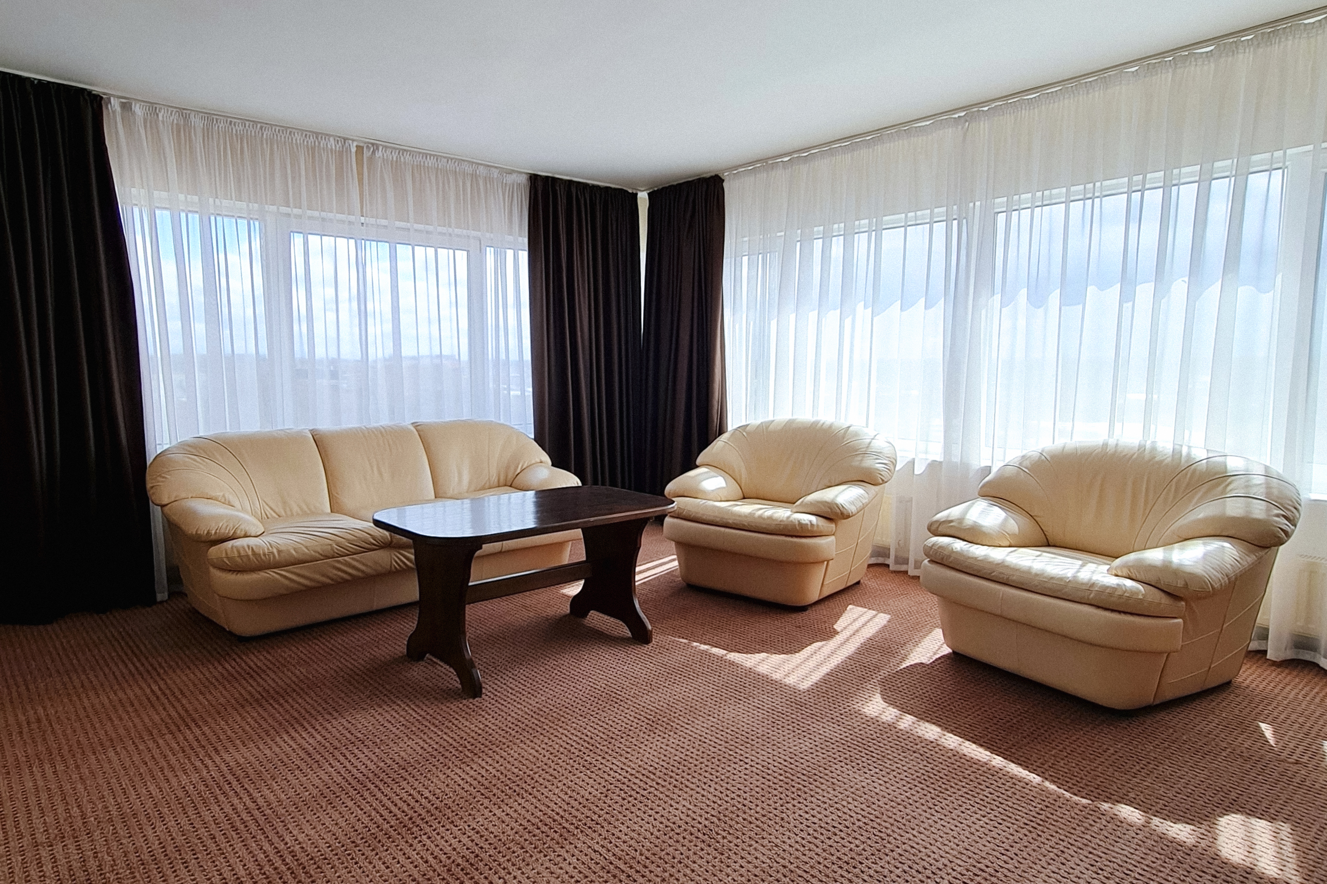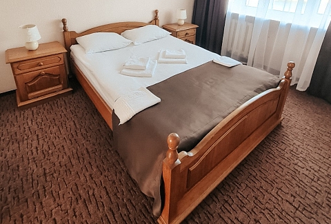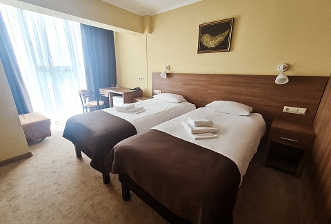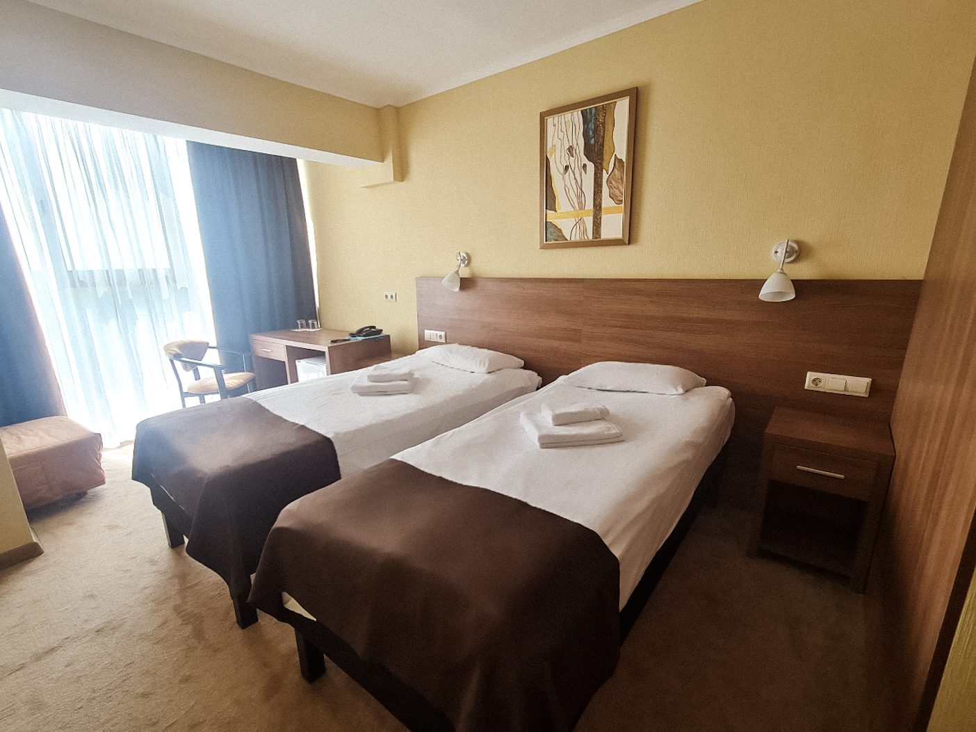 Номерной фонд включает как обычные категории - Стандарт, Комфорт, Комфорт Плюс, Бизнес и Апартаменты. В номерах есть все, что требуется для комфортного проживания– удобная и качественная мебель, техника – телевизор, фен, собственный санузел с ванной или душем. В категориях Комфорт Плюс, Бизнес и Апартаменты установлены кондиционерыПо утрам постояльцам предлагается завтраки по системе «шведский стол» при условии наполняемости гостиницы. В отеле работают ресторан и летнее кафе, оборудованный конференц-зал, способный разместить до трехсот человек, комната переговоров на 20 человек, открытая охраняемая автостоянка, wi-fi.