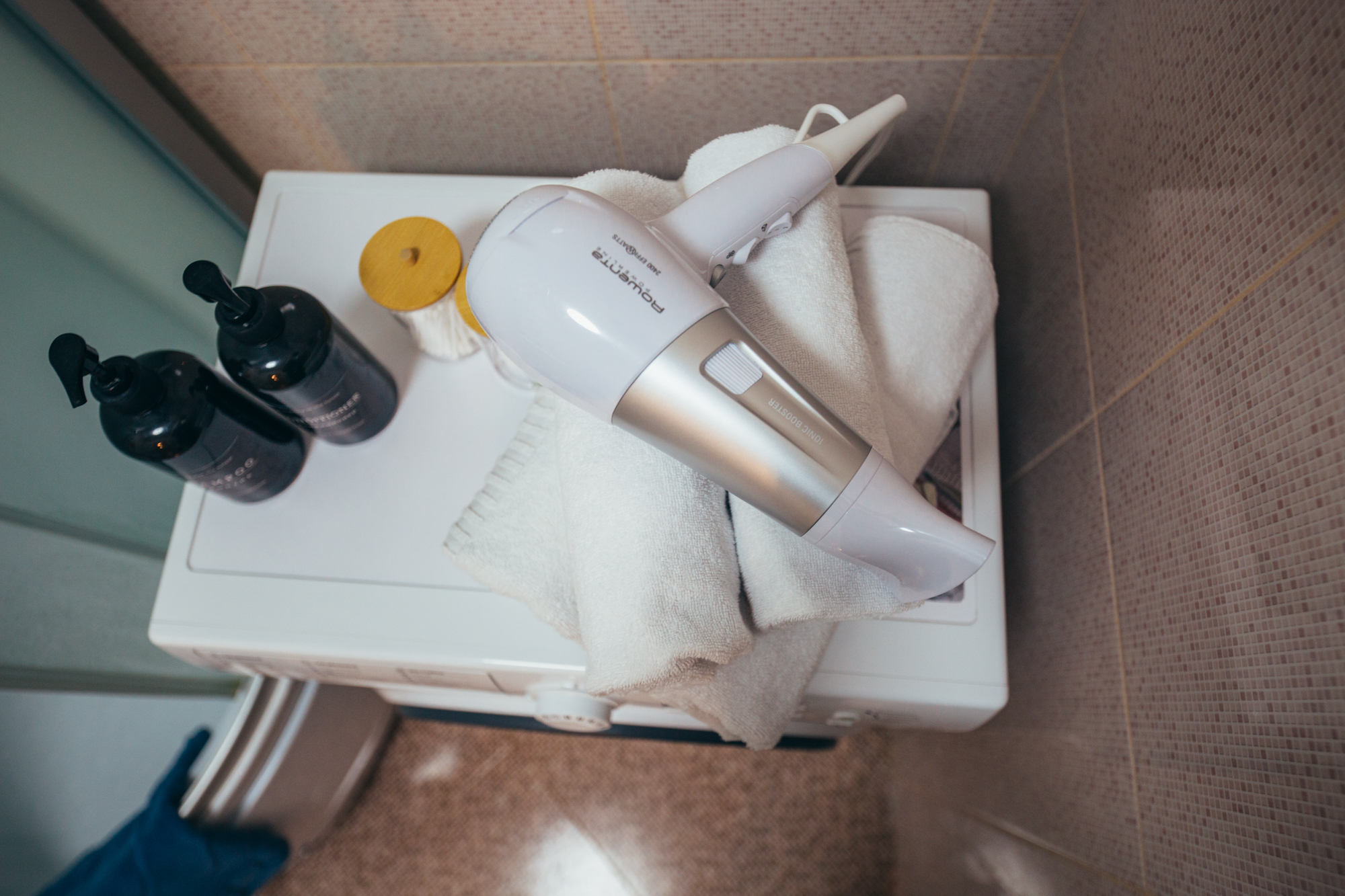 Санузел: с душем, туалетные принадлежности, фен