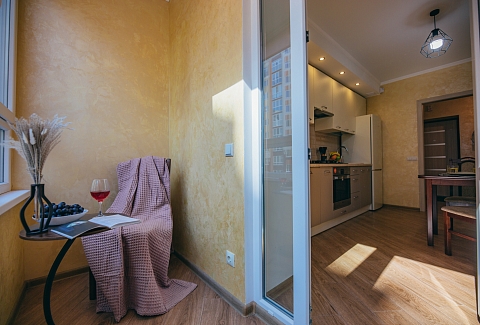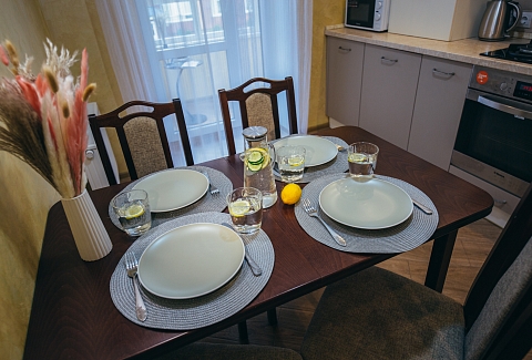 Рядом — городской парк, бювет с минеральной водой, уютные кафе и знаменитая зеленоградская «котоВасия» с арт-объектами, посвященными кошкам.Апартаменты представляют собой полностью оборудованное жилое пространство, продуманное до мелочей. Интерьер выполнен в спокойных светлых тонах с использованием натуральных материалов.Просторная комната объединяет зону отдыха и спальню. Здесь установлена удобная двуспальная кровать с качественным матрасом, мягкий диван, обеденный стол и телевизор. Большие окна наполняют пространство естественным светом.Кухонная зона оснащена всем необходимым: плита, холодильник, микроволновая печь, чайник, тостер и полный набор посуды. Можно готовить как легкий завтрак, так и полноценный ужин.Отдельный санузел оборудован душевой кабиной. Гостям предоставляются свежие полотенца, фен и средства гигиены. Чистота поддерживается на безупречном уровне.В апартаментах есть кондиционер и качественная шумоизоляция, что обеспечивает спокойный отдых. Для гостей с автомобилем предусмотрена парковка неподалеку. Вход оборудован кодовым замком для безопасности.«Домлин на Мосина 12» — это уютный дом в сердце Зеленоградска, где хочется задержаться подольше и вернуться снова.