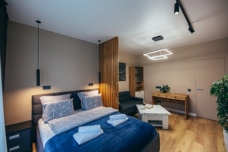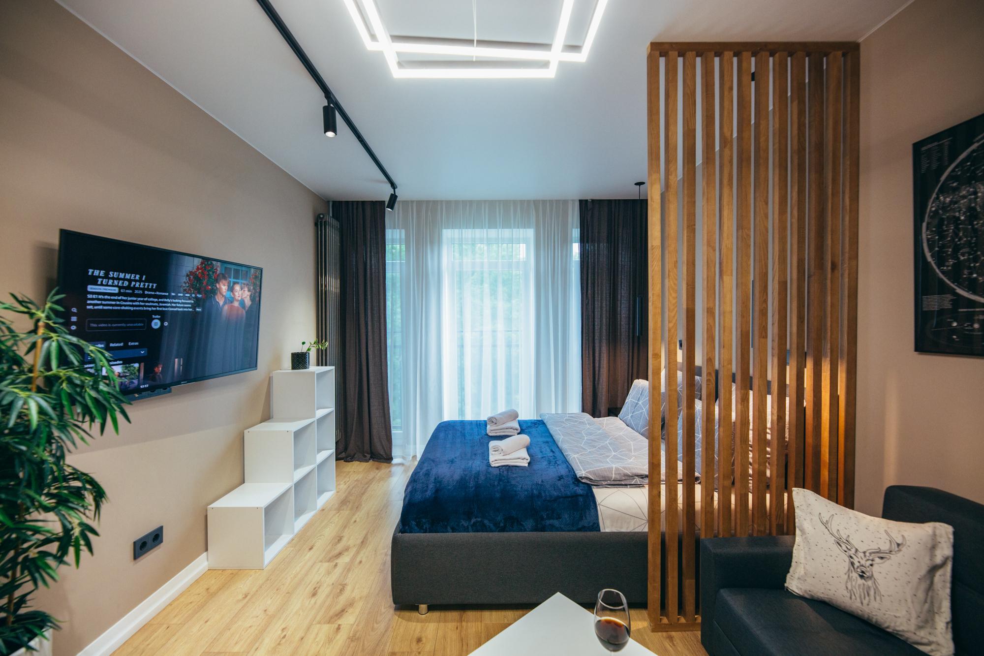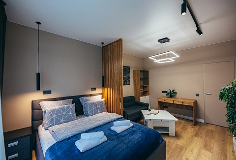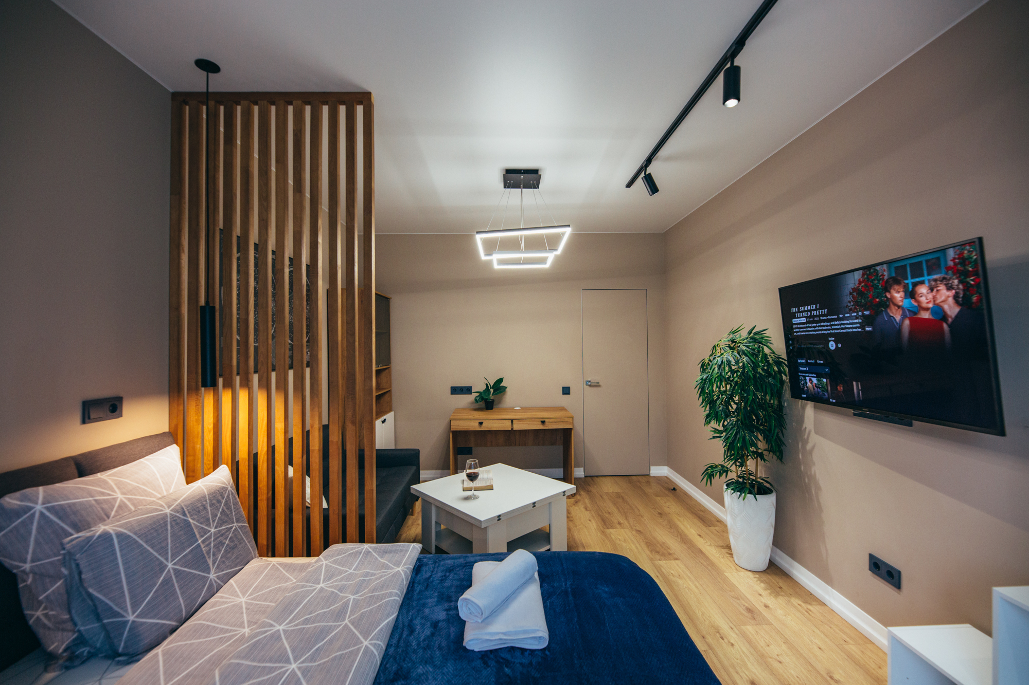 До исторического центра Калининграда, острова Канта и Кафедрального собора можно доехать без пересадок за небольшое время. Неподалеку расположены зеленые зоны и парки, где приятно прогуляться в свободное время.Апартаменты представляют собой полностью оборудованное жилье с продуманной планировкой. Внутри царит атмосфера тепла и уюта: интерьер выполнен в спокойных светлых тонах, создающих ощущение простора и домашнего комфорта.