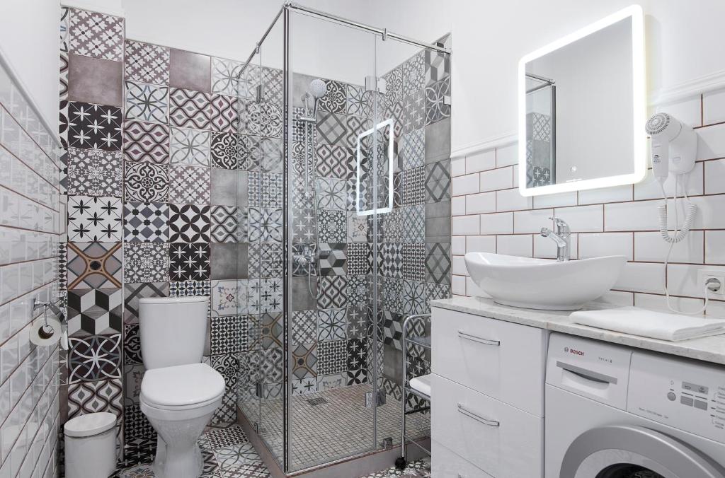 Санузел: с душем, туалетные принадлежности, фен