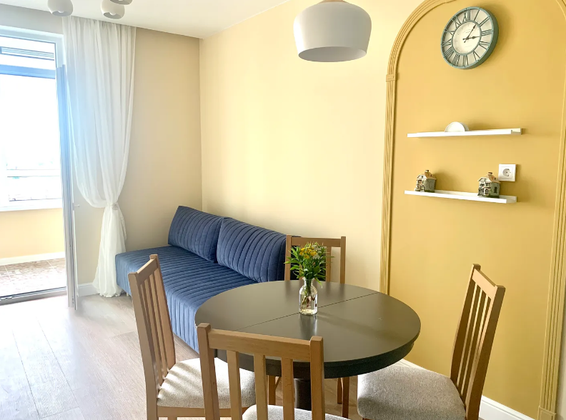 Апартаменты расположены в новом жилом комплексе «КалинаАпарт на Арсенальной 29» в Калининграде. Это отличный вариант для тех, кто ценит современный комфорт и удобство транспортной доступности: всего за 10 минут можно доехать до самого сердца города — Музея Янтаря, а до курортных Зеленоградска и Светлогорска — не более 20 минут на автомобиле или электричке «Ласточка», остановка которой находится в шаговой доступности. Рядом с домом есть продуктовый магазин и точка питания, а вечером особенно приятно прогуляться до ресторана «Пивовар», где подают живое пенное и сытные блюда.