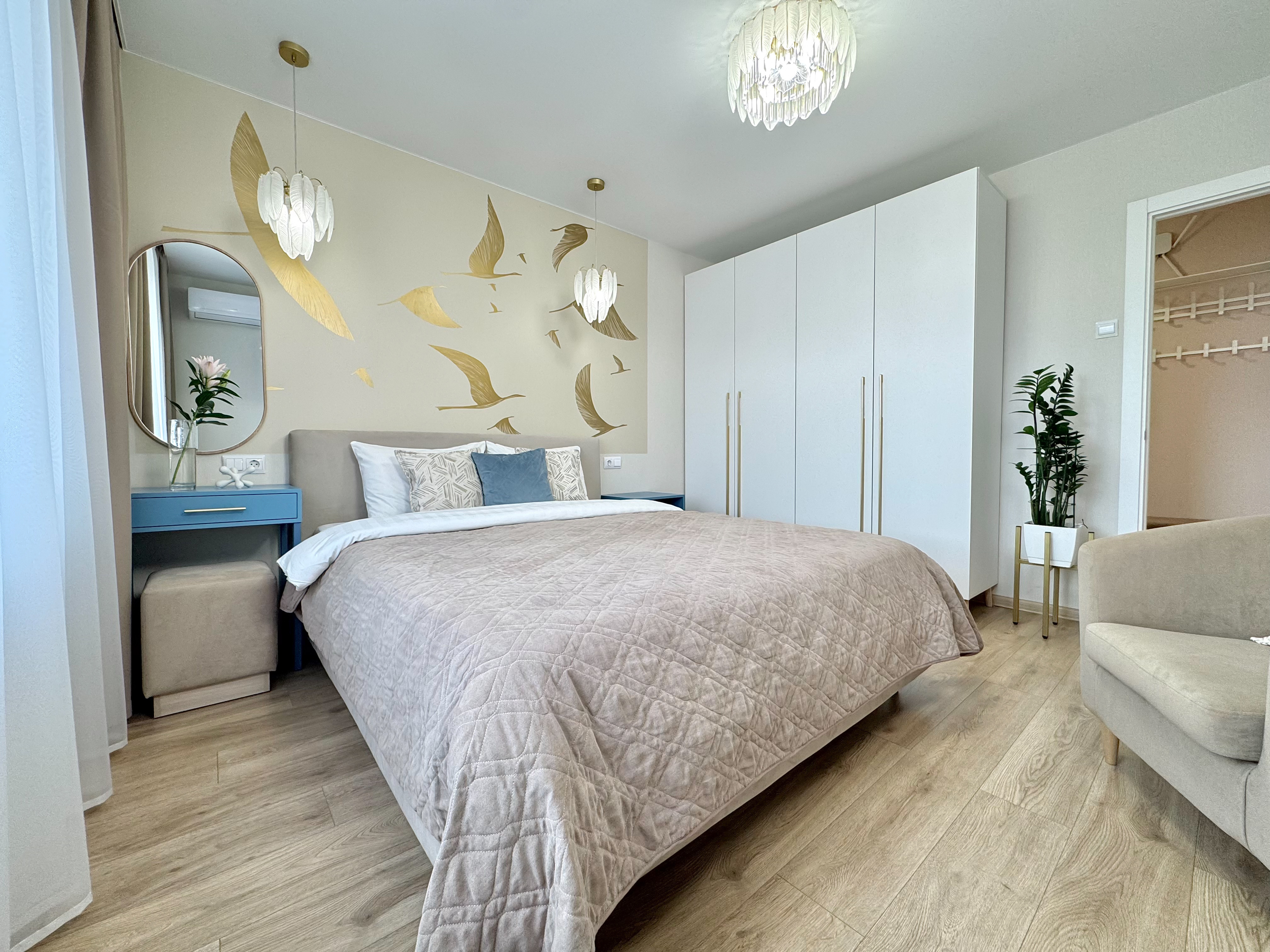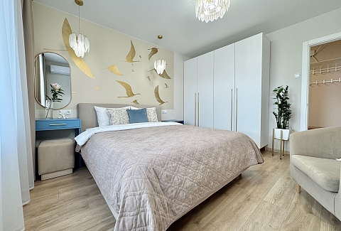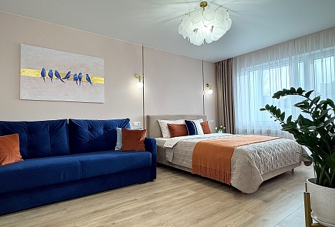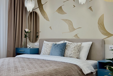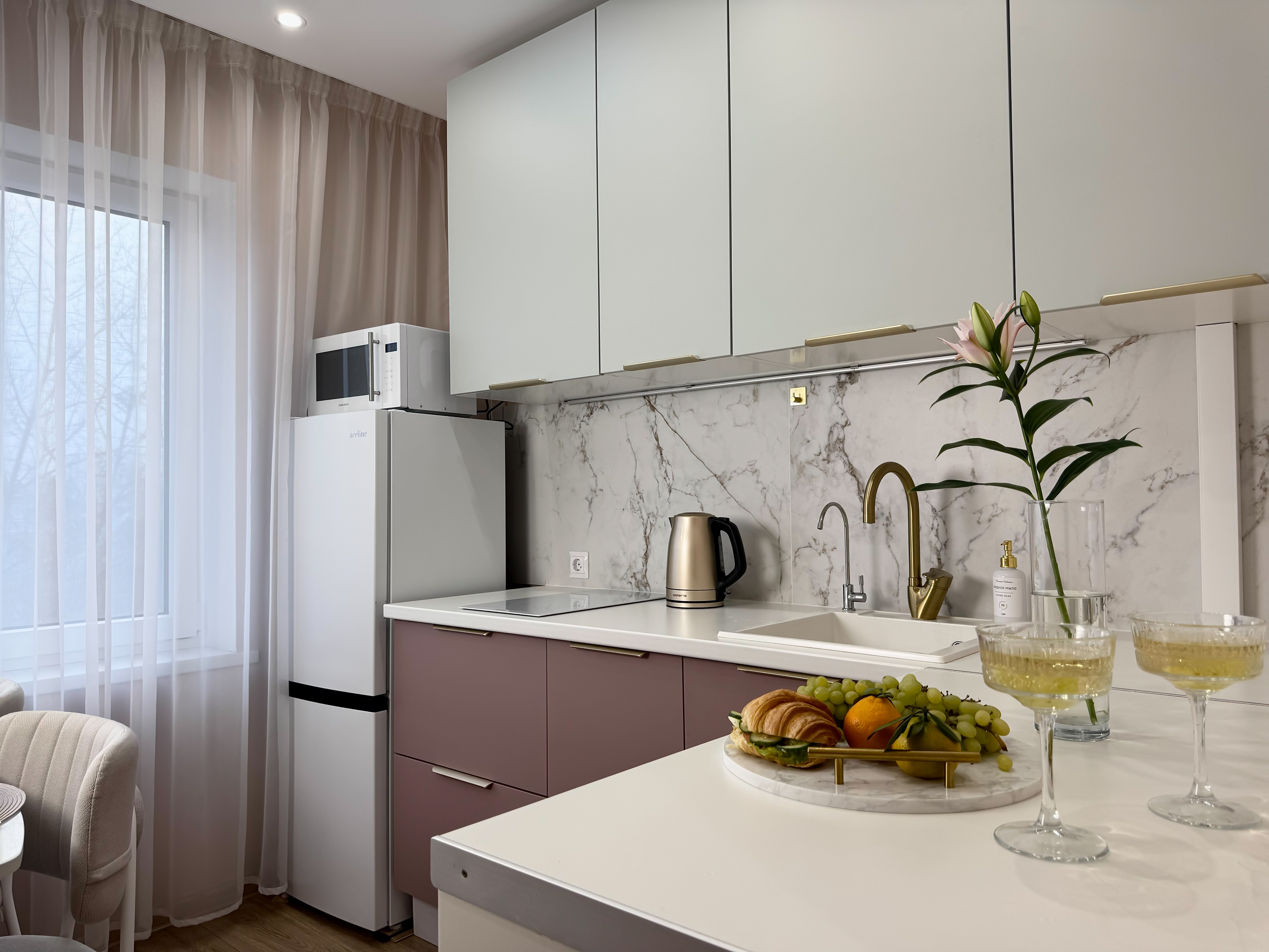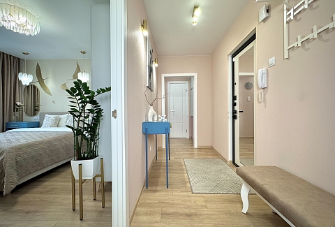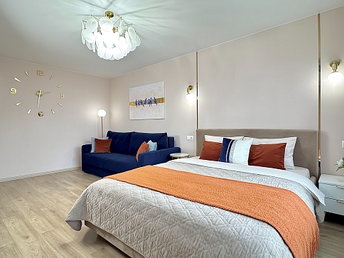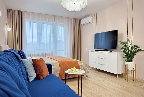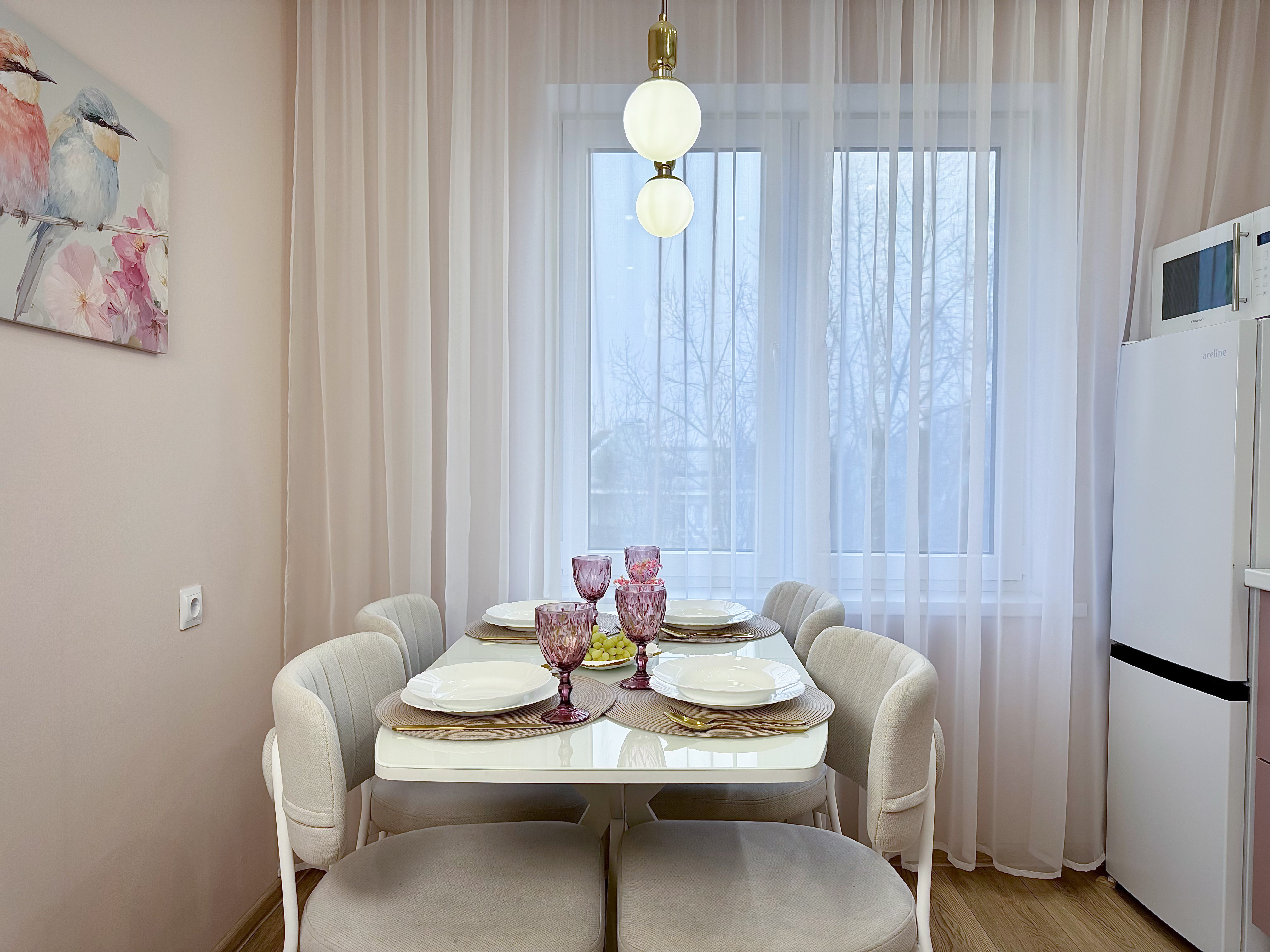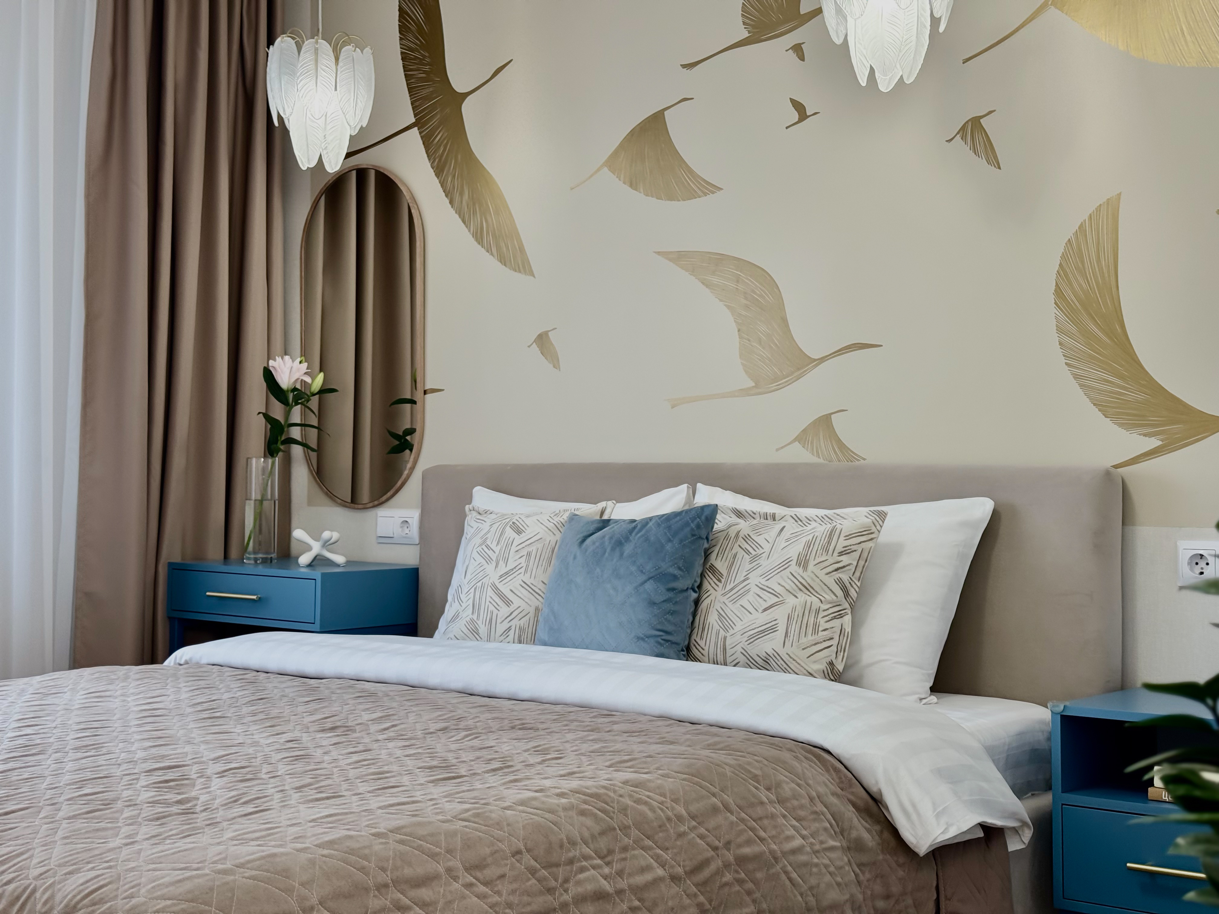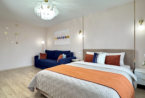 Внутреннее пространство апартаментов продумано до мелочей и рассчитано на размещение компании, в том числе с детьми от 3-х лет. Здесь организованы два отдельных спальных места с комфортными двуспальными кроватями (160×200 см), а также имеется раскладной диван (160×200 см), что позволяет с удобством разместиться до шести гостей. К услугам проживающих — современная техника: кондиционеры, телевизоры со smart TV, стиральная машина, холодильник, плита, микроволновая печь, электрочайник, фен и утюг. Кухня полностью укомплектована посудой и всеми необходимыми принадлежностями для приготовления еды. Приятным дополнением станут солнечная лоджия, где можно отдохнуть с утра за чашечкой кофе, и предусмотренные стартовые наборы чая, кофе и средств гигиены с постельным бельём.Благодаря бесконтактному заселению гости могут прибывать в любое удобное время, наслаждаясь свободой перемещения и полной автономией. Это место идеально подходит для тех, кто ценит тишину и комфорт в сочетании с возможностью жить в ритме исторического центра, имея под рукой всё необходимое для идеального отдыха.
