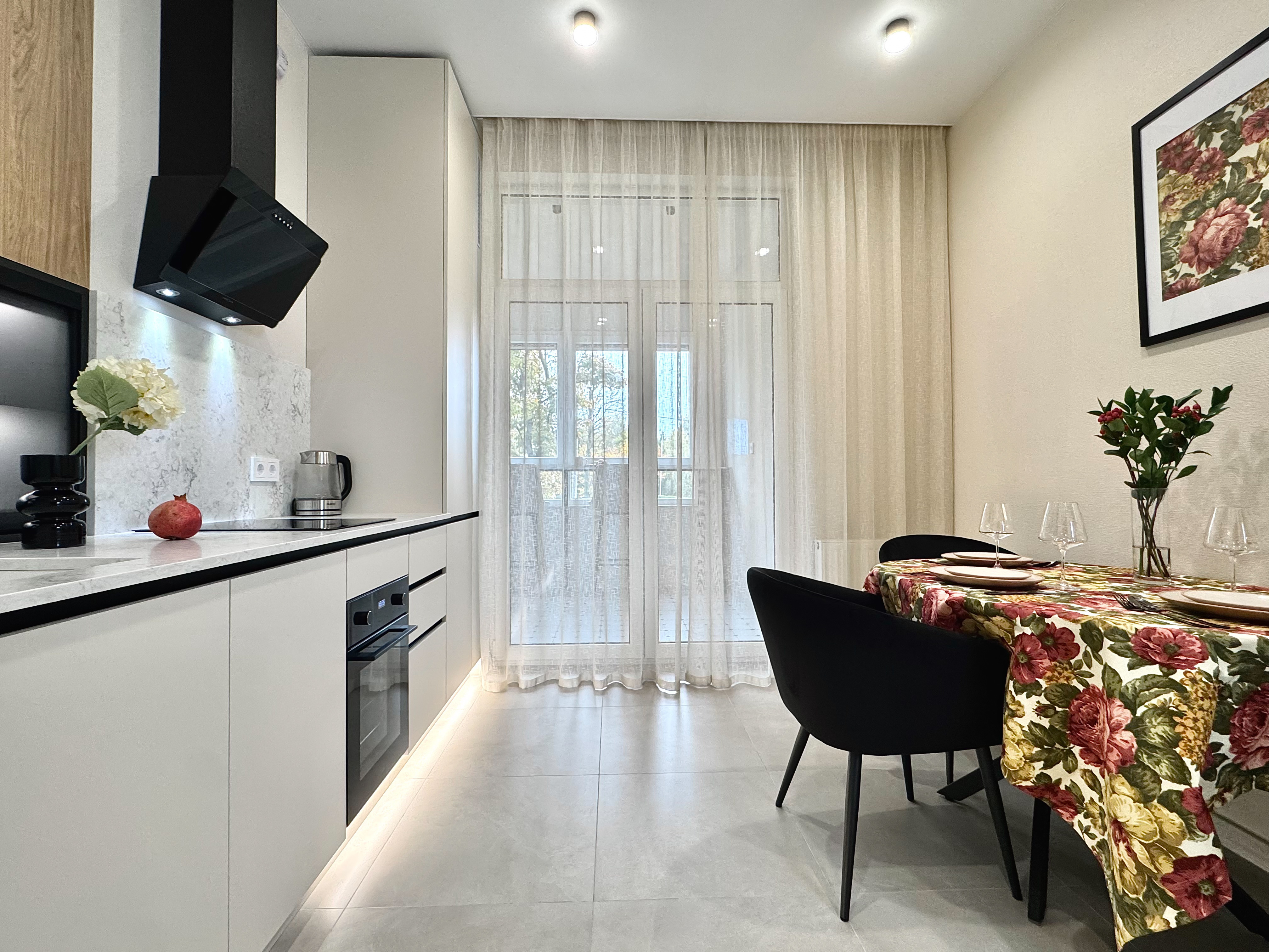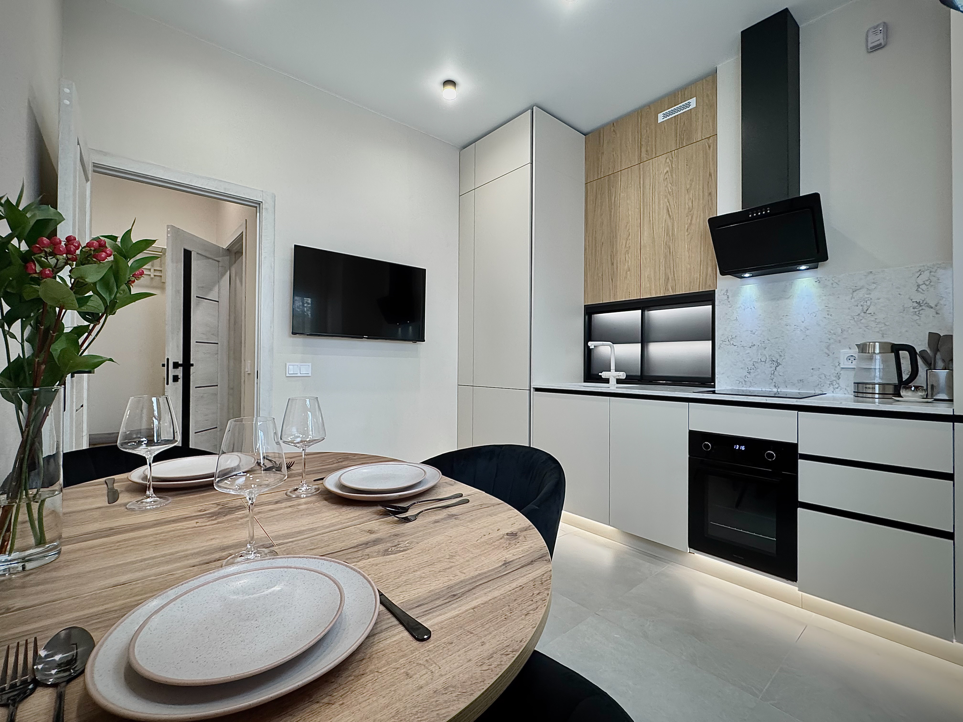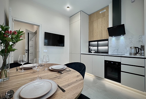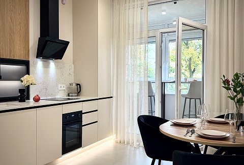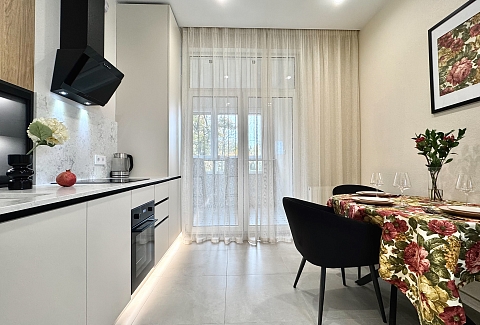 Для гостей на автомобиле предусмотрены подземный паркинг (доступен за дополнительную плату) и просторная гостевая парковка. В шаговой доступности — зоопарк, разнообразные рестораны и ночные клубы, живописный район Амалиенау, Северный вокзал, Центральный парк, Музей Мирового океана, остров Канта и музей «Дом Китобоя».Внутреннее пространство апартаментов продумано до мелочей и оснащено всем необходимым для комфортного проживания. В распоряжении гостей современная техника: посудомоечная машина, кондиционер, стиральная машина, духовой шкаф, микроволновая печь и капсульная кофемашина. Установлен двухконтурный газовый котел, обеспечивающий бесперебойное горячее водоснабжение и тепло круглый год, а теплые полы создают дополнительный уют. В спальне — большая удобная кровать, двуспальный диван, рабочий стол и смарт-телевизор. На просторной кухне, также оснащенной смарт-ТВ, есть всё необходимое для приготовления и подачи блюд, включая полный набор посуды. Отсюда можно выйти на большую лоджию, где так приятно наслаждаться завтраками или устраивать романтические ужины, глядя на парк. Для гостей предусмотрены стартовый набор средств гигиены, а также чай и кофе.Это идеальное место для тех, кто ищет спокойствие, приватность и продуманный комфорт в самом сердце городской жизни. Сочетание преимуществ охраняемого комплекса, стильного интерьера с теплыми деталями и близости к главным достопримечательностям и зеленым зонам делает эти апартаменты превосходным выбором для вдумчивого путешествия в Калининград.