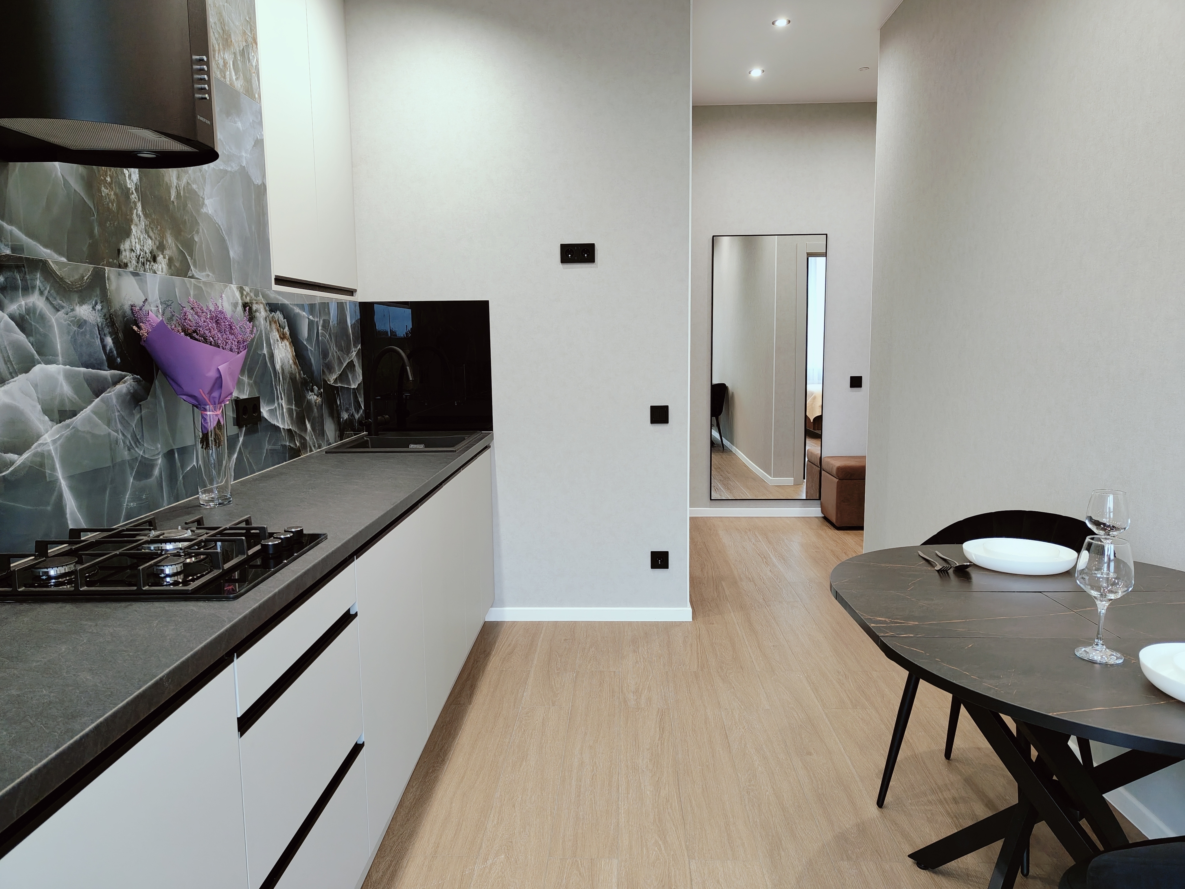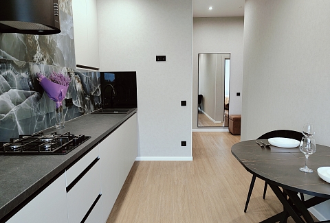 В шаговой доступности — зоопарк, уютные рестораны, ночные клубы, живописный район Амалиенау, Северный вокзал, Центральный парк, Музей Мирового океана, остров Канта и музей «Дом Китобоя».Внутри апартаментов продумано всё для безупречного отдыха. Пространство оснащено стиральной машиной, пылесосом, феном и утюгом, что позволяет чувствовать себя как дома. Установлен двухконтурный газовый котёл, обеспечивающий бесперебойное горячее водоснабжение и комфортное отопление круглый год, а в ванной комнате оборудованы тёплые полы. В зоне спальни — большая удобная кровать и двуспальный диван, а также смарт-телевизор. Кухня полностью укомплектована посудой и необходимой техникой, включая микроволновую печь. Особое очарование месту придаёт просторная лоджия, где так приятно наслаждаться утренним кофе или устраивать романтические ужины, глядя на парк. Для гостей предусмотрены стартовый набор средств гигиены, а также чай и кофе.Это идеальное место для тех, кто ищет спокойствие и уединение в самом центре городской жизни. Сочетание приватности охраняемого комплекса, продуманного интерьера с тёплыми деталями и близости к главным достопримечательностям и зелёным зонам делает эти апартаменты превосходным выбором для вдумчивого путешествия в Калининград.
