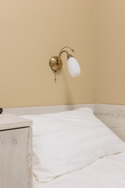 В номере: вешалка, зеркало, кровати односпальные, прикроватные тумбочки, стол, стулья, шкаф, вентилятор, мини-холодильник, телевизор ЖК, телефон, утюг, электрочайник