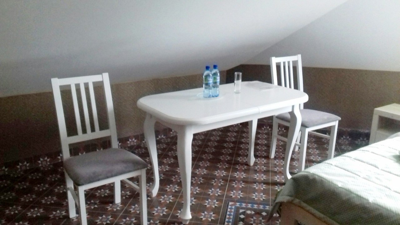 В номере: вешалка, зеркало, кровать двуспальная, прикроватные тумбочки, стол, стулья, шкаф, вентилятор, микроволновая печь, мини-холодильник, набор посуды, плита электрическая, телевизор ЖК, телефон, электрочайник