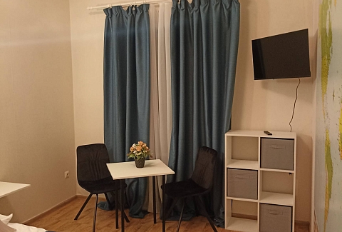 Комнаты оснащены всей необходимой мебелью и техникой для комфортного проживания. В каждом номере есть удобная двуспальная кровать, телевизор, Wi-Fi и достаточно места для хранения одежды. Ванные и туалеты расположены на этаже. В каждом номере гости найдут чайник, кофе, чай и бутилированную воду. На 1 этаже находится общая кухня с кулером, кофемашиной, чайником, холодильником и микроволновой печью.На 2 этаже расположен холл для отдыха с мягкими диванами и игровой консолью. Летом на территории гостевого дома устанавливается бассейн и волейбольная сетка. Имеется просторная зона барбекю, а близость лесополосы гарантирует утреннее пробуждение под пение птиц.