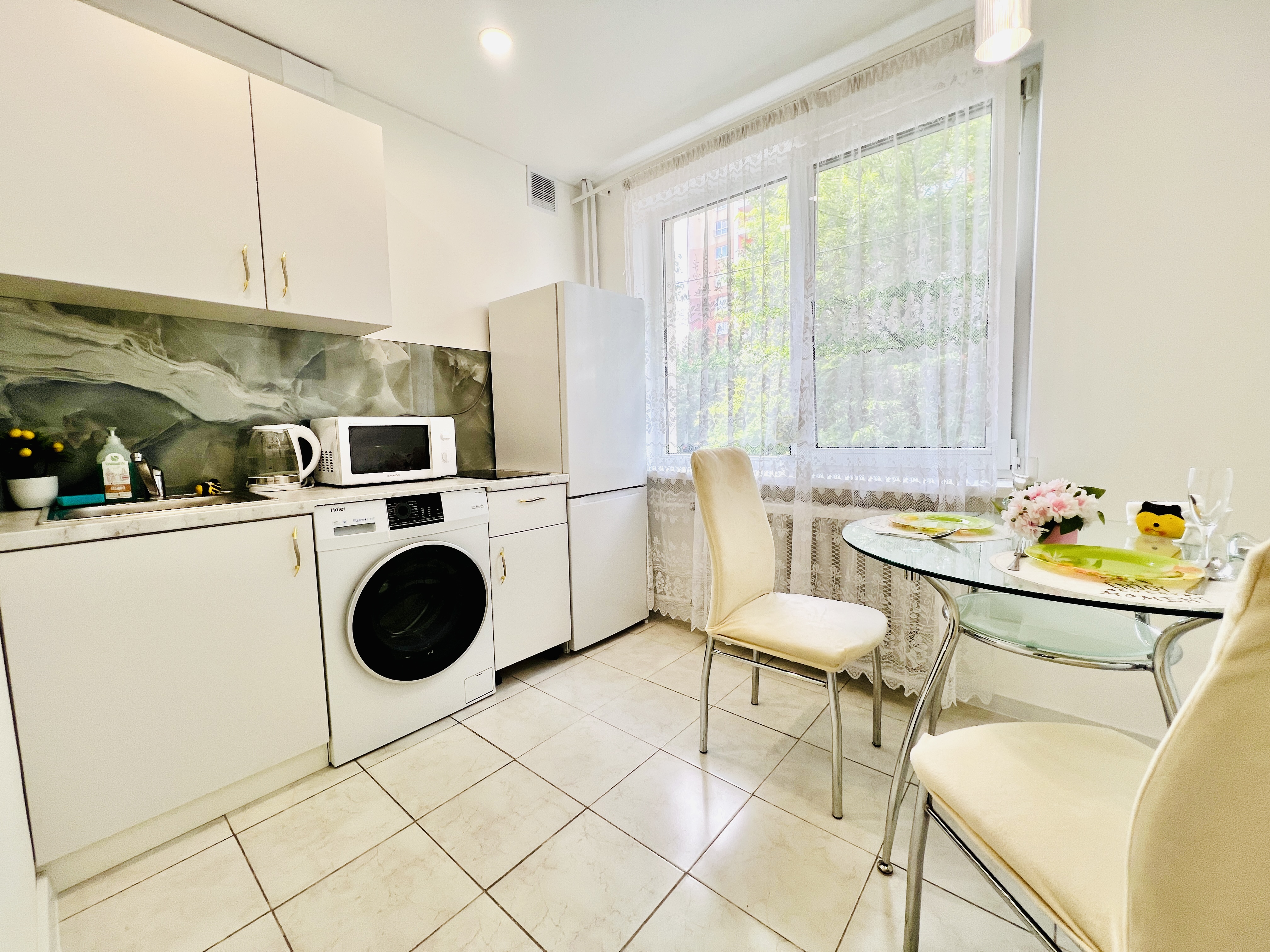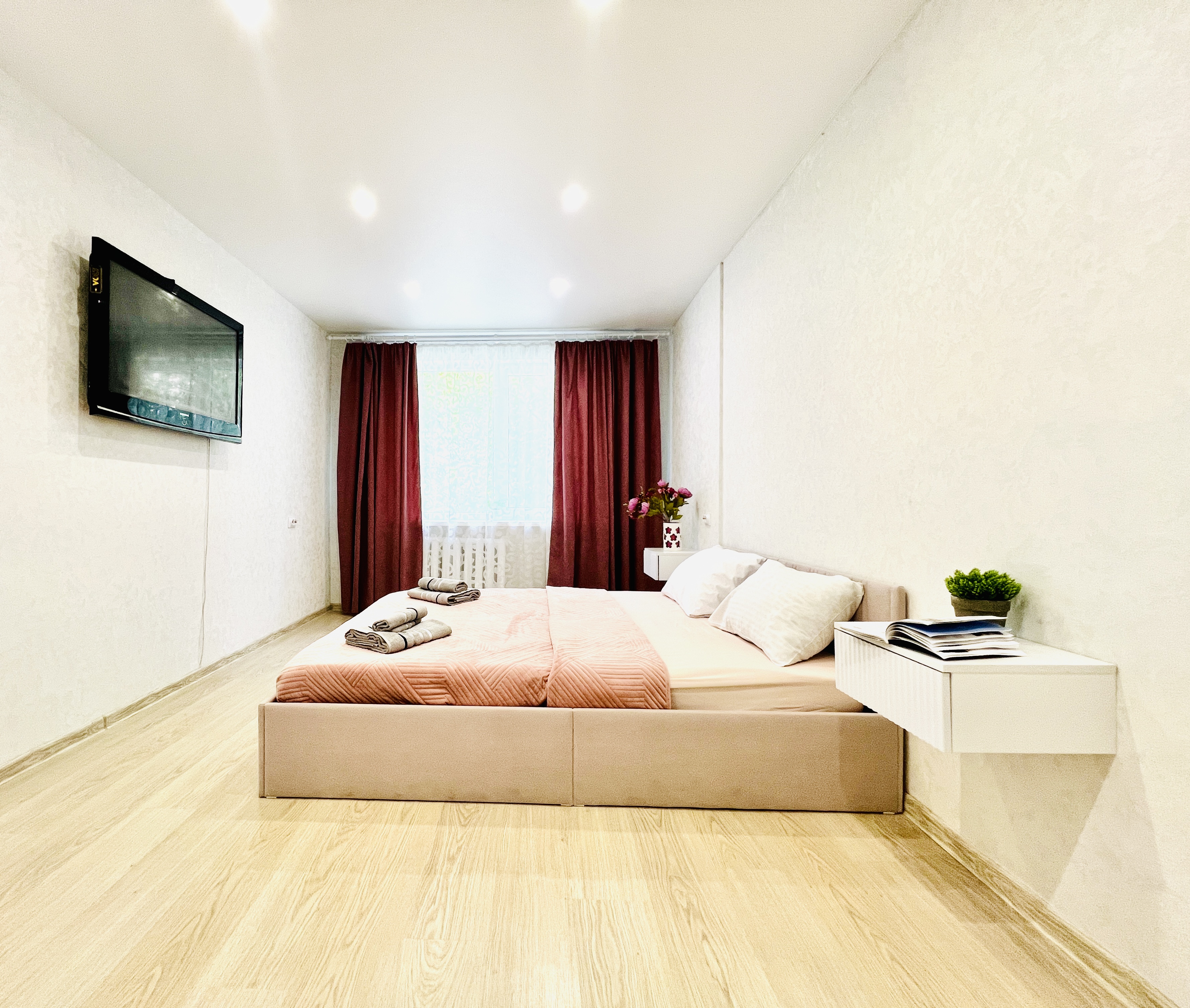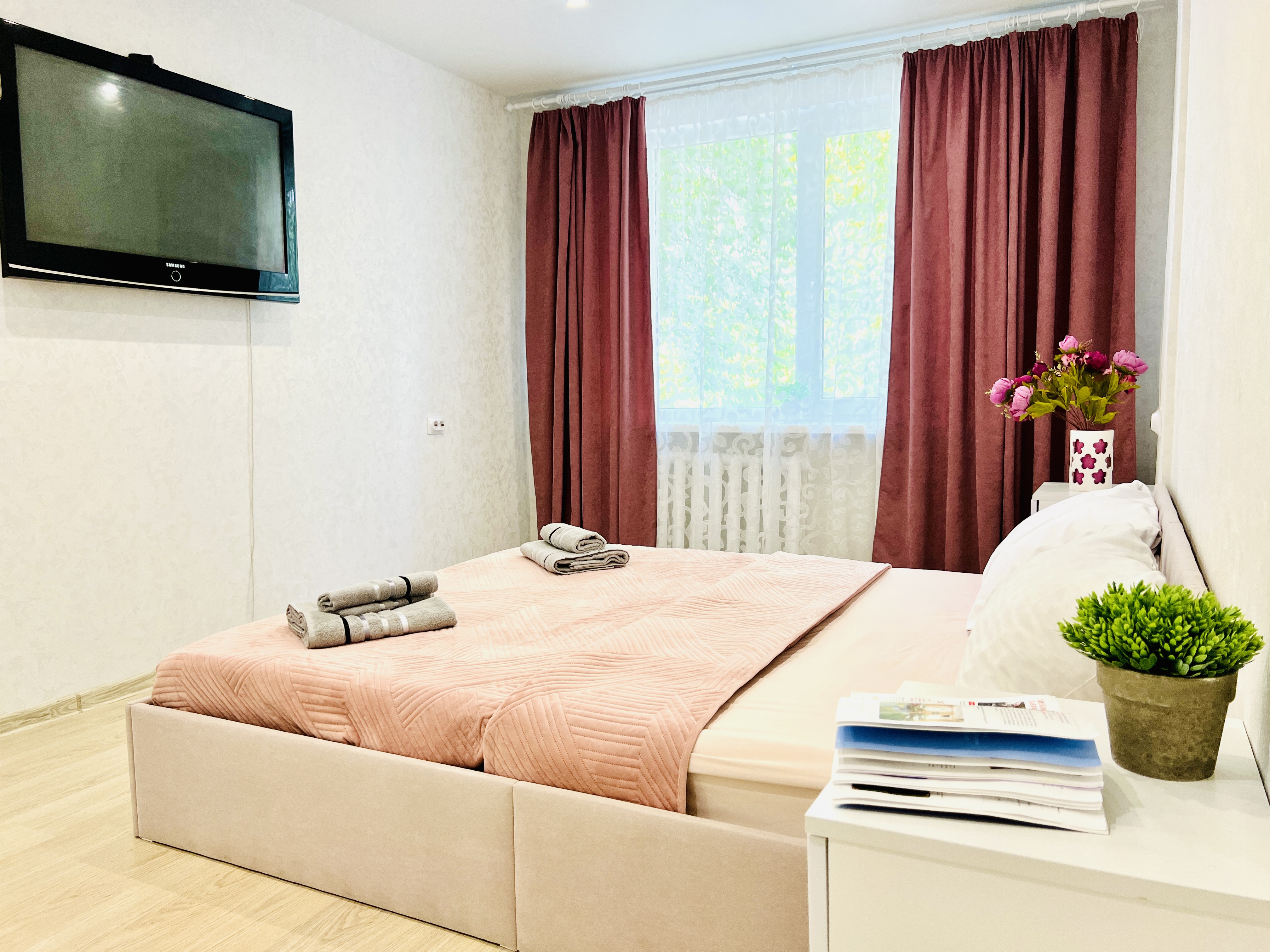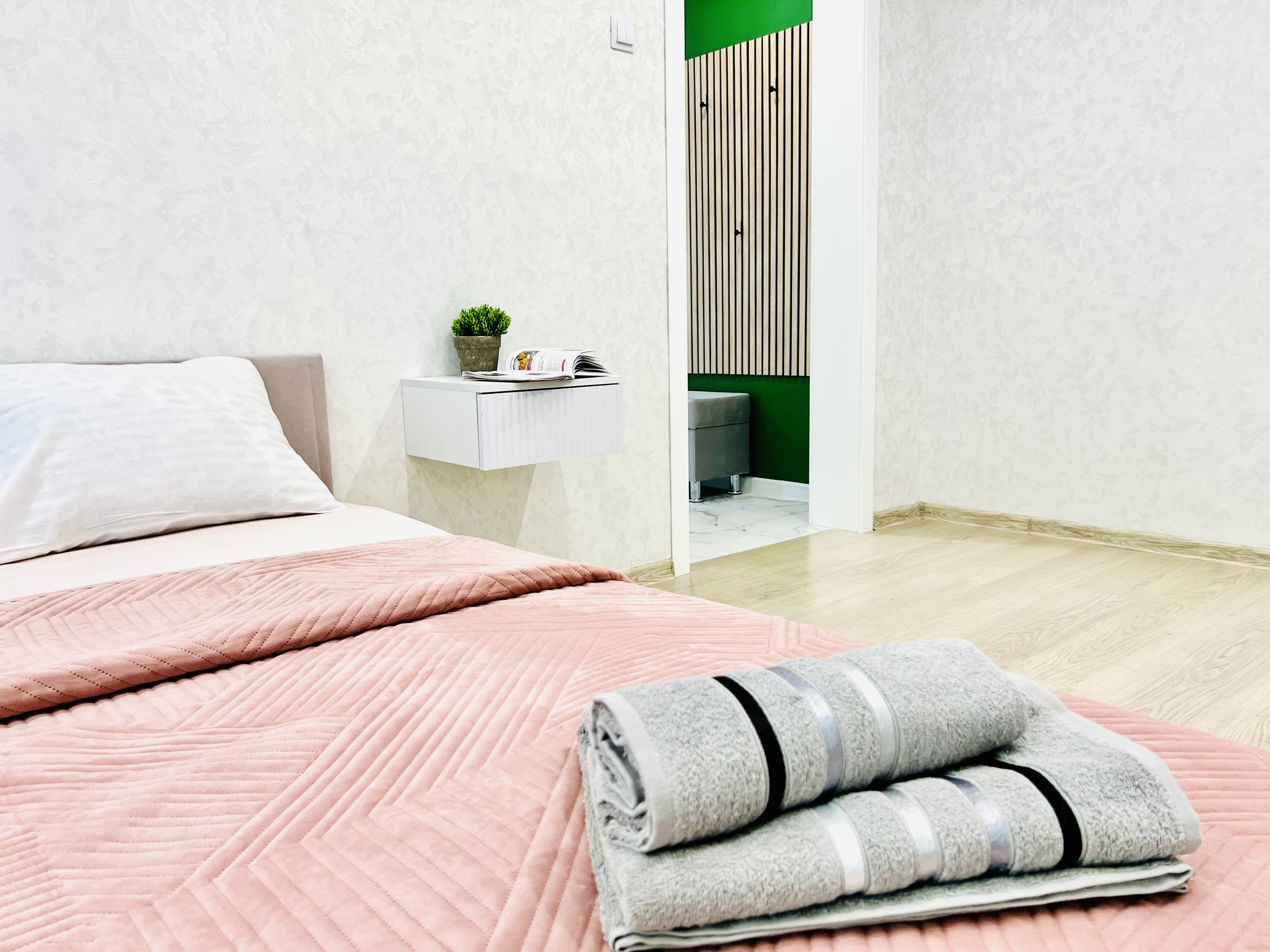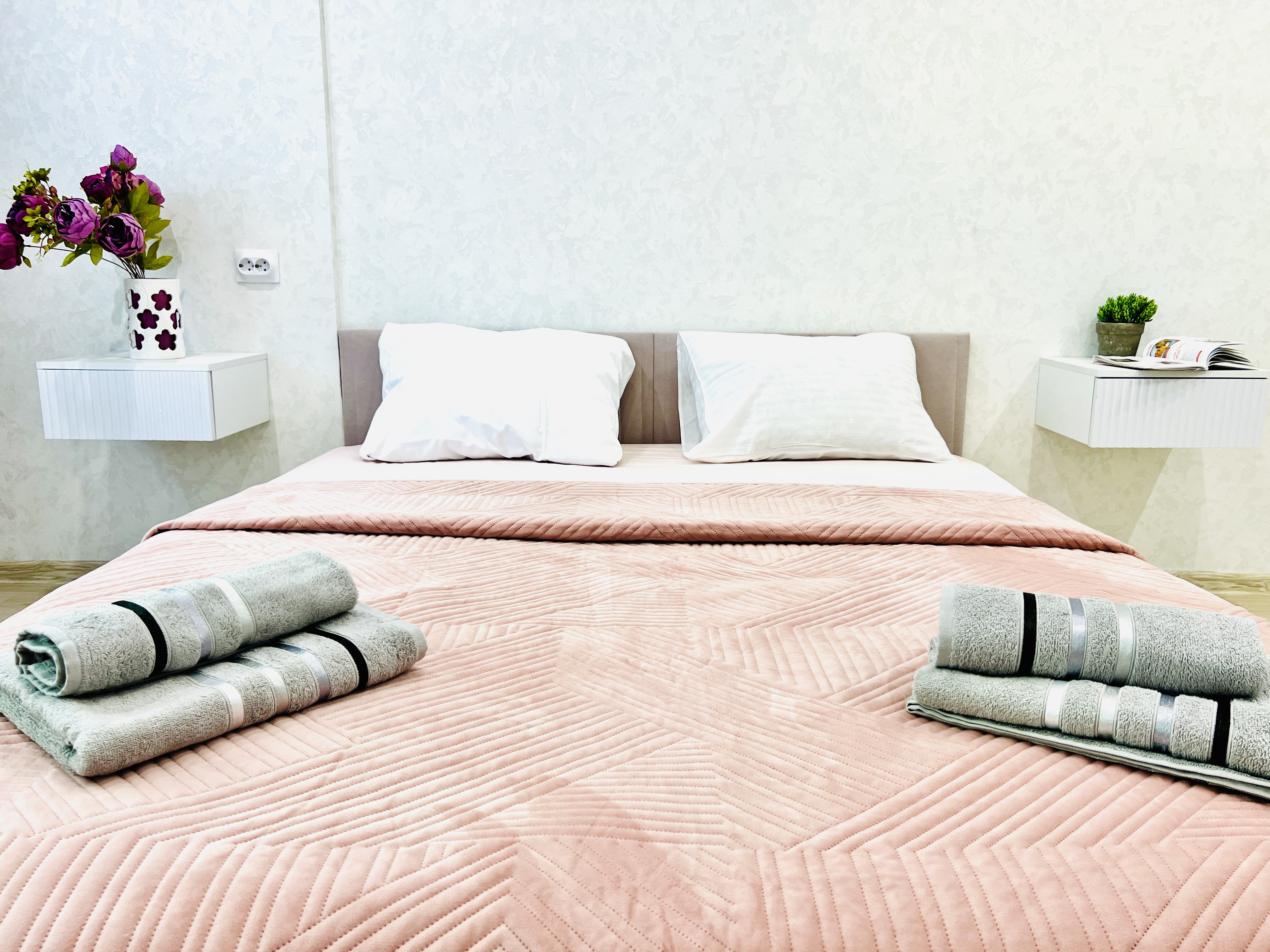 Единый стандарт качества: белоснежное постельное белье из прачечной. Влажная уборка после каждого выезда. Наличие необходимых в быту вещей: личные средства гигиены, посуда, техника.Современные апартаменты сочетает в себе стиль и функциональность, создавая атмосферу, где каждый гость сможет расслабиться и насладиться временем вдали от дома.