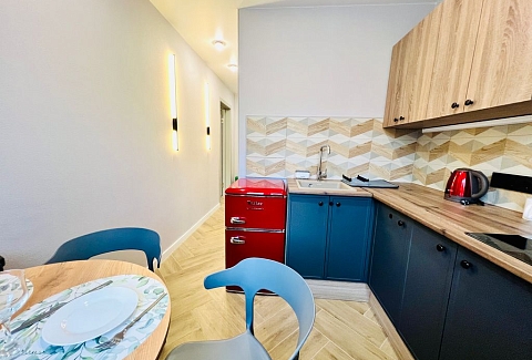 Апартаменты с современным дизайнерскими новым ремонтом рядом с самыми популярными достопримечательностями Калининграда: островом Канта, «Рыбной деревне», Синагоге, набережной реки Преголи. Рядом с апартаментами открываются самые красивые виды, сеть кафе/ресторанов, музеи, центр информационного туризма, Кафедральный собор, пристань речных трамваев, в 15 минутах ходьбы Южный вокзал, откуда на электричке вы легко доберетесь до популярного курорта Зеленоградска или Светлогорска. В Апартаментах найдется все необходимое для проживания и приготовления еды (посуда, микроволновая печь, стиральная машина, утюг, фен, свежее белье, полотенца).