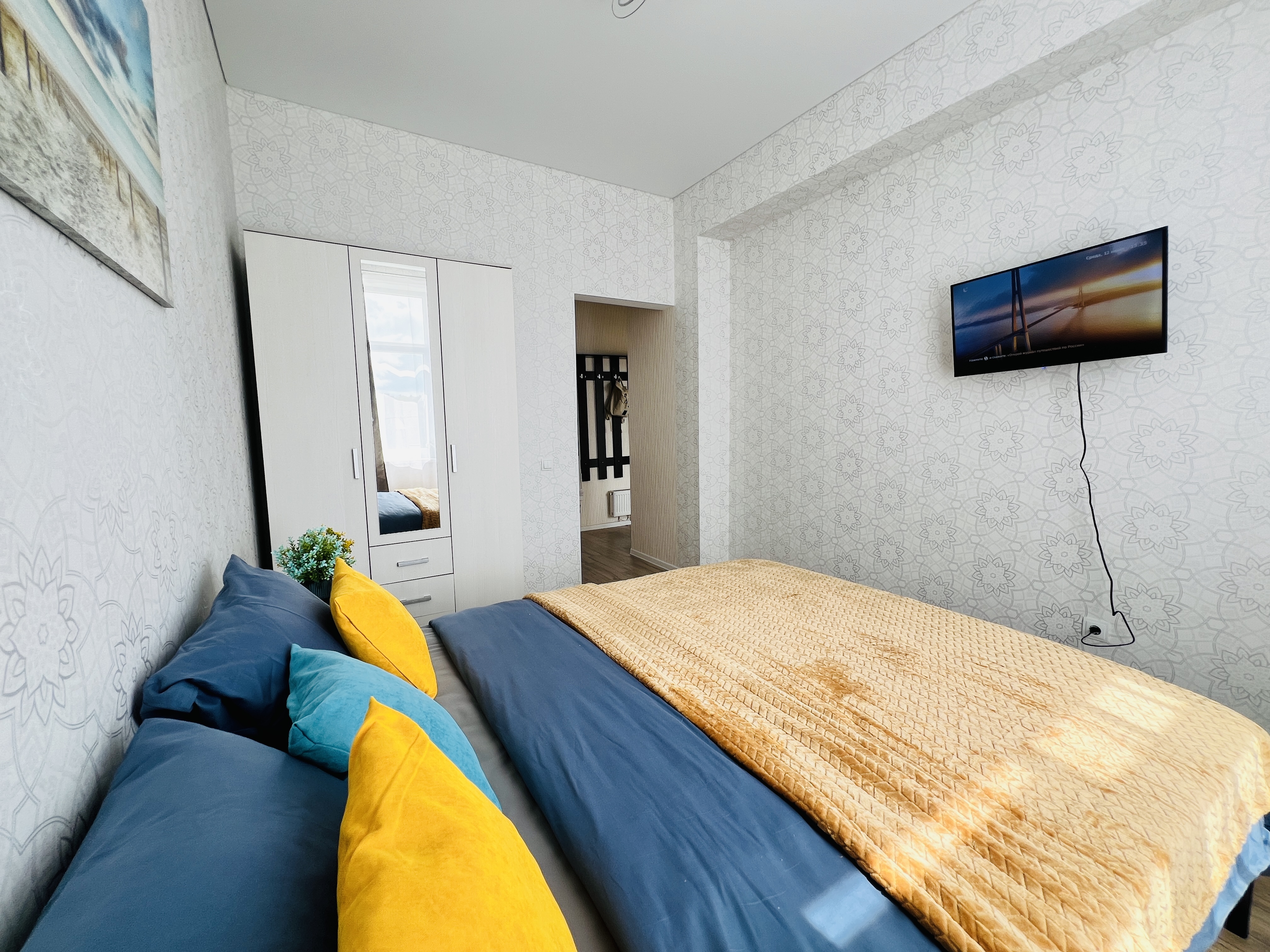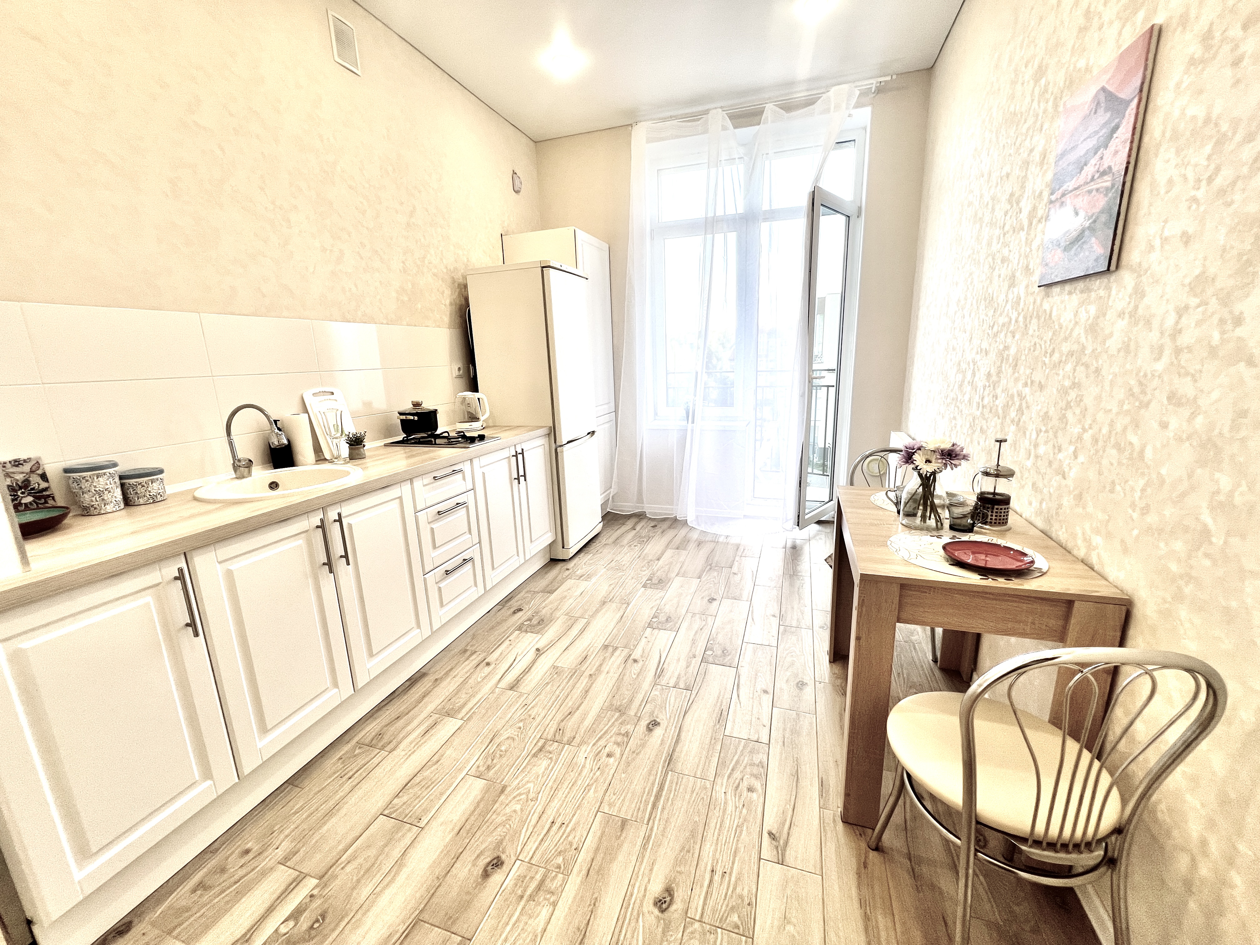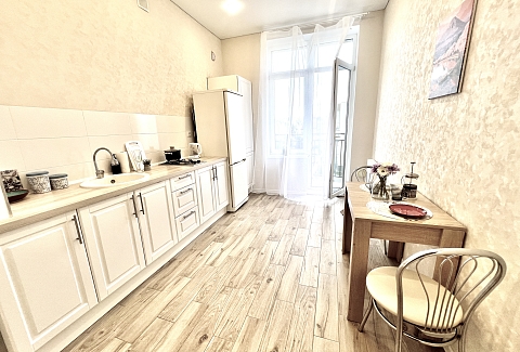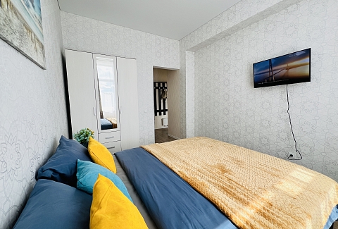 Железнодорожный вокзал «Северный», откуда можно доехать до Балтийского побережья, – в 20 минутах езды, а до аэропорта Храброво – полчаса пути на авто.Многоэтажное здание, в котором разместились апартаменты, возвышается в спальном районе на Стрелецкой улице. В распоряжении гостей однокомнатный 2-местный номер со современным интерьером и панорамным балконом. Апартаменты оснащены кухней с электроплитой, электрочайником, санузлом с душевой кабиной. Среди прочих услуг –стиральная машина, кондиционер, телевизор-ЖК и высокоскоростной интернет. Автомобиль можно оставить на охраняемой открытой парковке.