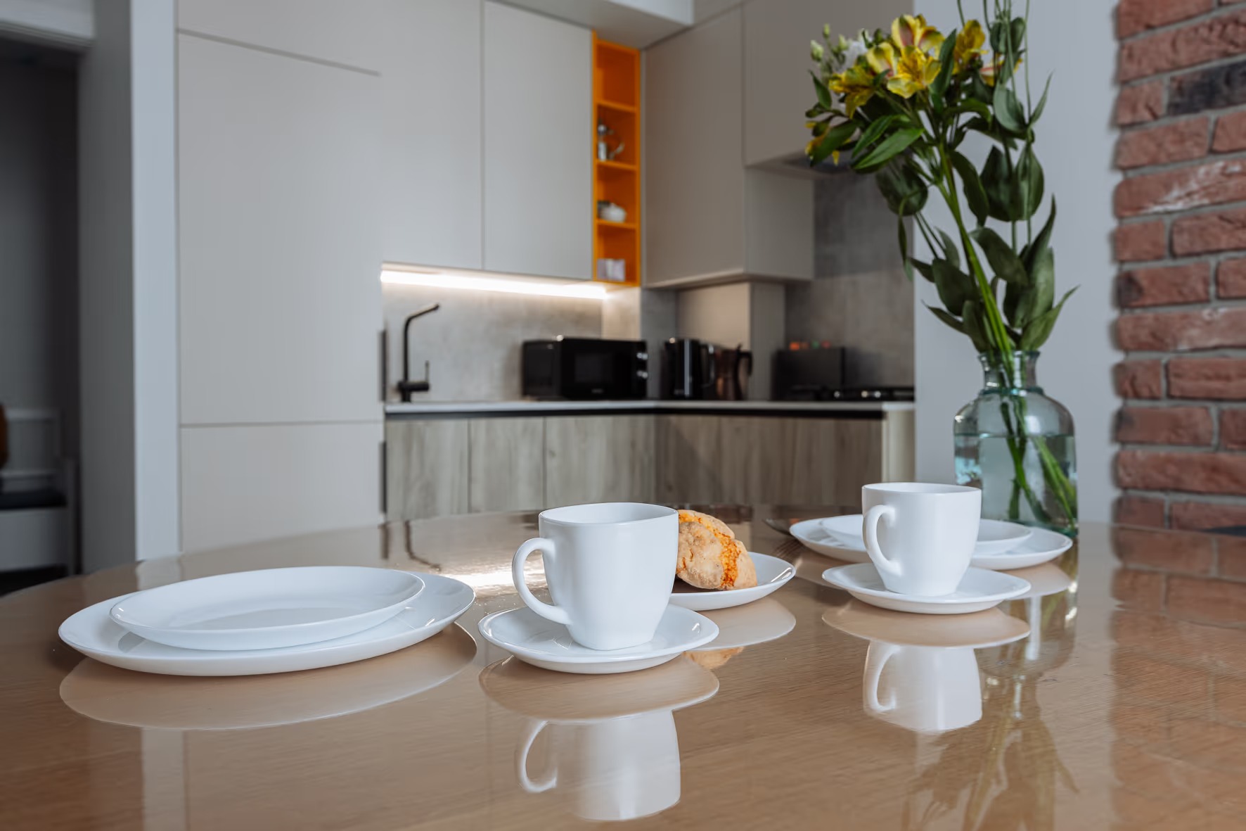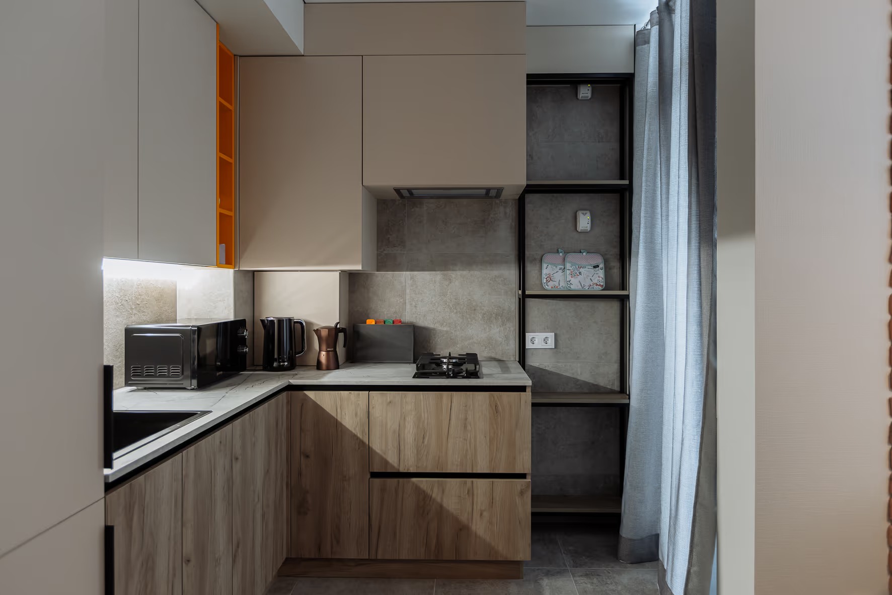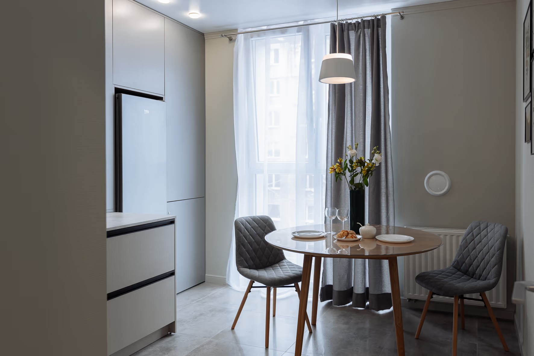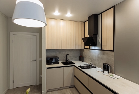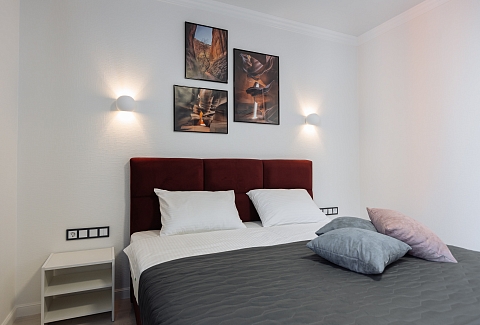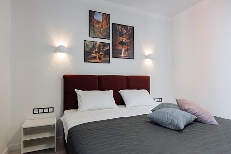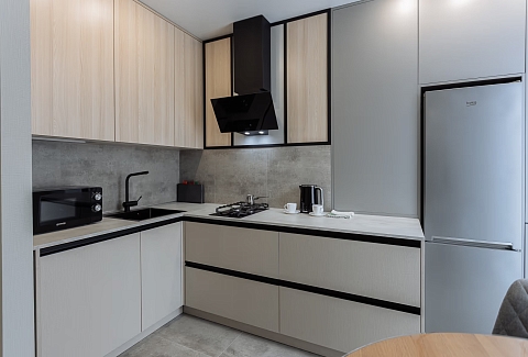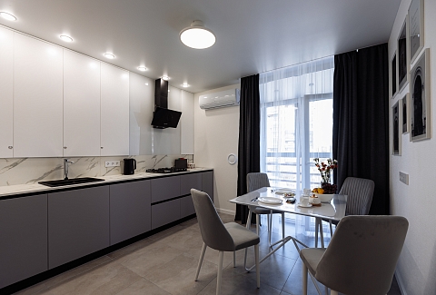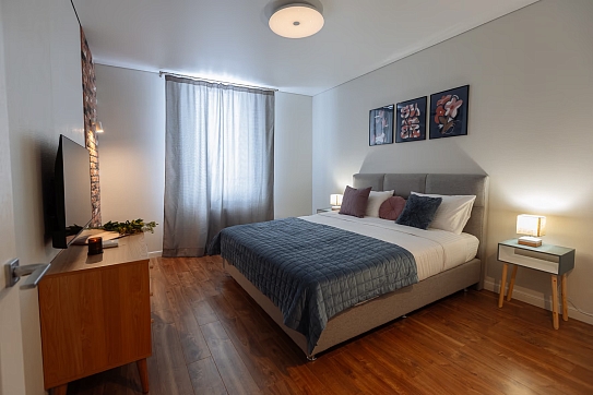 В 10 минутах езды – туристический центр и основные достопримечательности: Юбилейный мост, Рыбная деревня, Остров Канта, Кафедральный собор, парк Скульптуры. Многоэтажный жилой дом, в котором разместились апартаменты, возвышается на улице 9 Апреля. В распоряжении гостей одно- и двухкомнатные 2-местные номера с уютной террасой и современным интерьером. Среди удобств – кухонный уголок с газовой плитой, электрочайником, микроволновой печью и холодильником, стиральная машина, кондиционер, телевизор ЖК и высокоскоростной интернет, в санузле – душевая кабина и косметические принадлежности.