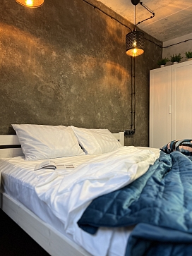 Обустроены 2 уютные спальни, каждая укомплектована большой кроватью на двоих. В гостиной установлен раскладывающийся диван, подходящий в качестве дополнительного спального места, имеется выход на балкон. В кухне предусмотрено все, что нужно для приготовления еды. Санузел раздельный, встроена ванна. В апартаментах доступен Wi-Fi.