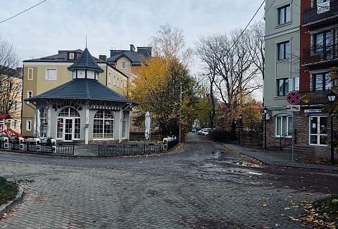 Поездом до ж/д вокзала Северный (г. Калининград), далее на трамвае №5 двигаться до остановки «Универсам Московский», далее пешком 200 м.