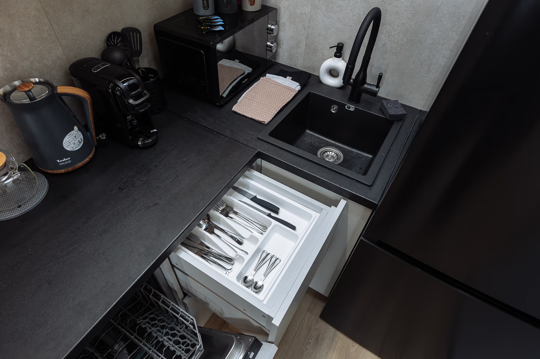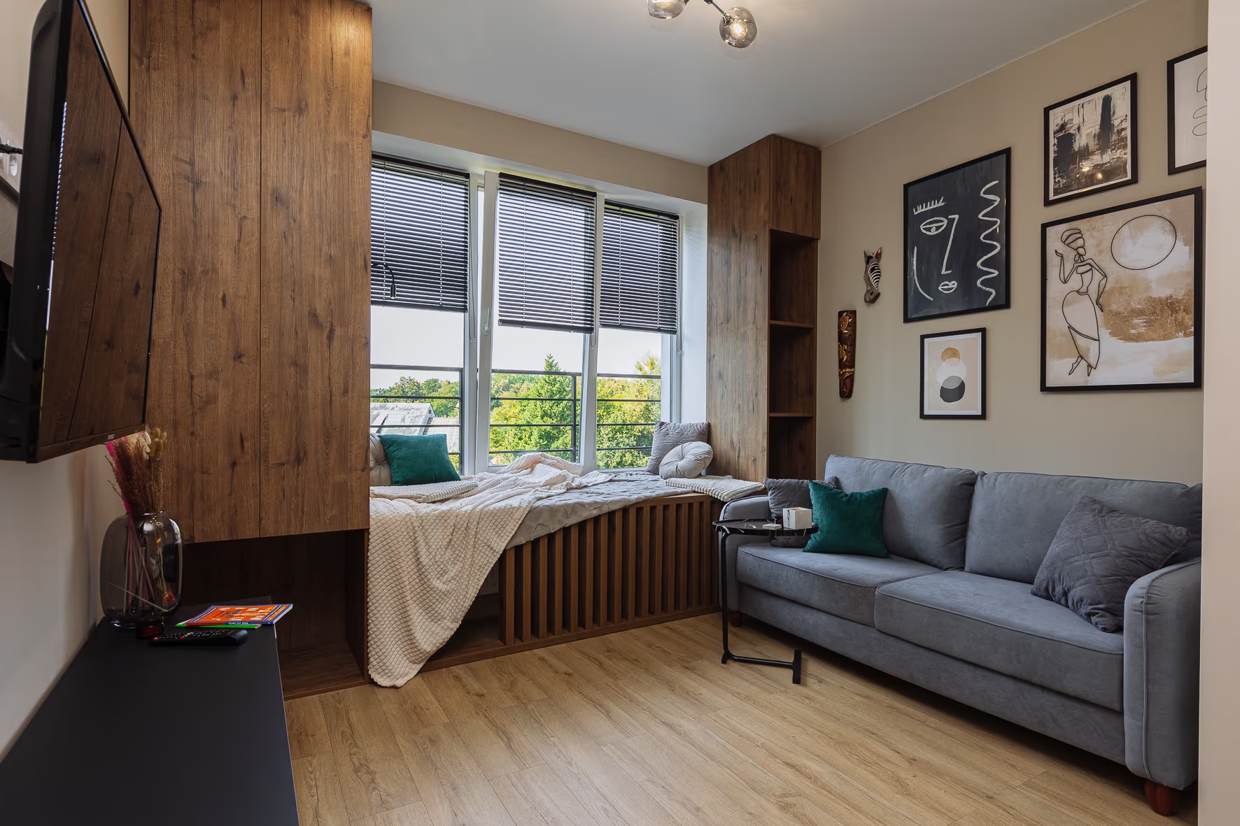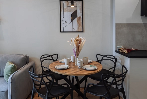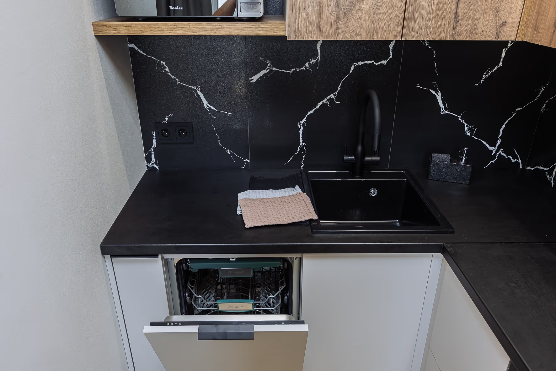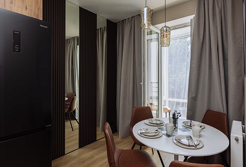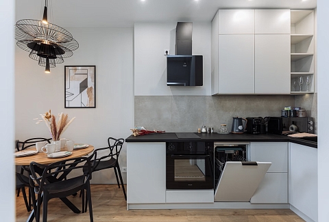 Аэропорт Храброво находится на расстоянии 22 километров, а железнодорожный вокзал Калининград-Северный — в 3,5 километрах от апартаментов.Гостям предлагаются уютные апартаменты с приятным цветовым решением. В них располагается двуспальная кровать, телевизионная тумба, просторный шкаф, диван, а также собственная кухня и ванная комната. Для обеспечения комфорта гостей предусмотрены постельное белье, полотенца, фен, телевизор, утюг, пылесос, тапочки, гигиенические принадлежности, кондиционер и Wi-Fi. Также есть возможность размещения с домашними животными.В просторной кухне гости могут готовить блюда самостоятельно, так как имеется все необходимое для этого: электроплита, духовой шкаф, микроволновая печь, холодильник, электрический чайник, посудомоечная машина, кухонные инструменты, столовые приборы и комплект посуды. Предусмотрена удобная обеденная зона.