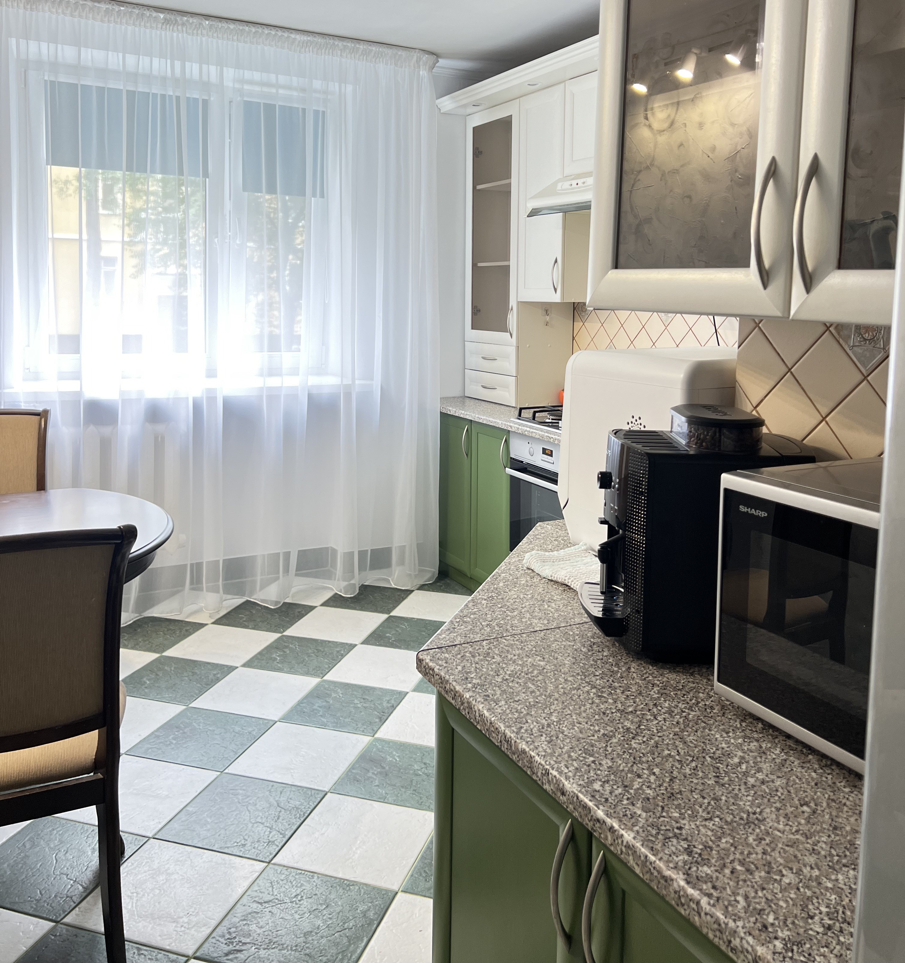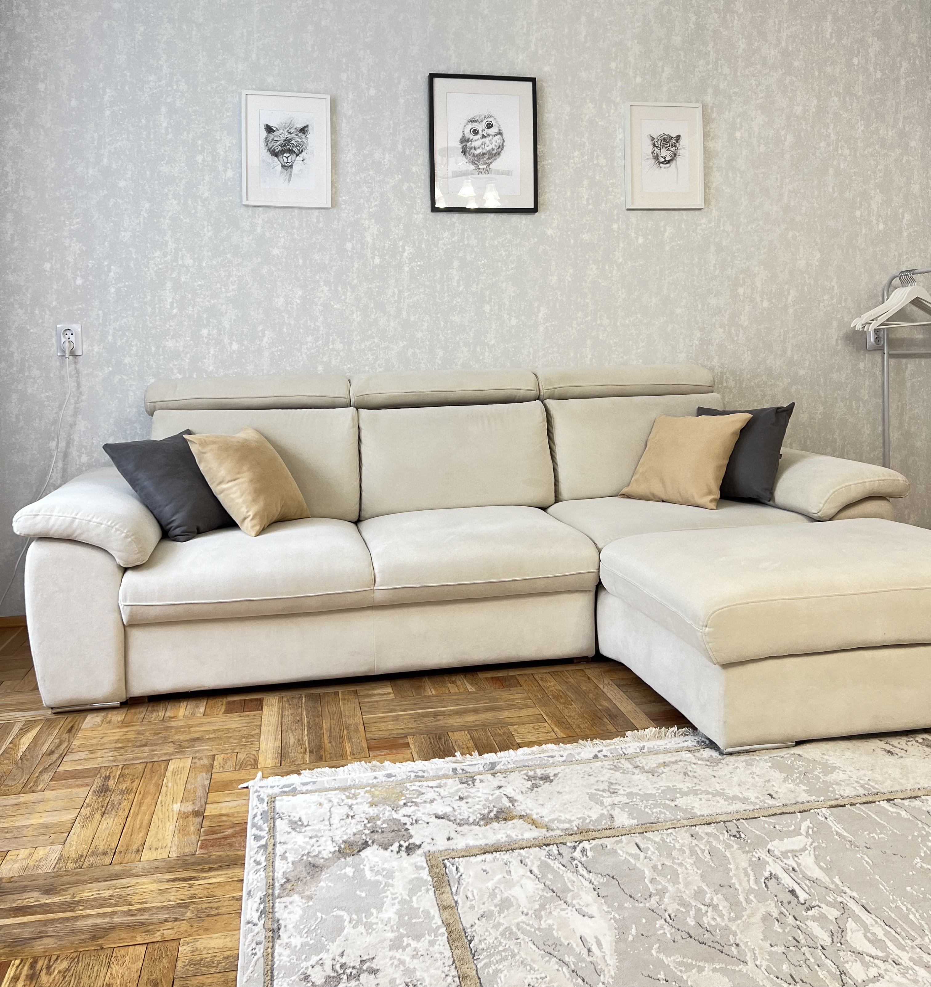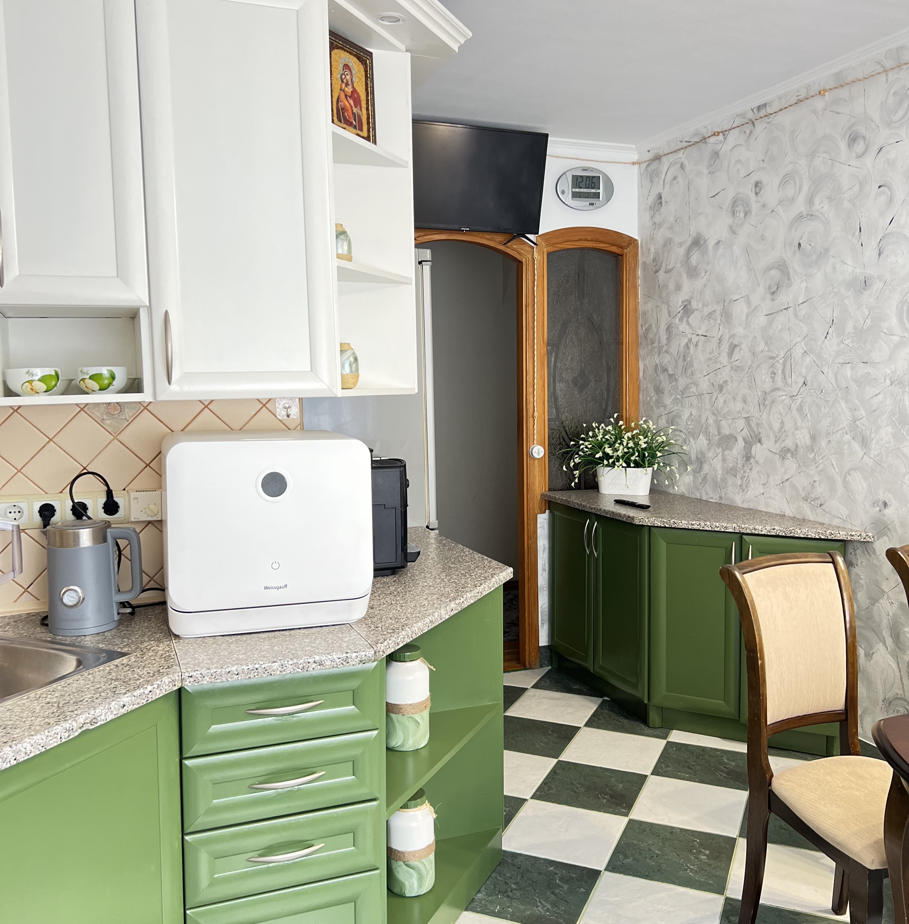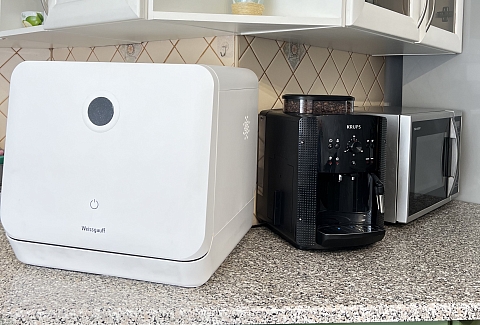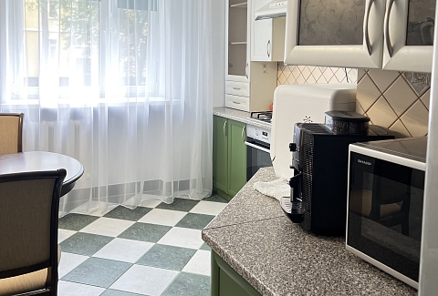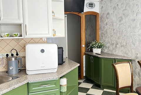 В наличии 2 изолированные спальни, каждая располагает кроватью на двоих. В качестве дополнительного спального места подходит большой диван в гостиной. В компактной, но функциональной кухне предусмотрено все необходимое для приготовления блюд, установлены посудомоечная и кофемашина. Совмещенный санузел укомплектован ванной, стиральной машиной. В апартаментах доступно подключение к Wi-Fi. По запросу предоставляются детские принадлежности: манеж, стульчик для кормления, коляска-трость.