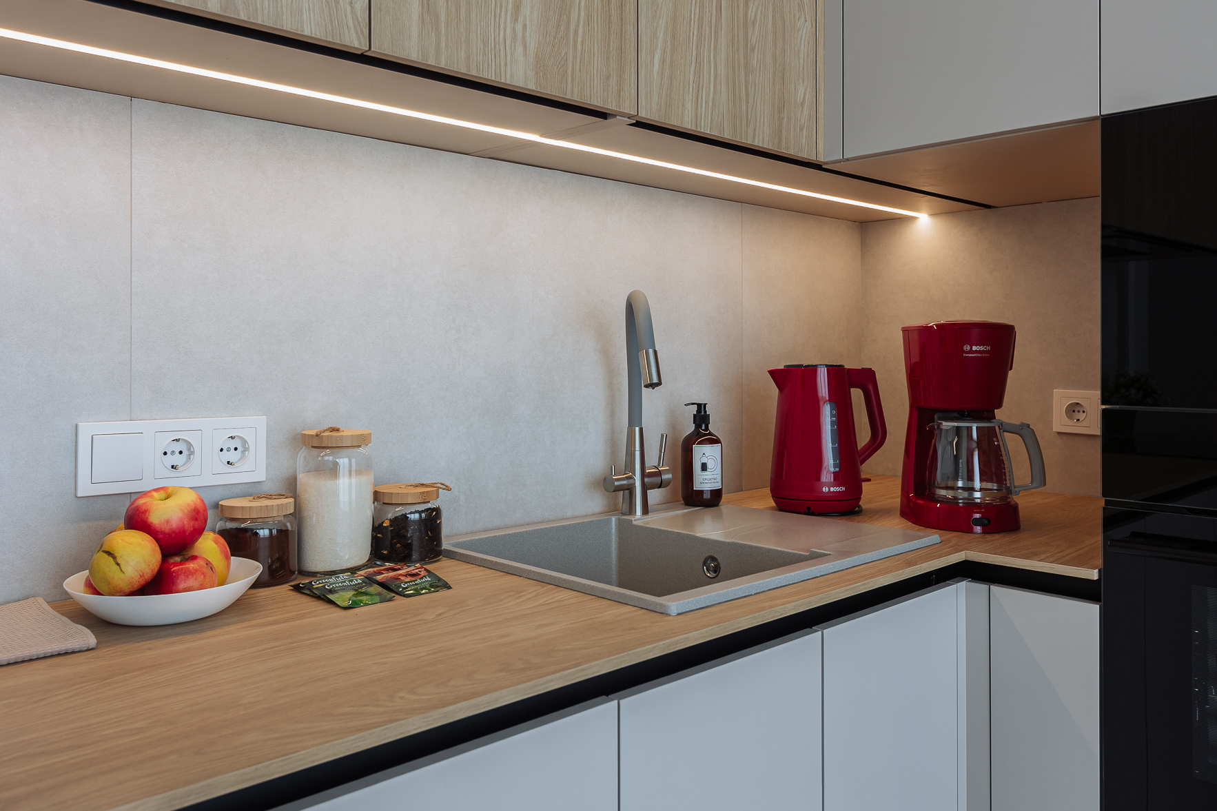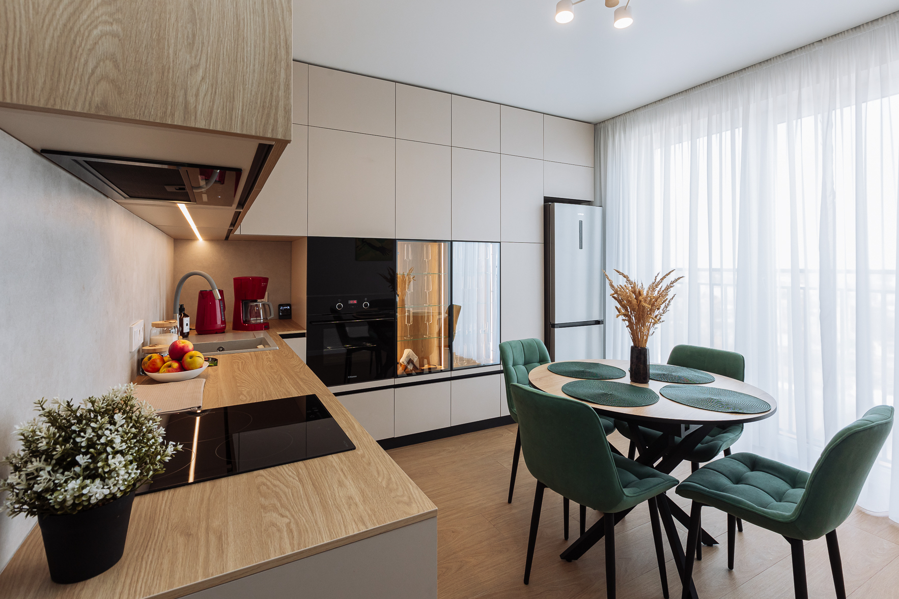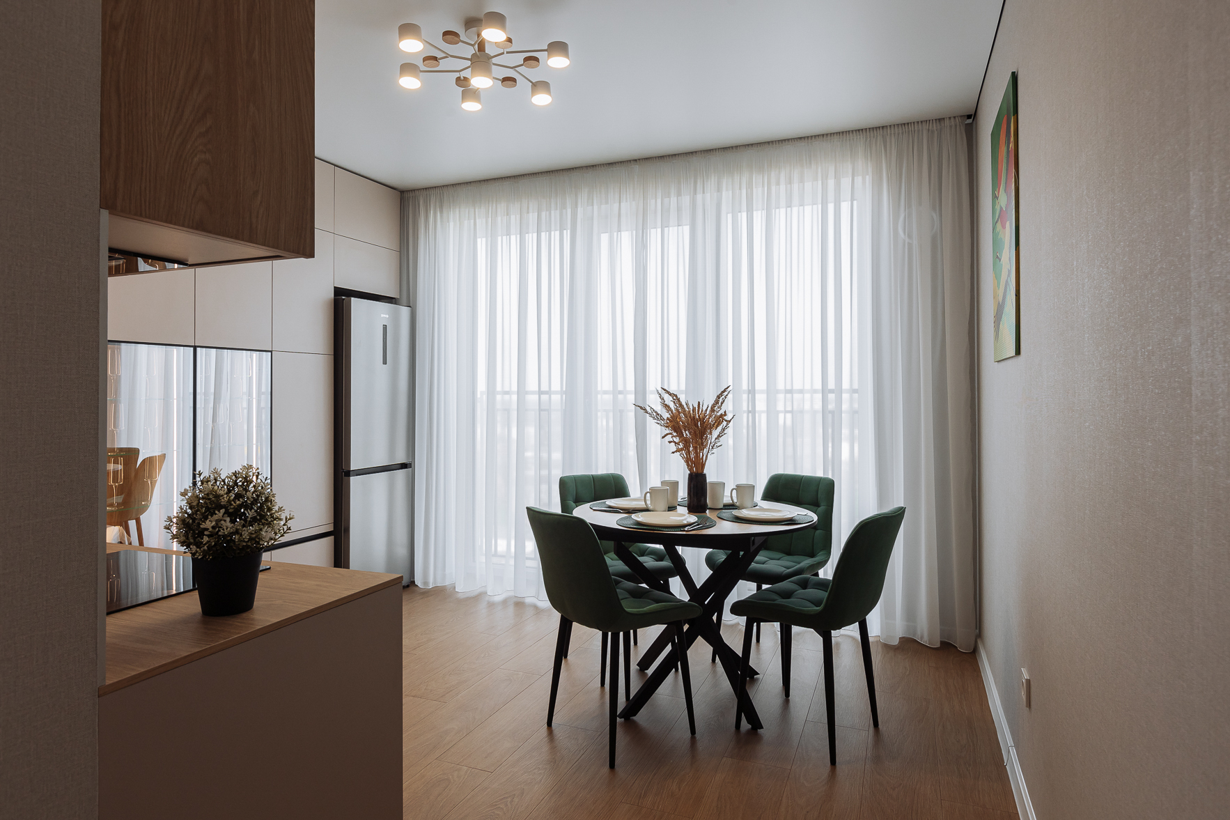 Прямо в доме работают кафе, пункты выдачи заказов и банк. Рядом находятся модный гастрорынок, кинотеатр, фитнес-центр, МФЦ и торговые центры. До центра города на машине около 10–15 минут, до аэропорта — примерно 20 минут. Для гостей на автомобиле предусмотрена парковка. Пространство рассчитано на комфортное размещение трёх гостей: здесь есть большая кровать и удобный раскладной диван. В наличии кондиционер, быстрый Wi-Fi и Smart TV. В ванной комнате — ванна, стиральная машина, фен, набор мягких полотенец, белые халаты и гигиенические принадлежности. Кухня полностью оборудована техникой и посудой, включая посудомоечную машину. Приятные мелочи: кофемашина, чай, кофе, базовые продукты и бутилированная вода. Из панорамных окон на 16 этаже открывается спокойный вид без городского шума. Для семей с детьми по запросу предоставляются кроватка, стульчик и коляска. Гостям доступна закрытая территория комплекса с дворами без машин и зонами отдыха. В самом доме работают кафе и сервисные службы. Также предусмотрены бесконтактное заселение и возможность размещения с животными по предварительному согласованию. Редкое сочетание городского комфорта и лёгкого доступа к морскому отдыху без лишнего стресса. Здесь царит чистая, спокойная и продуманная атмосфера, которая идеально подойдёт парам, семьям с детьми и деловым путешественникам. Для командированных гостей предоставляются все необходимые документы и чеки, а быстрый заезд без ожидания делает этот вариант особенно удобным для тех, кто ценит своё время.