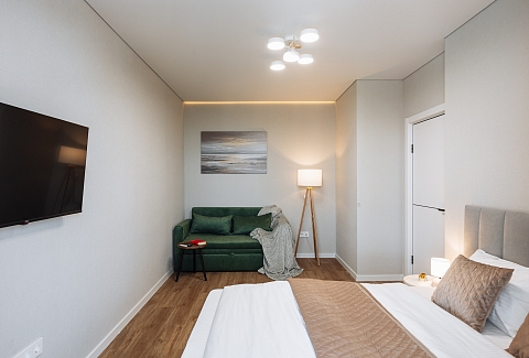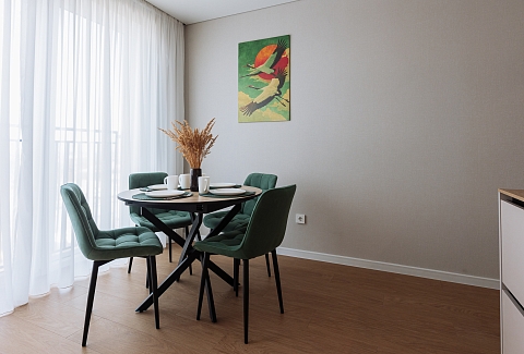 Эти современные апартаменты расположены в новом жилом комплексе на улице Генерала Челнокова, в районе Сельма. Из главных преимуществ — удобный выезд к морю и спокойная атмосфера без туристической толпы. В шаговой доступности — станция электрички, с которой легко добраться до Зеленоградска и Светлогорска без пробок.