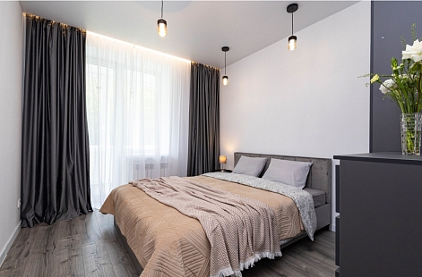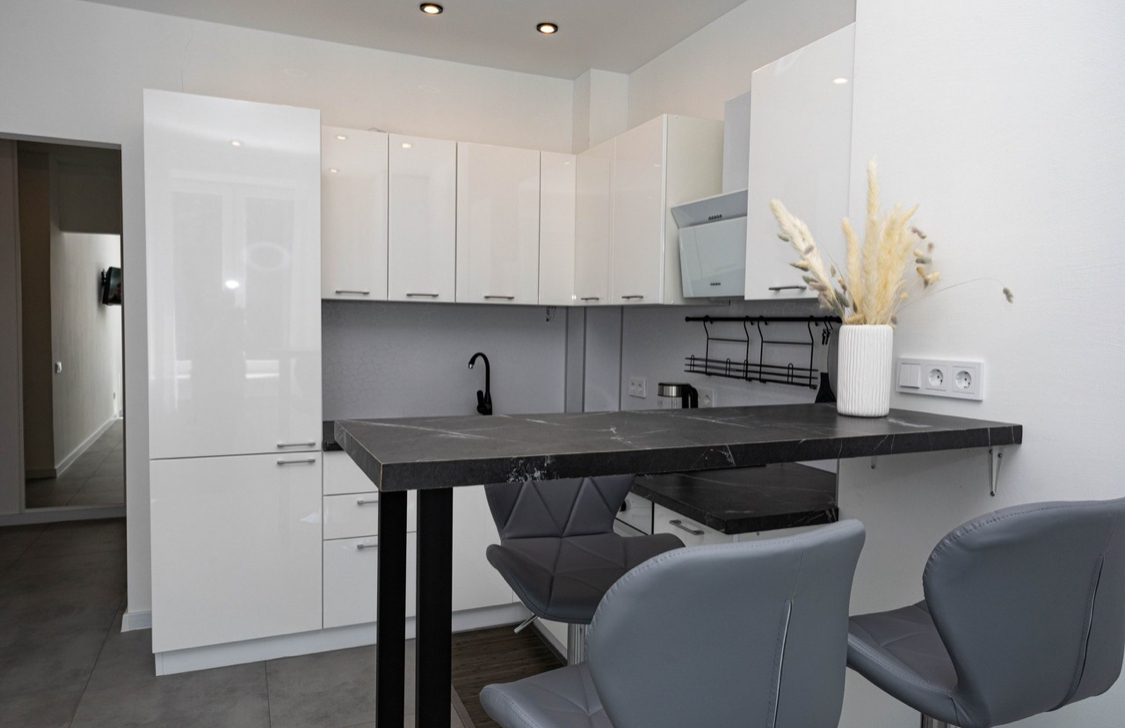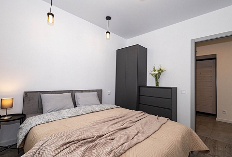В основе философии этого пространства лежит бескомпромиссный подход к комфорту, где каждая деталь продумана для беззаботного отдыха. Здесь царит абсолютная чистота и свежесть: после каждого гостя проводится тщательная влажная уборка, а белоснежное постельное белье проходит профессиональную обработку в прачечной, гарантируя идеальную гигиену. В распоряжении гостей — два комплекта мягких полотенец, одноразовые тапочки и все необходимые средства личной гигиены, чтобы чувствовать себя как дома с первой минуты.Апартаменты встречают гостей продуманным интерьером, где современный стиль гармонично сочетается с функциональностью.