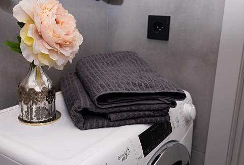 В номере: зеркало, кровать двуспальная, стол, стулья, шкаф, микроволновая печь, набор посуды, посудомоечная машина, стиральная машина, телевизор ЖК, утюг, холодильник, чайный набор посуды, электрочайник