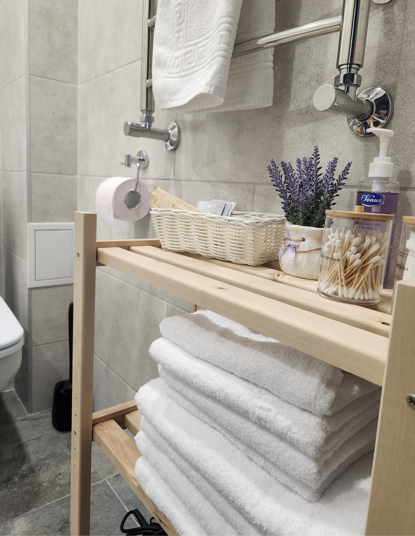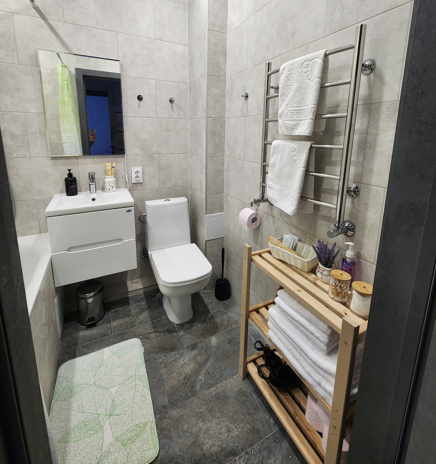 Санузел: с душем, туалетные принадлежности, фен