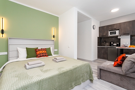 Студия WestRooms в центре у Северного вокзала(1) - дистанционное заселение - 24х7. ВМЕСТИМОСТЬ -3 ГОСТЯ.КРУГЛОСУТОЧНЫЙ БЕСКОНТАКТНЫЙ ЗАЕЗД! ДОСТОПРИМЕЧАТЕЛЬНОСТИ РЯДОМ:Площадь Победы - 15 минут пешком, Зоопарк - 15 минут пешком, Музей мирового океана - 30 минут пешком, 2,5км, Остров Канта - 40 минут пешком, 3 км, Музей Янтаря - 30 минут, 2,5 км.ЧТО РЯДОМ:Северный вокзал - 10 минут пешком,- ТРЦ Европа, Синема парк - 15 минут пешком, 1,5км,- ТРЦ Плаза / карофильм Плаза - 20 минут пешком, 3км- Супермаркет Спар - 6 минут, 500 м- Супермаркет Евроспар - 10 минут пешком, 1кмО СТУДИИ:- Двуспальная кровать 160 см ширина, раскладное кресло 80см ширина- Стильный свежий ремонт- ТВ с плоским экраном- Розетка у кровати для зарядки телефона- Свежее постельное белье- Современная бытовая техника: СВЧ-печь, мини-холодильник, электрочайник, электр.варочная панель 2 комфорки, утюг, гладильная доска и сушилка, стиральная машина, фен- безлимитный бесплатный Wi-Fi- посуда для приготовления и приема пищи, а также кухонные принадлежности- ванная комната с душевой и горячей водой, водонагревательНАШИ ПРЕИМУЩЕСТВА:- Достопримечательности города в пешей доступности.- Гарантия того, что вас не побеспокоят - возможность закрыться изнутри.- Тщательная уборка после каждого выезда с применением дезинфицирующих средств.Бонус для наших гостей - бесплатно кофе, чай, сахар, соль, а также гигиенические принадлежности, полотенца и тапочки!ИНФОРМАЦИЯ ДЛЯ БРОНИРОВАНИЯ:- ЗАЕЗД с 14:00 до 01:00, ВЫЕЗД до 11:00.- Отвечаем на звонки с 8:00 до 20:00.- Ранний заезд и поздний выезд предоставляются при наличии возможности за доплату.- Отчетные документы по запросу.- Не сдается под шумные вечеринки! Курение запрещено!- Проживание с животными не разрешено!Уютная студия на первом этаже ждёт гостей.