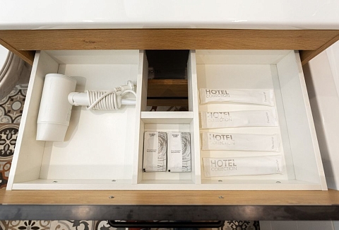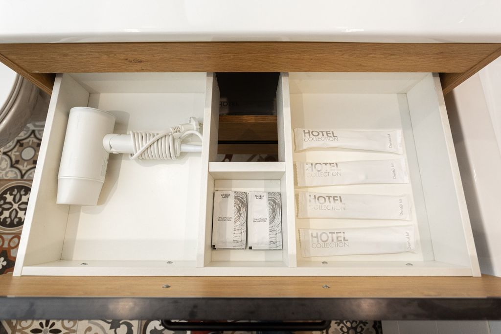 Санузел: с душем, туалетные принадлежности, фен
