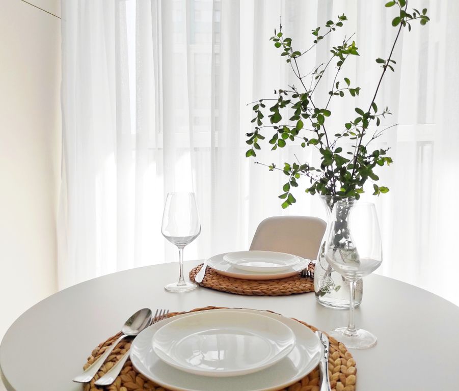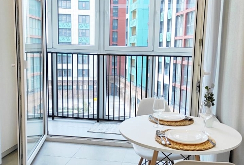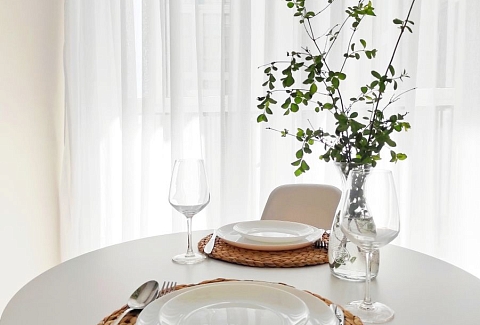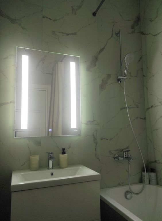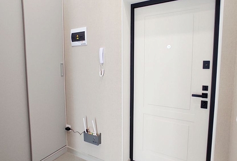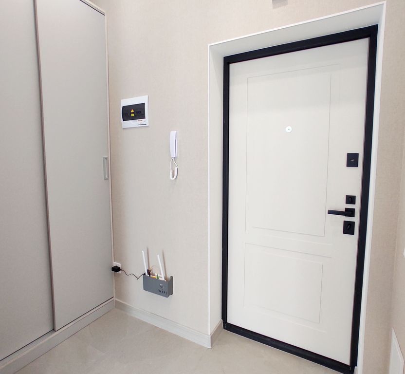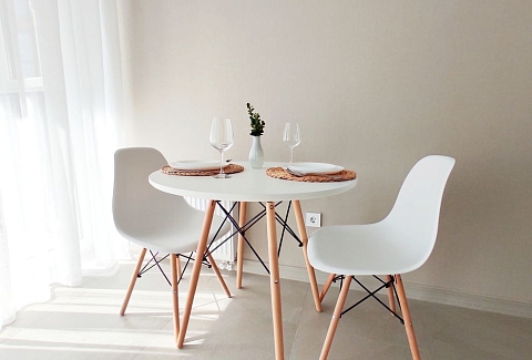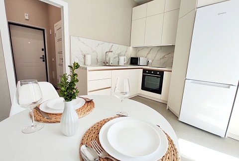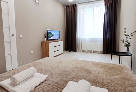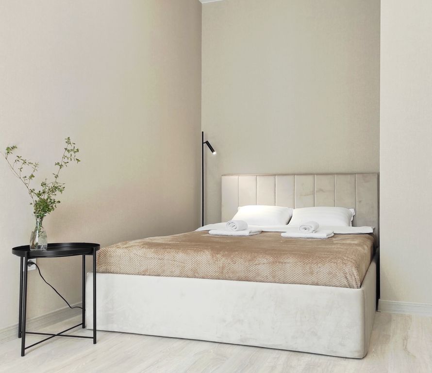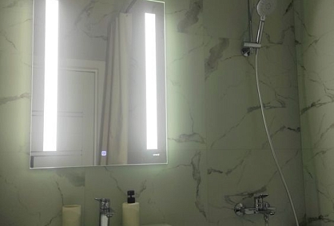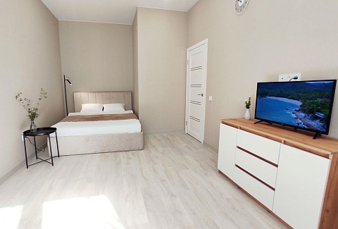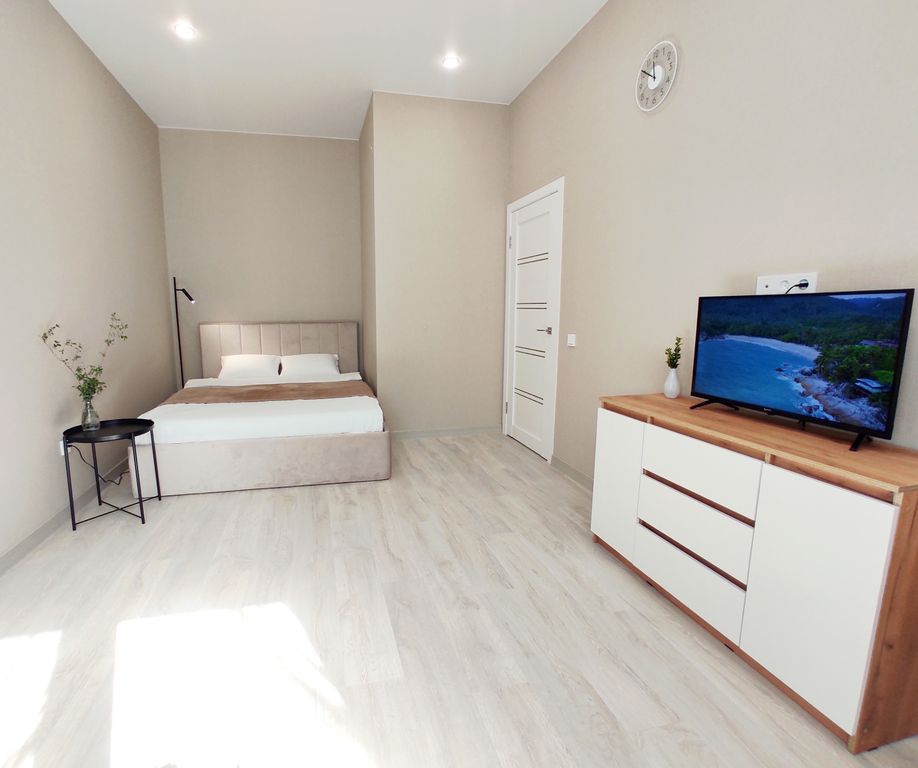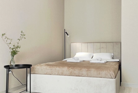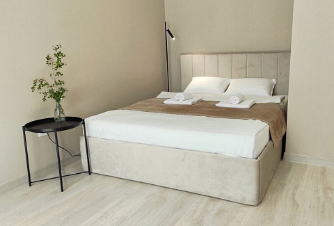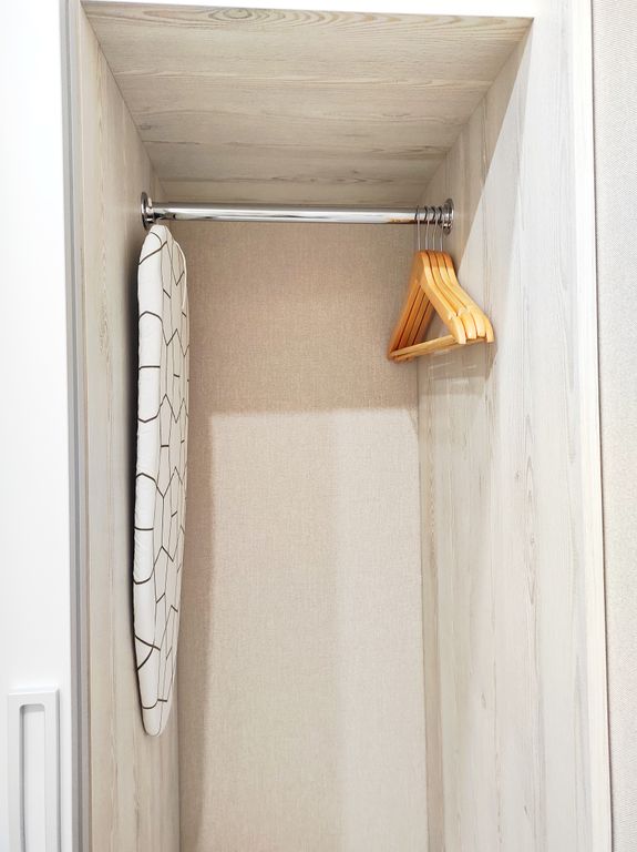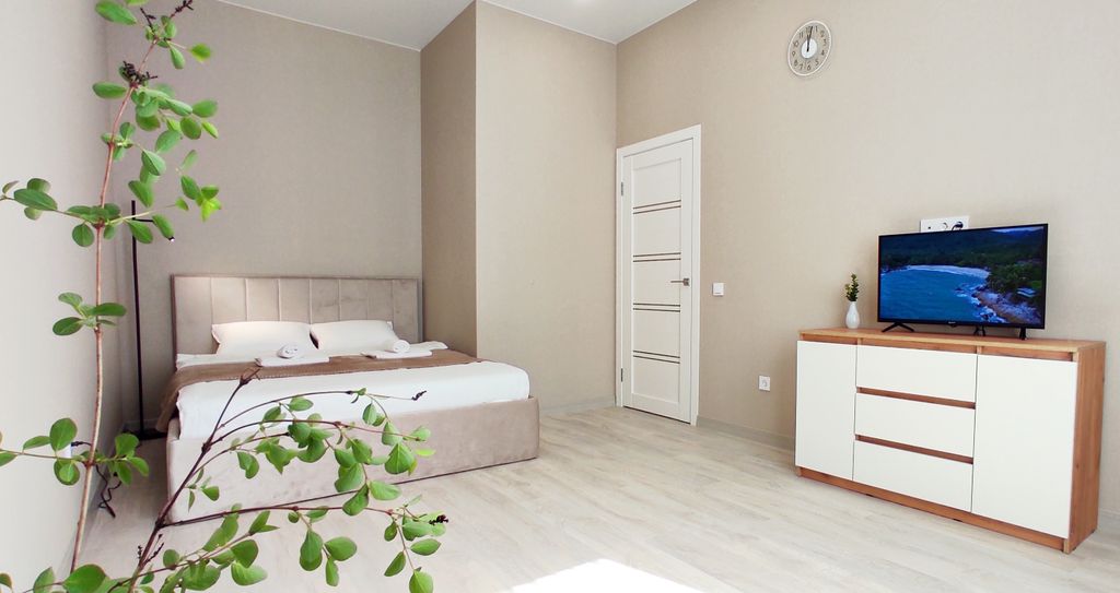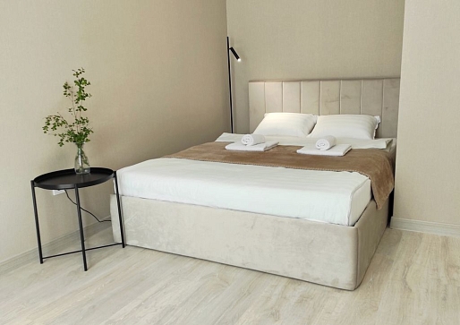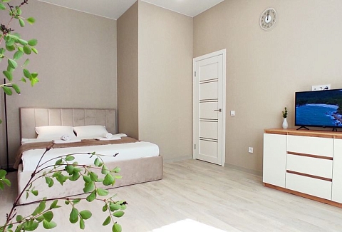 В номере: диван, зеркало, кровать двуспальная, стол, стулья, шкаф, гладильная доска, кондиционер, микроволновая печь, набор посуды, плита электрическая, стиральная машина, сушилка для белья, телевизор ЖК, утюг, холодильник, чайный набор посуды, электрочайник