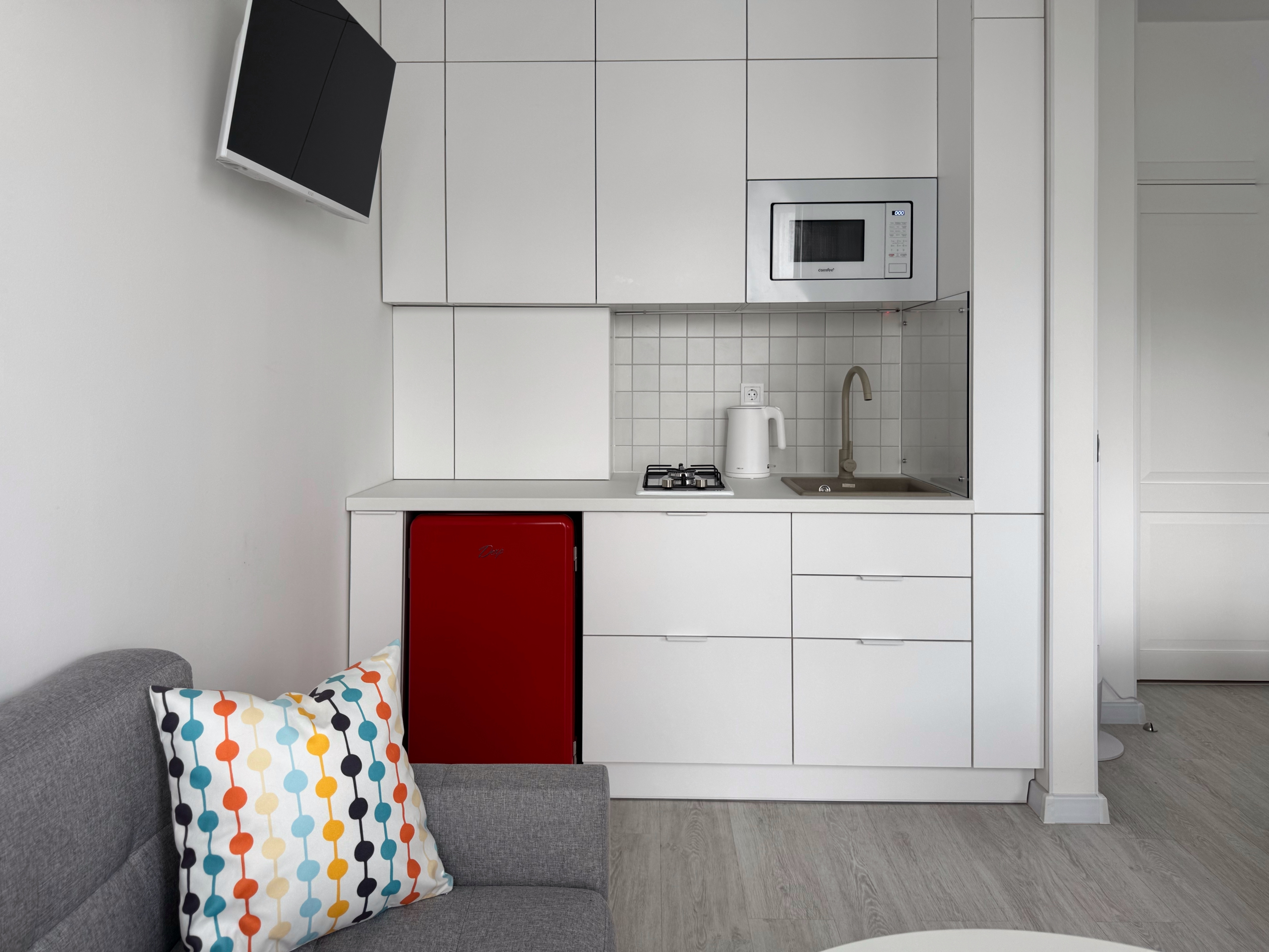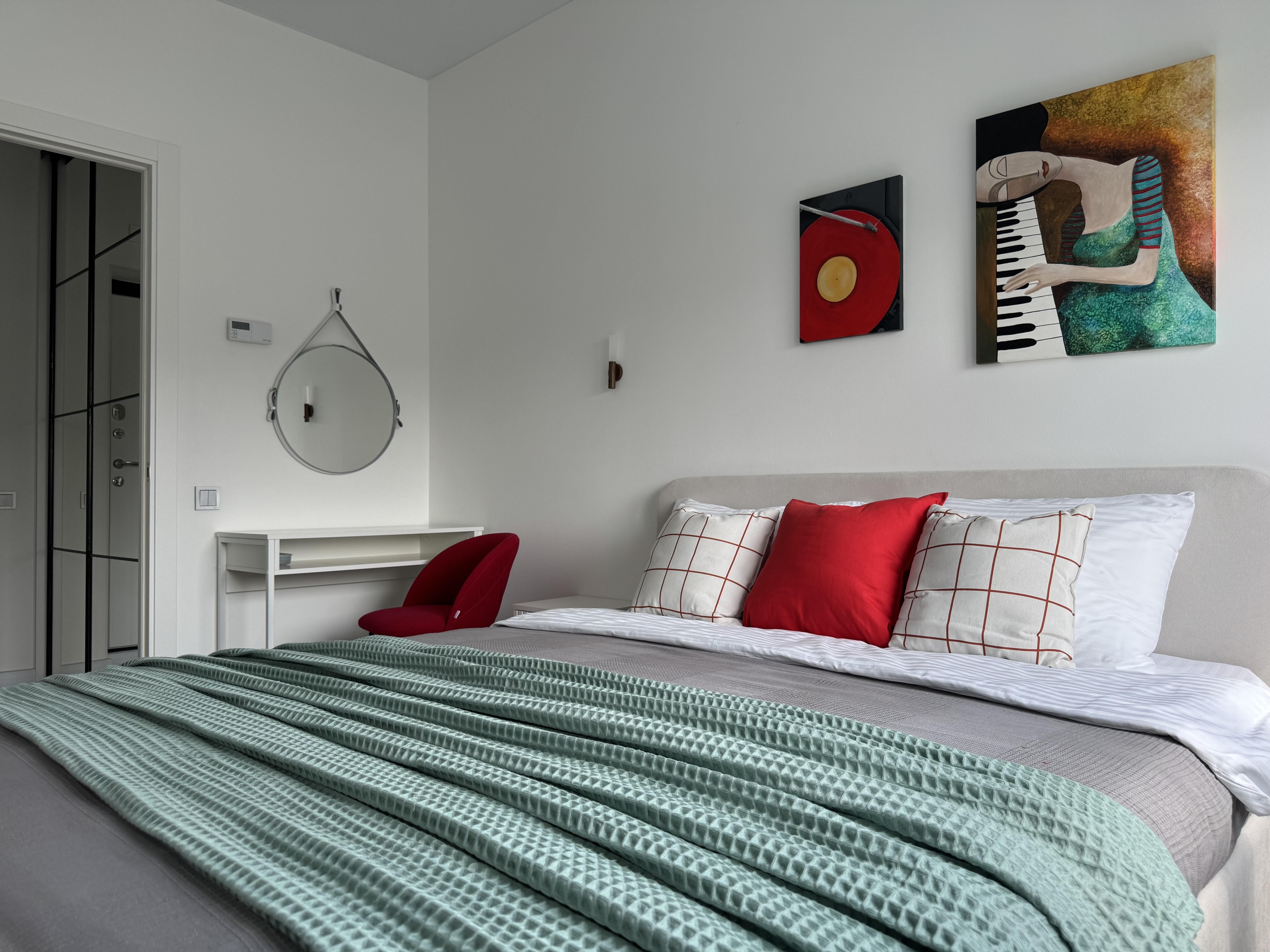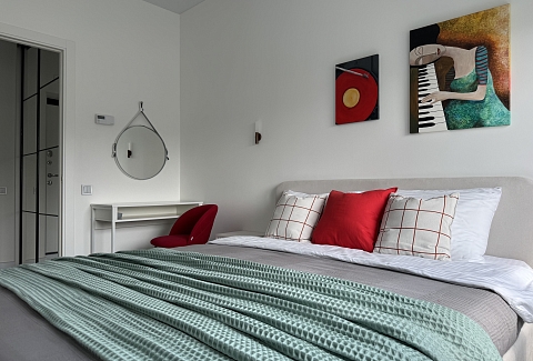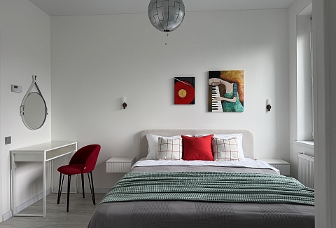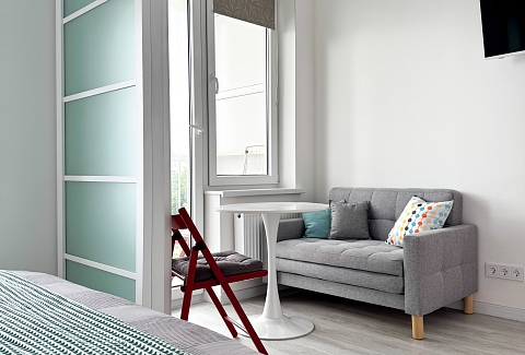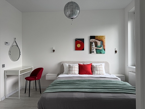 Апартаменты расположены в здании с лифтом, в районе с развитой инфраструктурой. В пешей доступности находятся магазины, остановки общественного транспорта и социальные объекты. Для гостей, путешествующих на автомобиле, предусмотрена удобная парковка.Внутреннее пространство организовано с учётом потребностей семей с детьми и тех, кто ценит функциональность.