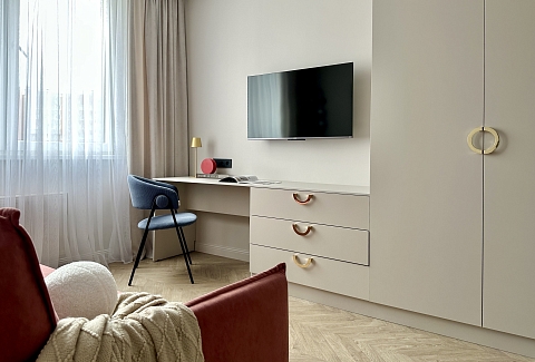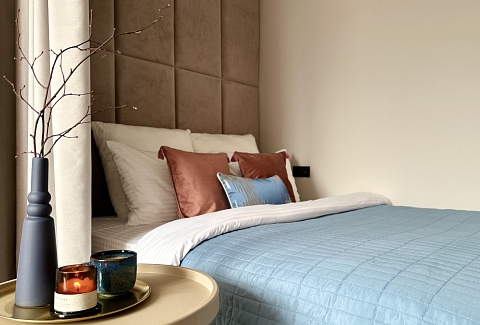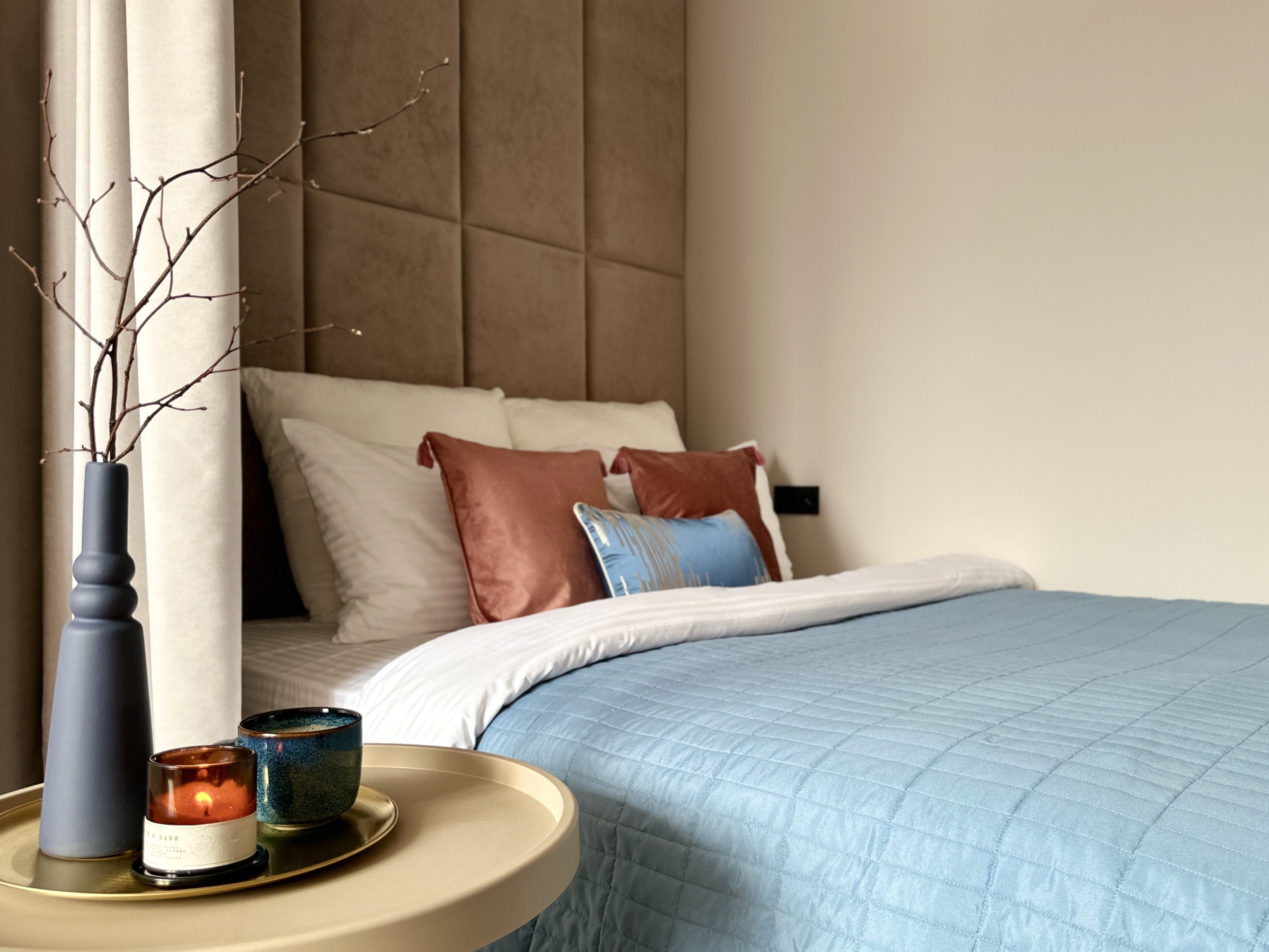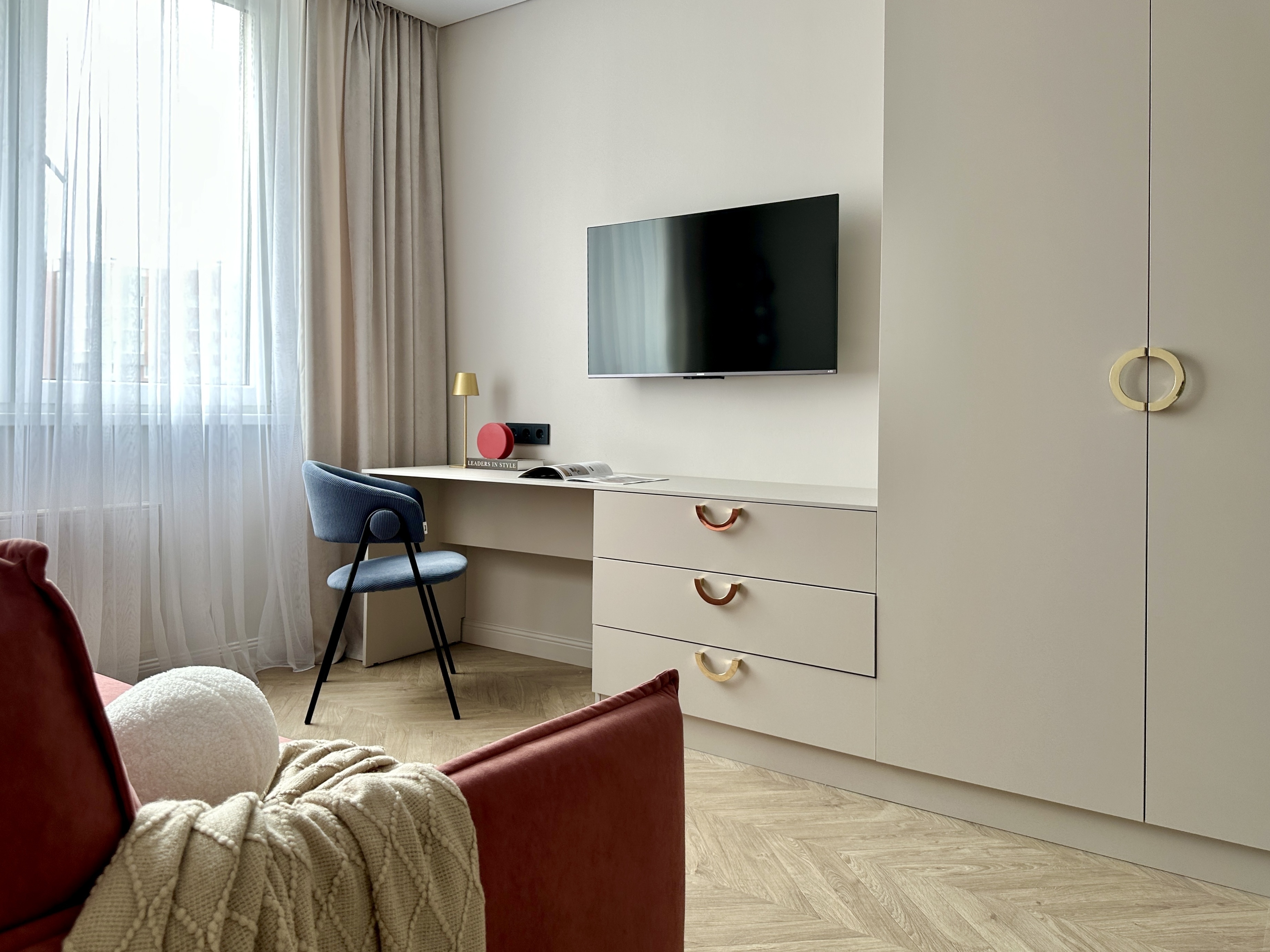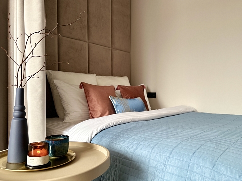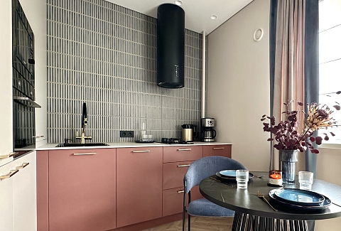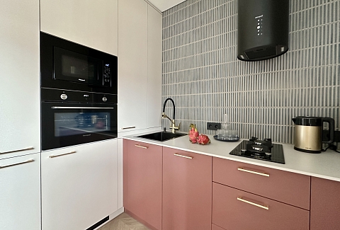 Рядом с домом есть магазины и объекты городской инфраструктуры, предусмотрена парковка для автомобилей.Внутреннее пространство оформлено в дизайнерском стиле и рассчитано на комфортное размещение до четырёх гостей. Для отдыха предусмотрены удобные спальные места с постельным бельём из страйп-сатина. Кухня оснащена кофеваркой с молотым кофе, фильтром для воды и всем необходимым для приготовления пищи. В ванной комнате гостей ждут белоснежные мягкие полотенца, средства гигиены (шампунь, гель для душа, кондиционер для волос), зубные щётки, ватные принадлежности, одноразовые тапочки и средство для стирки. В числе техники — телевизор, высокоскоростной Wi-Fi, стиральная и сушильная машины, что делает длительное пребывание особенно комфортным.Эти апартаменты станут идеальным выбором для тех, кто ценит продуманные детали и безупречный сервис. Здесь каждая мелочь направлена на то, чтобы отдых проходил без лишних забот: от качественного текстиля и уходовой косметики до возможности насладиться свежесваренным кофе по утрам. Удобное расположение позволяет легко исследовать город, а наполнение пространства дарит ощущение заботы и настоящего домашнего уюта.