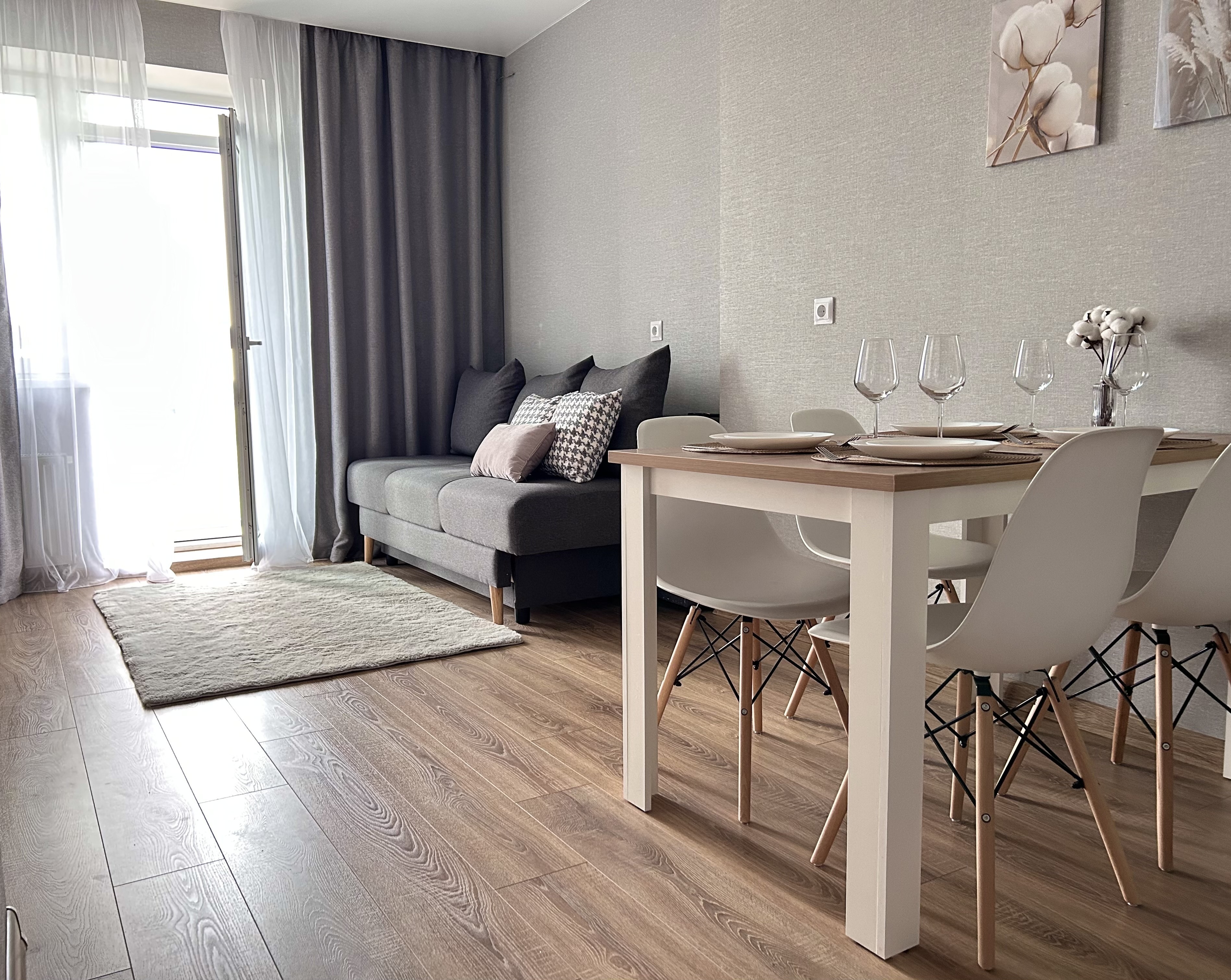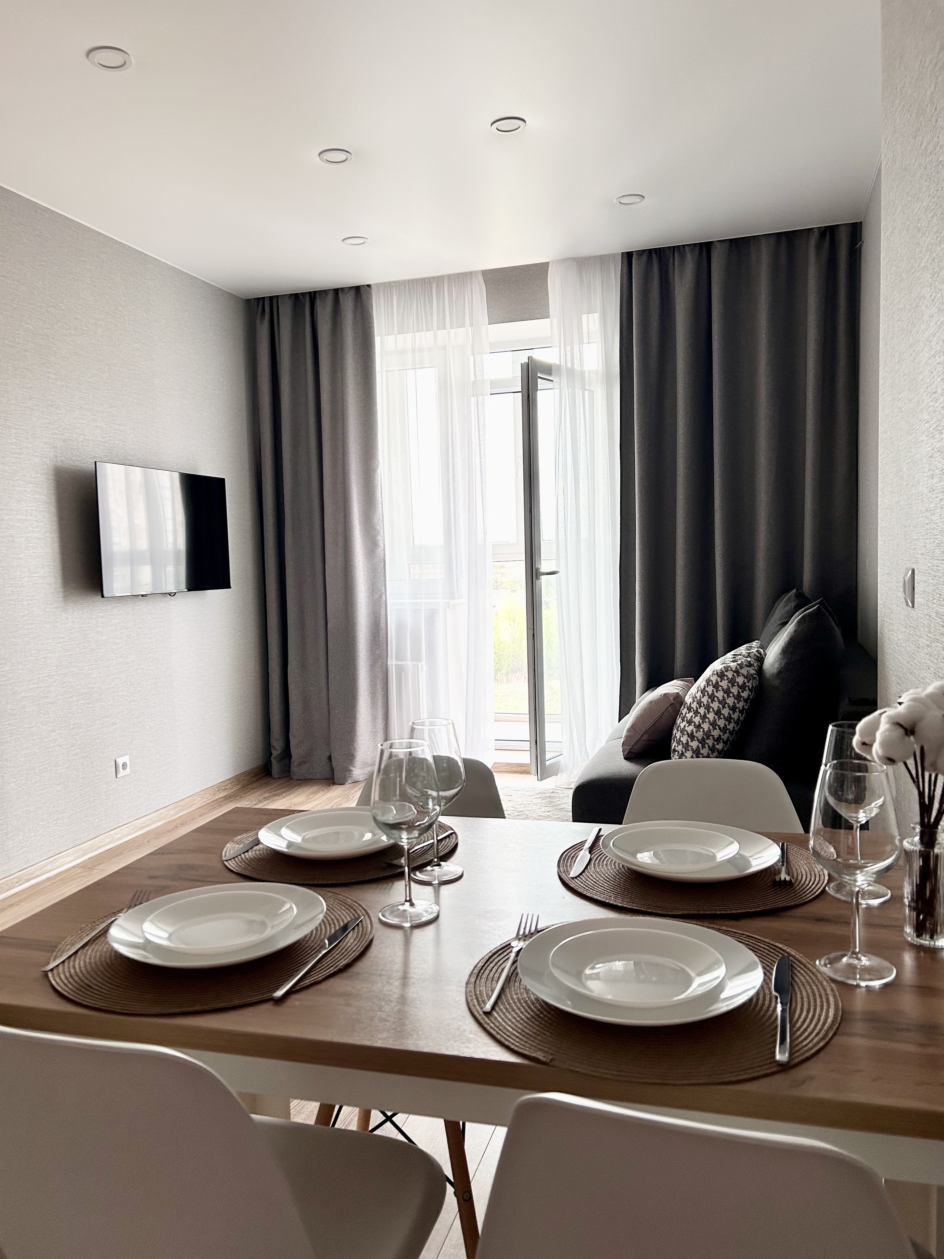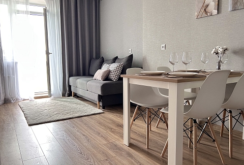 Для отдыха оборудованы удобные спальные места, а в распоряжении гостей — вся необходимая техника: холодильник, микроволновая печь, стиральная машина и утюг с гладильной доской. Кухня оснащена посудой и всем необходимым для приготовления пищи. В ванной комнате или душевой установлен водонагреватель, обеспечивающий бесперебойную подачу горячей воды, предоставляются средства гигиены, свежие полотенца и постельное бельё. Для досуга работают телевизор и высокоскоростной Wi-Fi. К приятным дополнениям можно отнести наличие балкона или террасы, где приятно провести время на свежем воздухе. Эти апартаменты станут удачным выбором для семейного отдыха или длительной поездки. Здесь продуманы все необходимые детали, чтобы чувствовать себя комфортно вдали от дома: от качественной бытовой техники до удобного расположения вблизи транспортных узлов и магазинов.