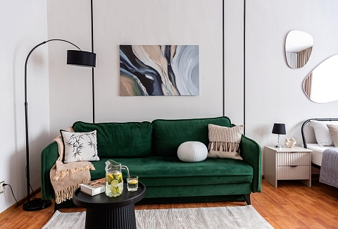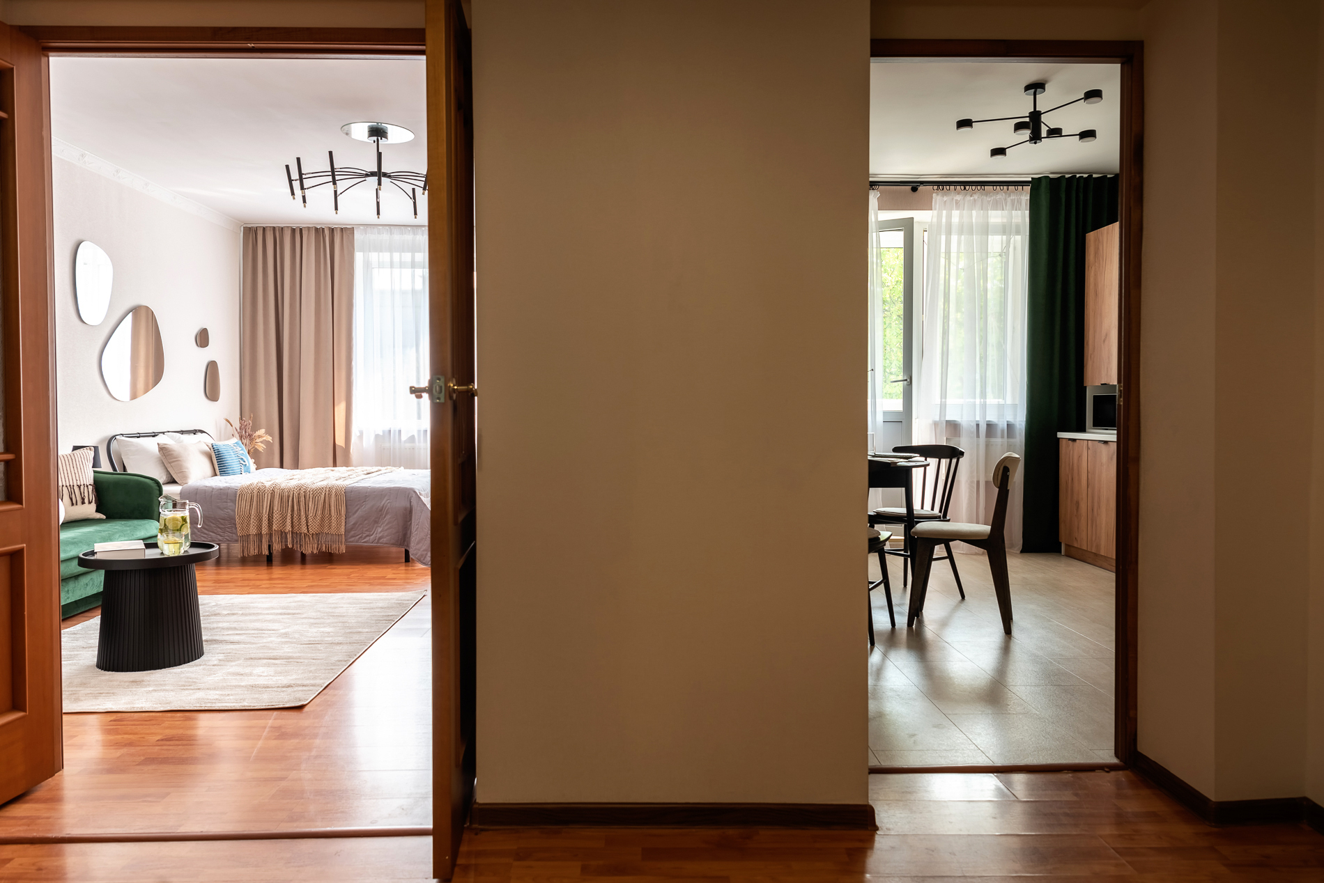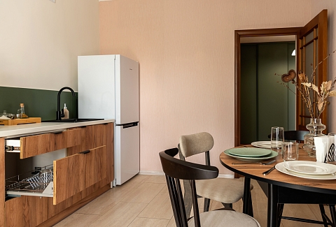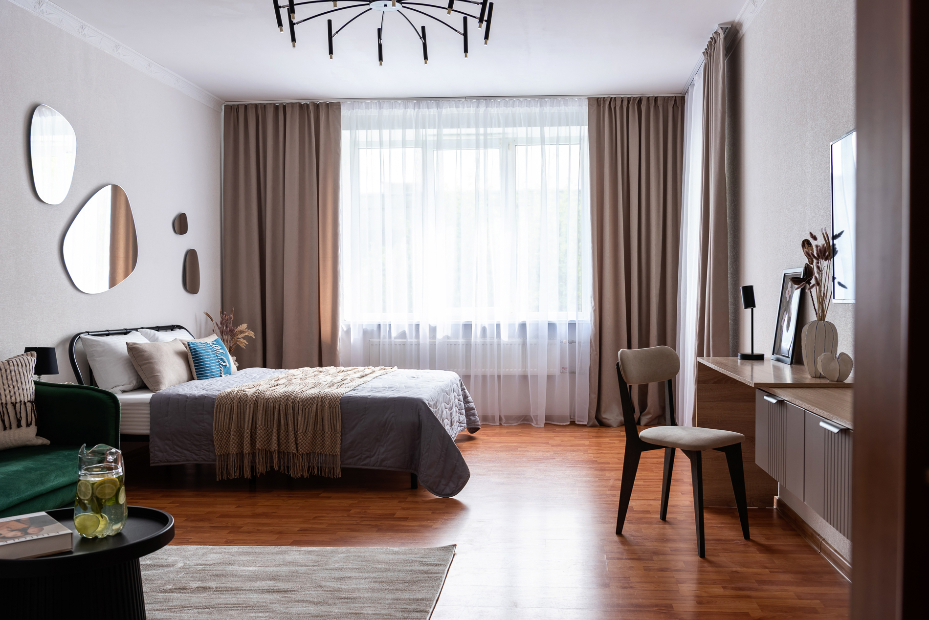 Апартаменты «Флора» расположены в центре Калининграда, в доме с закрытой огороженной территорией и детской площадкой. Тихий зелёный двор гарантирует спокойный сон — до Южного вокзала и Бранденбургских ворот идти 5 минут, до Острова Канта 10 минут, а до Музея Мирового океана 15. Рядом есть продуктовый магазин, пекарня и рестораны.Внутри — две изолированные спальни, два санузла (один с ванной, второй с гигиеническим душем) и лоджия с креслом-качелью.
