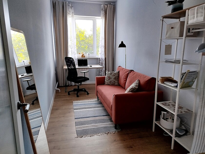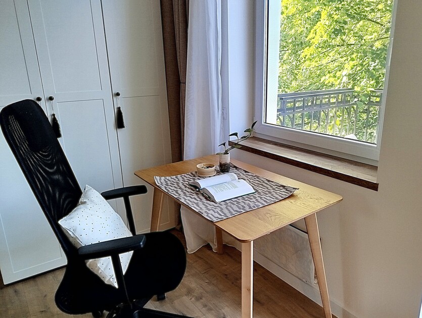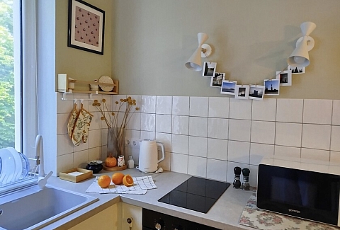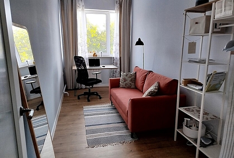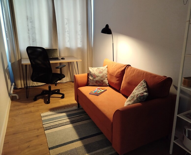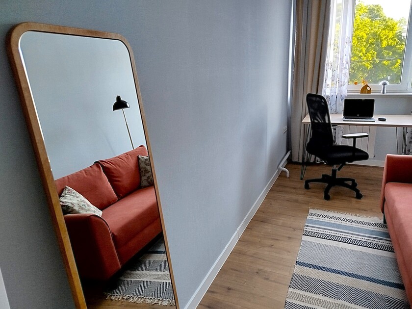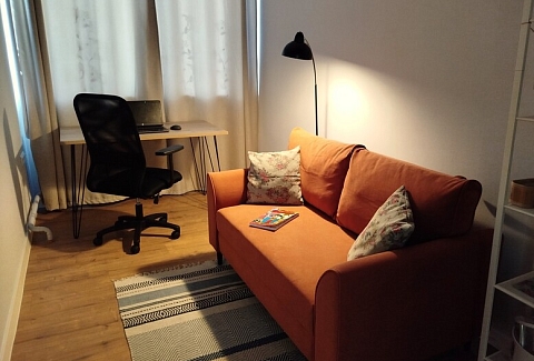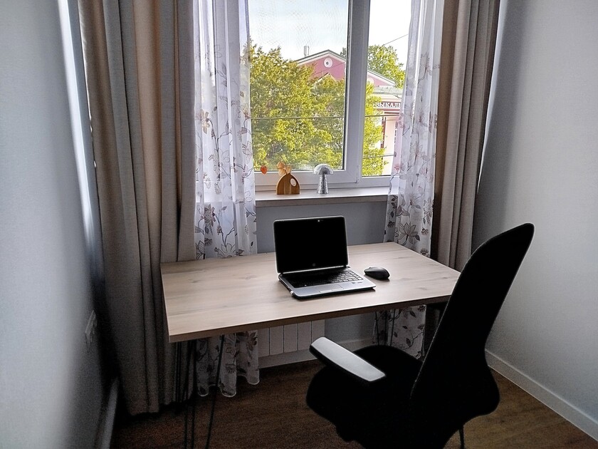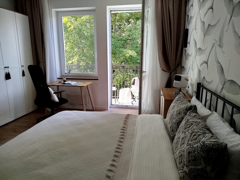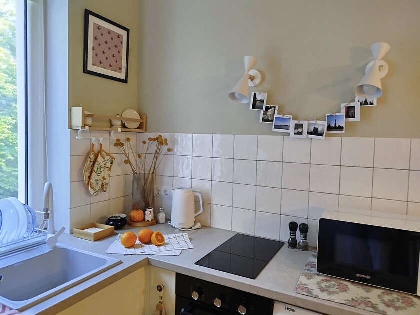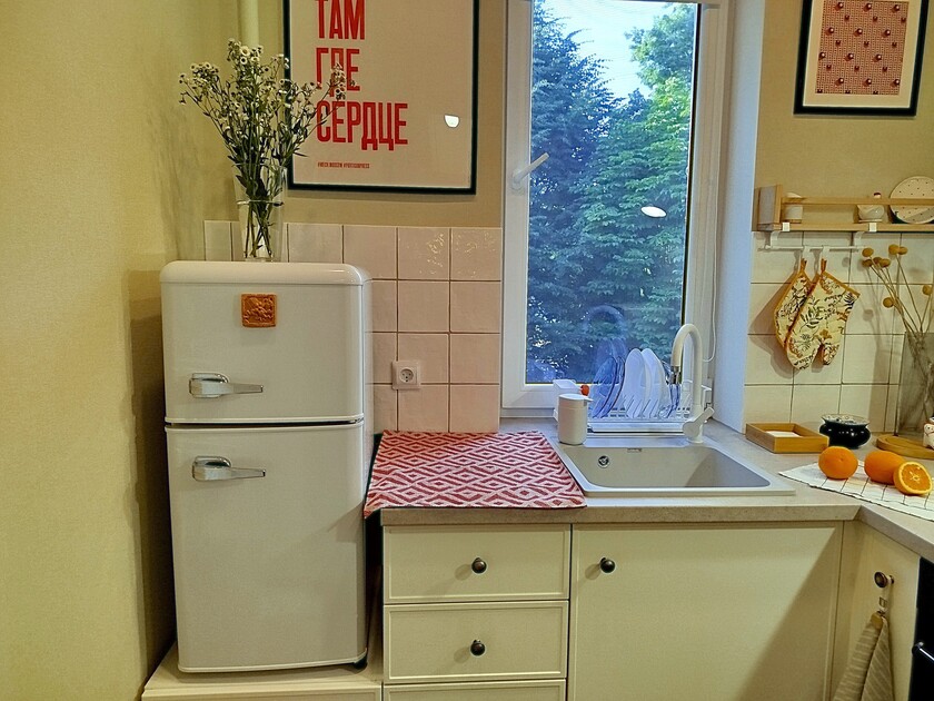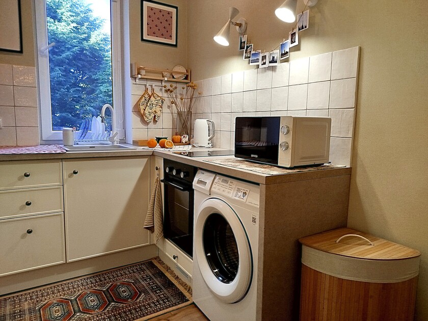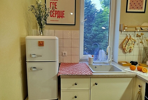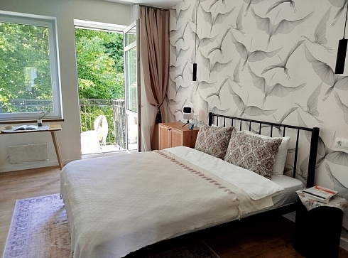 Апартаменты предоставляют гостям функциональное пространство для проживания. В соответствии со стандартами обслуживания, после каждого отъезда проводится влажная уборка, а для гостей предоставляется свежее постельное белье из профессиональной прачечной. В помещении оборудовано всё необходимое для быта, включая базовые средства гигиены, комплект посуды и бытовую технику.Интерьер выполнен в современном стиле, обеспечивая практичность и комфорт.